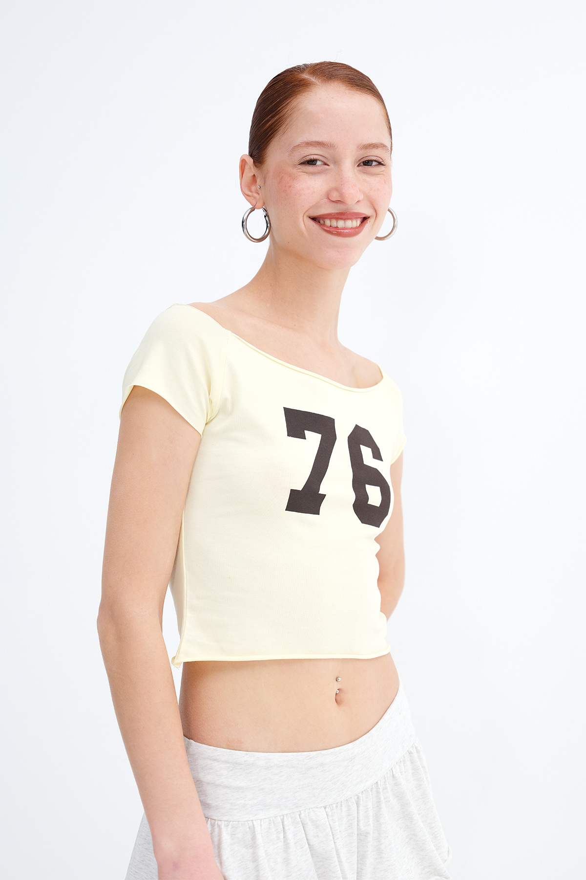 * Baskılı, crop t-shirt,