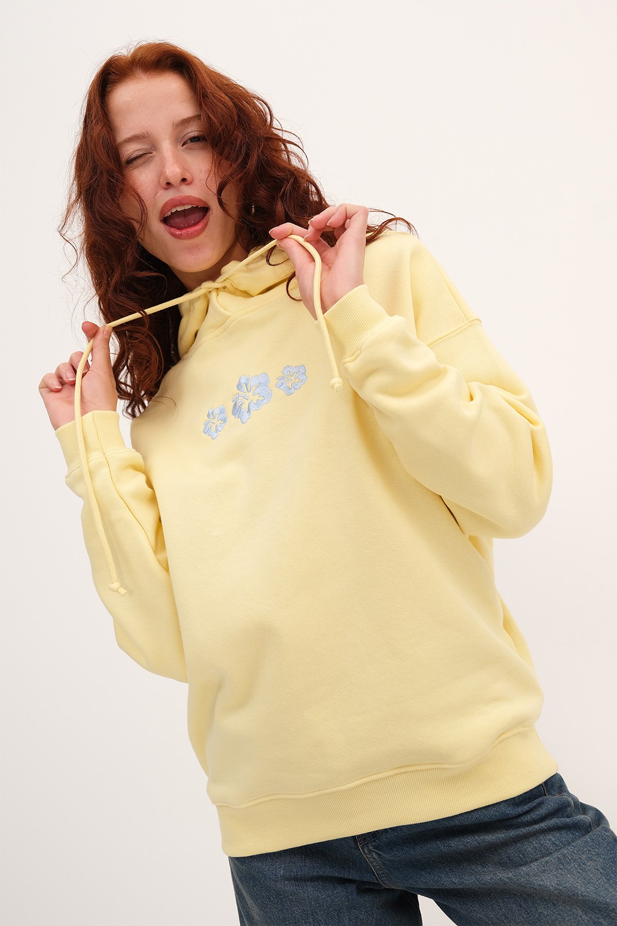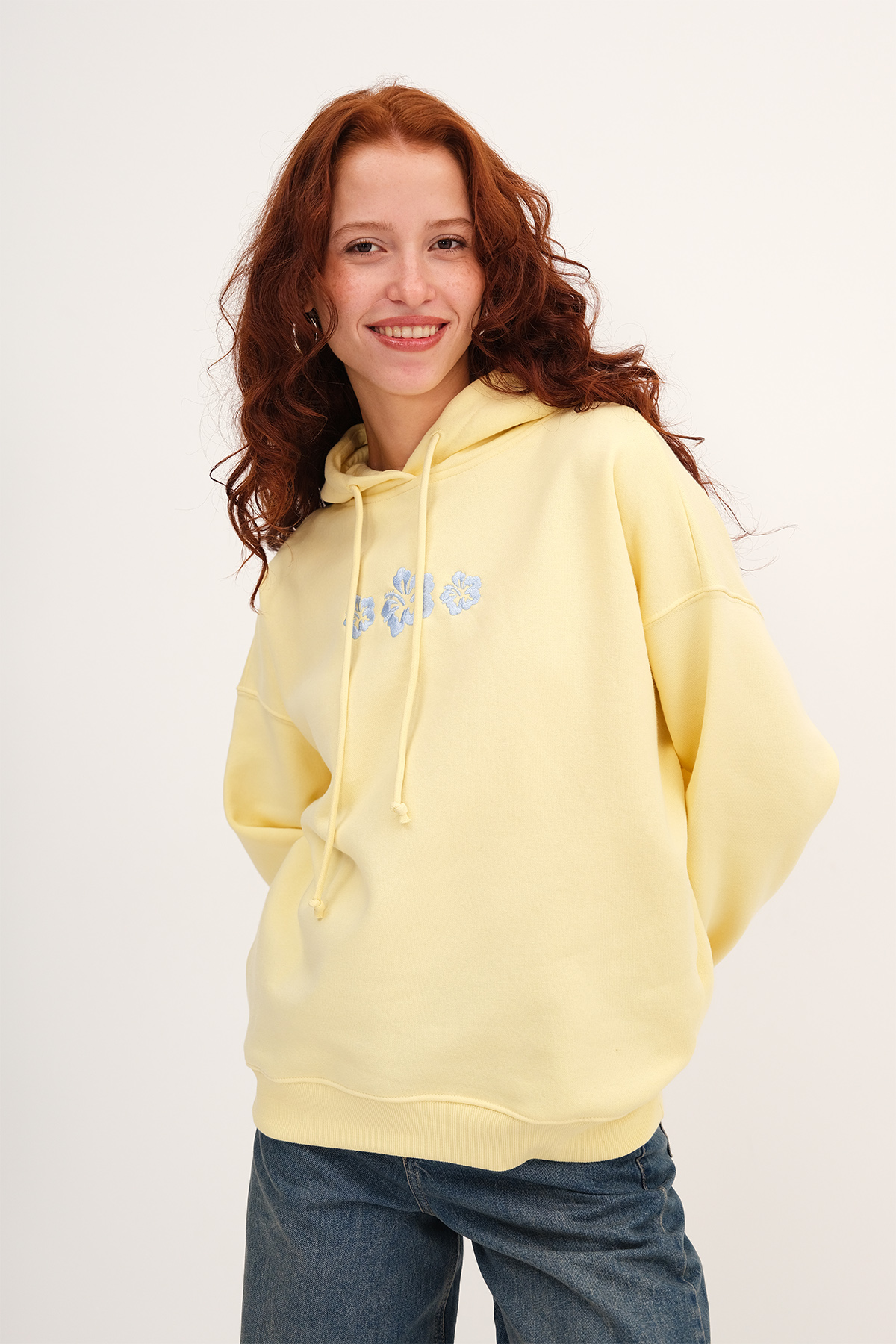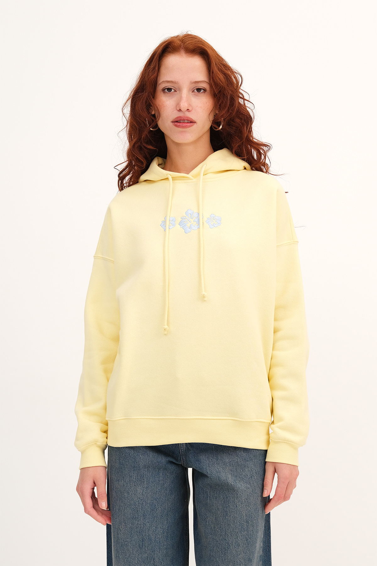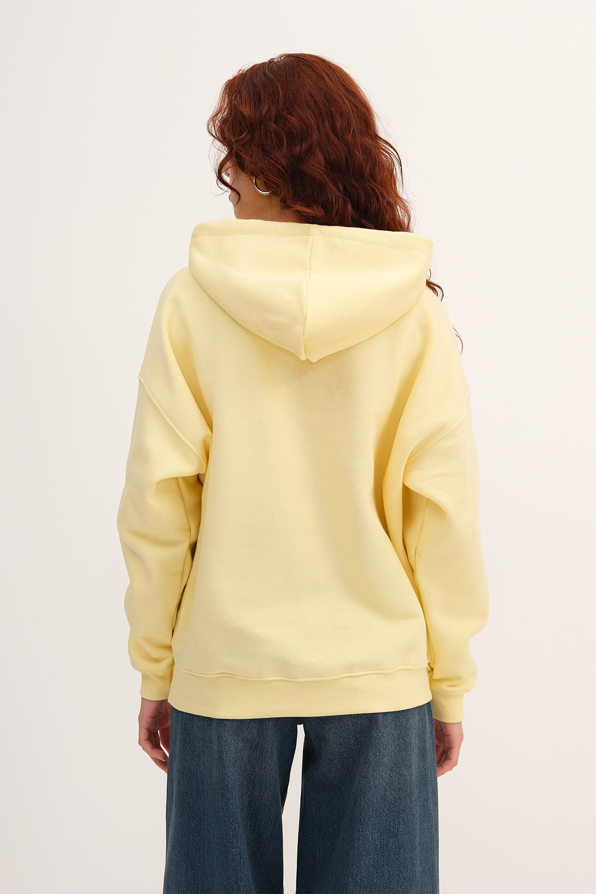 * Kapüşonlu, kapüşonu çift katlı, Ayarlanabilir büzgü ipli,* Uzun kollu, düşük omuz,* Baskılı, düz renk,* Şardonlu, içi yumuşak tüylü,* Manşetleri ve etek ucu ribanalı sweatshirt,* Ürün içeriği: %100 Pamuk* Manken üzerindeki ürün 36/S bedendir.* Numune beden ölçüleri: Boy: 63 cm Göğüs: 130 cm Kol boyu: 50 cm (1-3 cm değişiklik gösterebilir)* Ürün çekimlerinde renkler, ışık farklılığından dolayı değişkenlik gösterebilir.