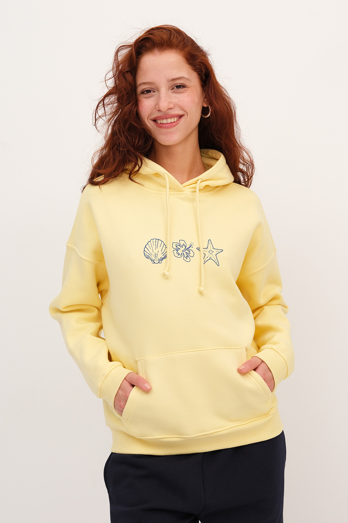 * Kapüşonlu, kapüşonu çift katlı,* Uzun kollu, düşük omuz,* Baskılı, kanguru cepli,* Ayarlanabilir büzgü ipli,* Şardonlu sweatshirt,* Ürün içeriği: %100 Pamuk,* Manken üzerindeki ürün 36/S bedendir.* Numune Beden Ölçüleri: Boy: 60 cm Göğüs: 120 cm Kol Boyu: 48 cm (1-3 cm arasında değişiklik gösterebilir)* Ürün çekimlerinde renkler, ışık farklılığından dolayı değişkenlik gösterebilir.