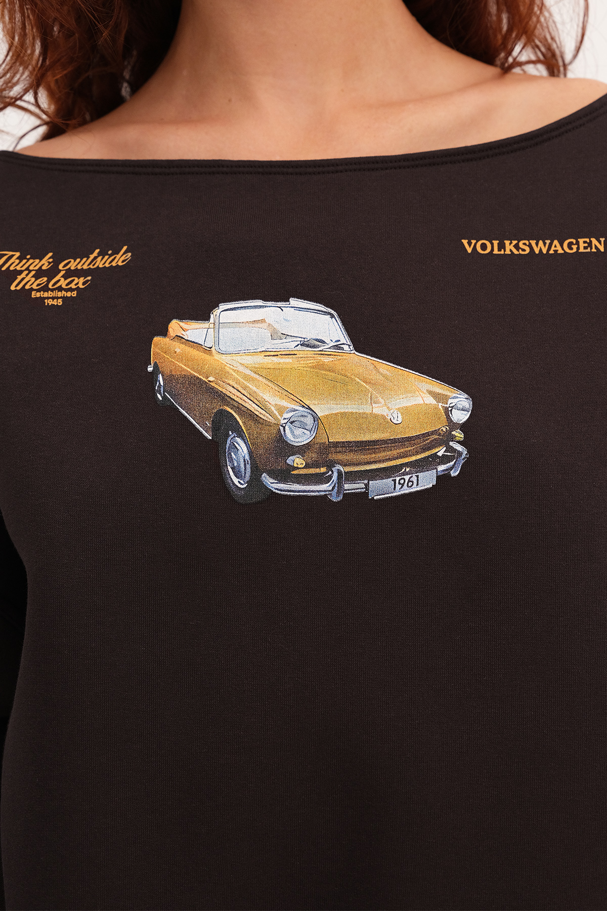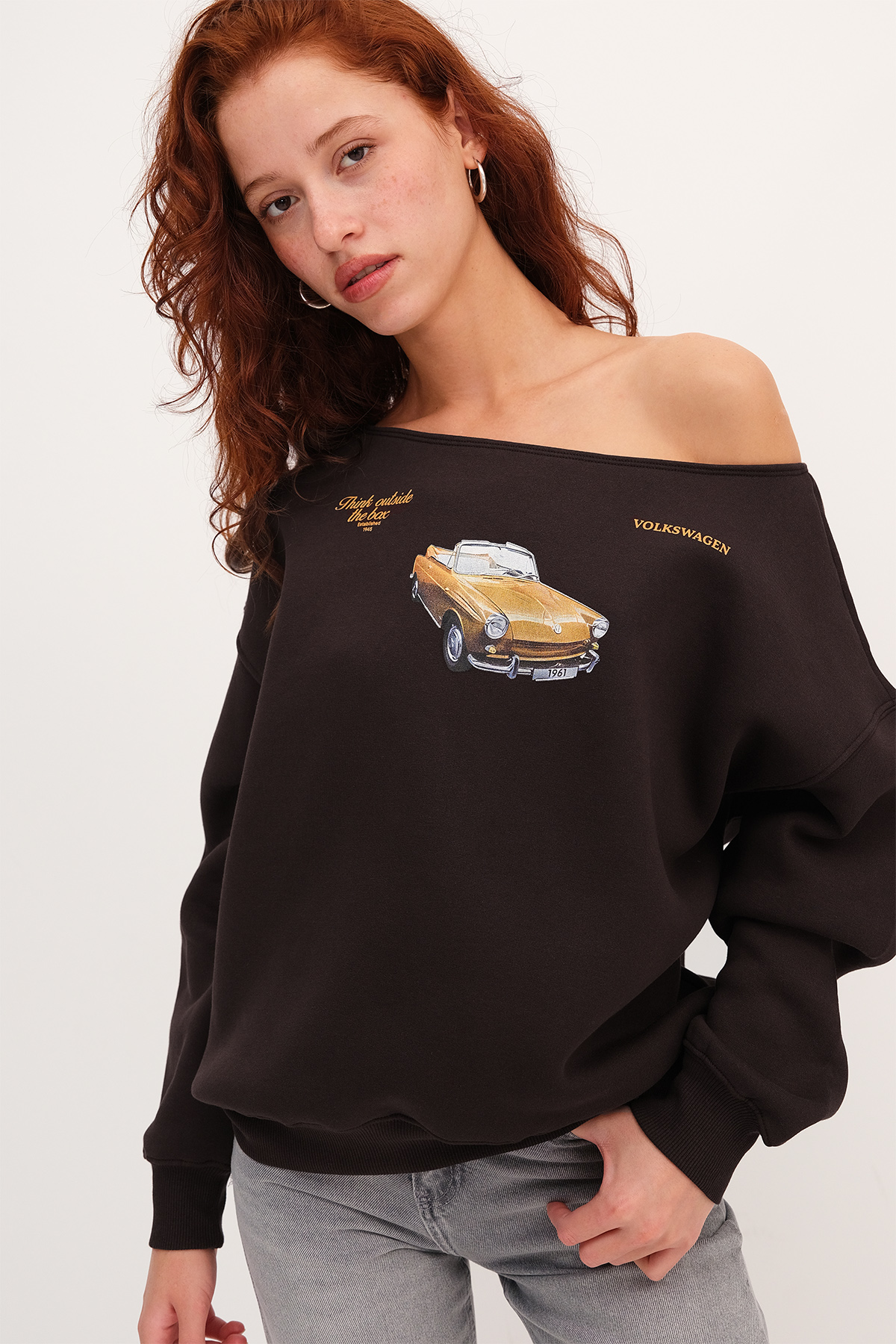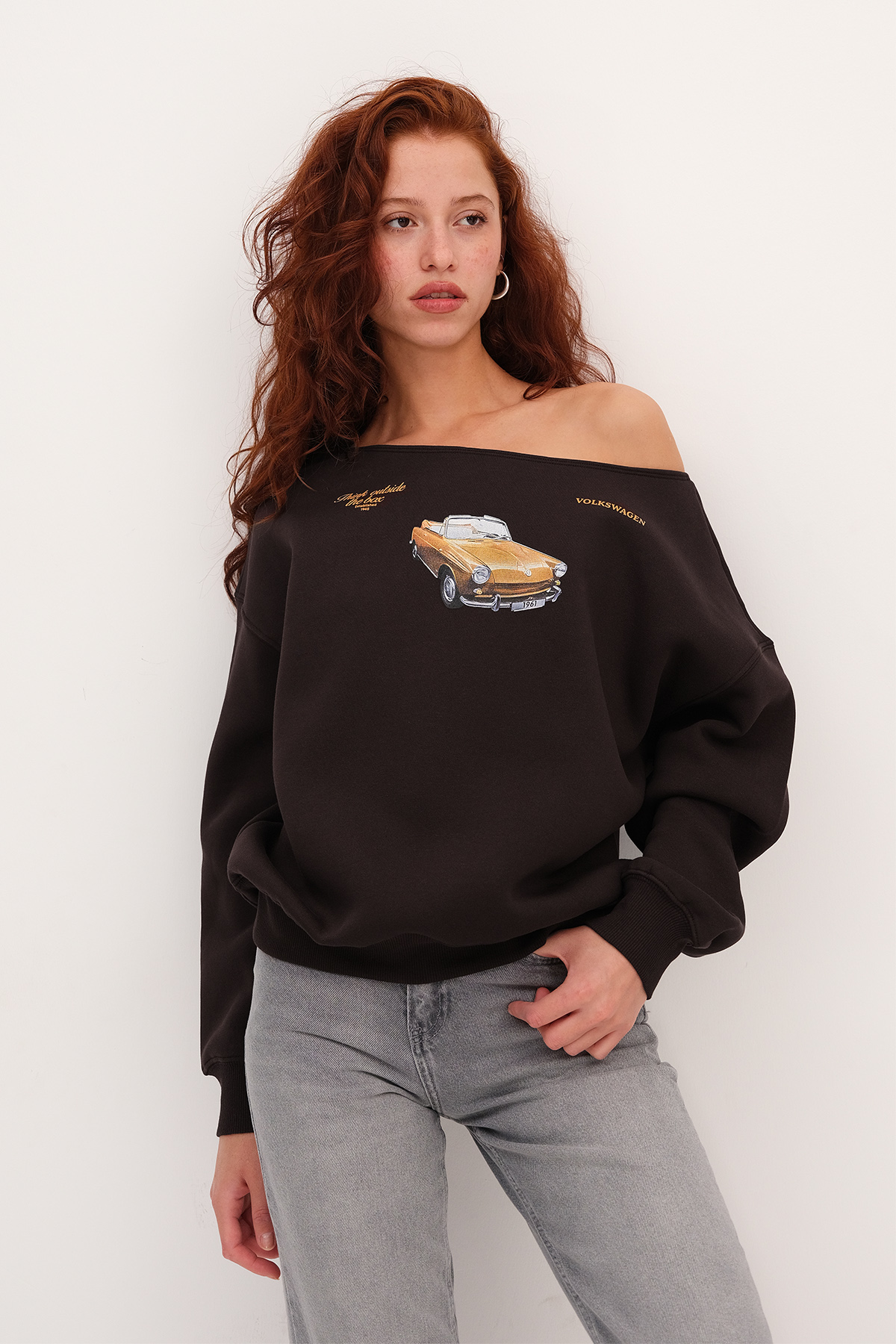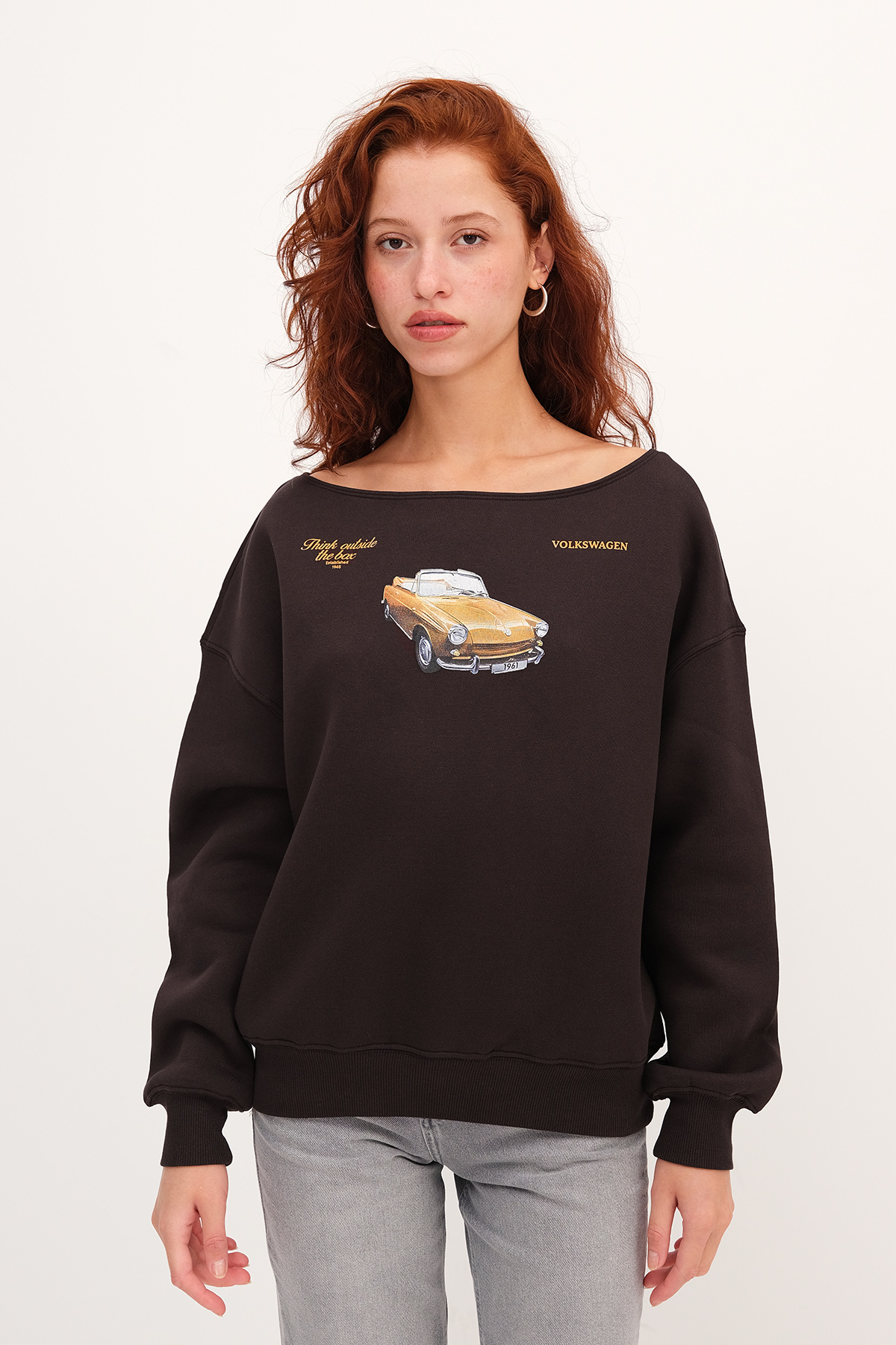 * Kayık yaka, araba baskılı,* Şardonlu, düşük omuz,* Uzun kollu, rahat kalıp sweatshirt,* Ürün içeriği: %70 Pamuk %30 Polyester,* Manken üzeirndeki ürün 36/S bedendir.* Numune Beden Ölçüleri: Boy: 60 cm Göğüs: 120 cm Kol Boyu: 51 cm (1-3 cm arasında değişiklik gösterebilir)* Ürün çekimlerinde renkler, ışık farklılığından dolayı değişkenlik gösterebilir.