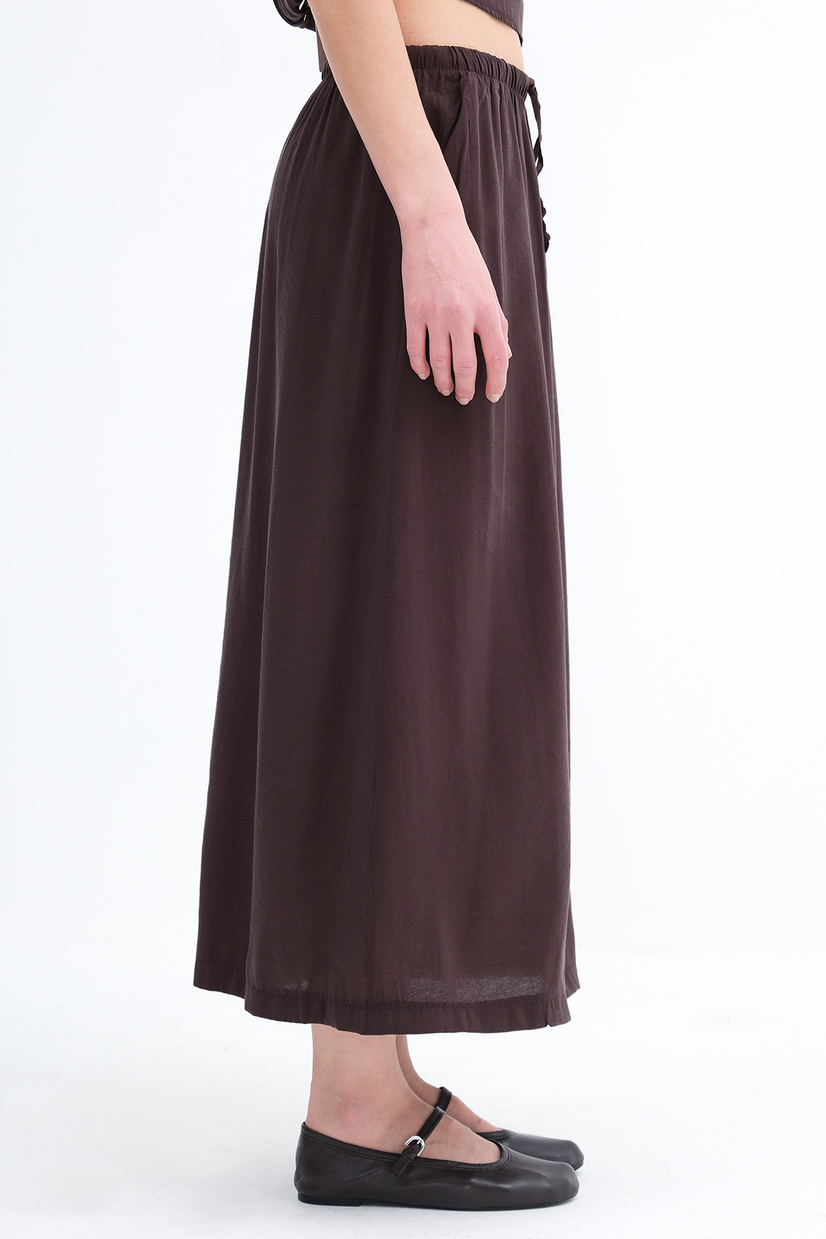 * Yandan cepli, düz renk, astarsız uzun etek,