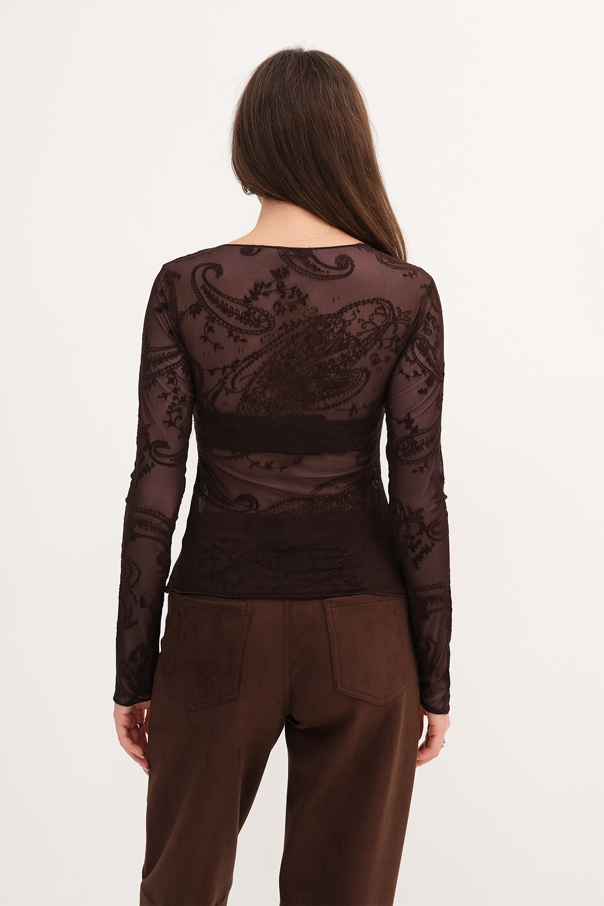 * Bisiklet yaka, uzun kollu,* Desenli, transparan, yanı büzgülü,* Tül bluz,* Ürün içeriği:%95 Polyester %5 Elastan,* Manken üzerindeki ürün 36/S bedendir.* Numune Beden Ölçüleri: Boy: 50 cm Göğüs: 66 cm Kol Boyu: 58 cm (1-3 cm arasında değişiklik gösterebilir)* Ürün çekimlerinde renkler, ışık farklılığından dolayı değişkenlik gösterebilir.