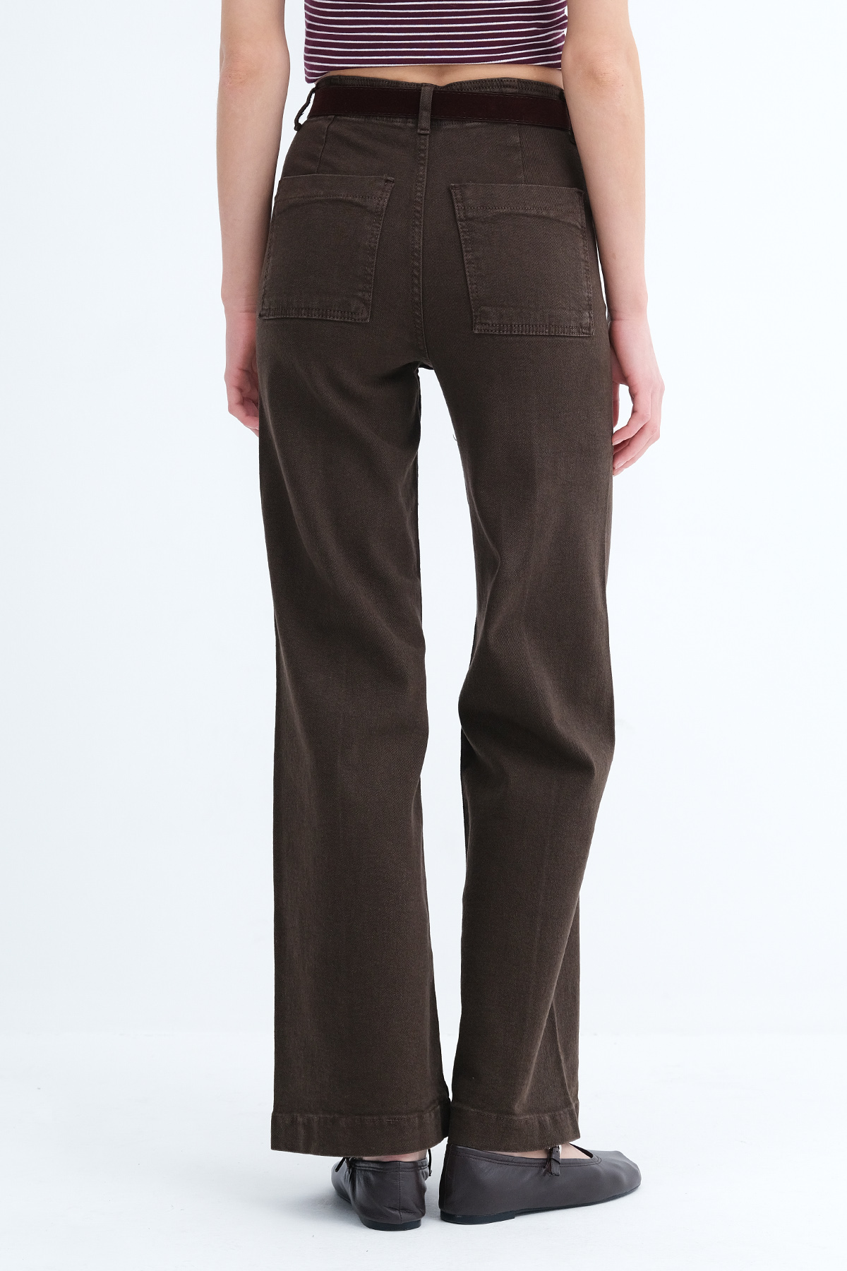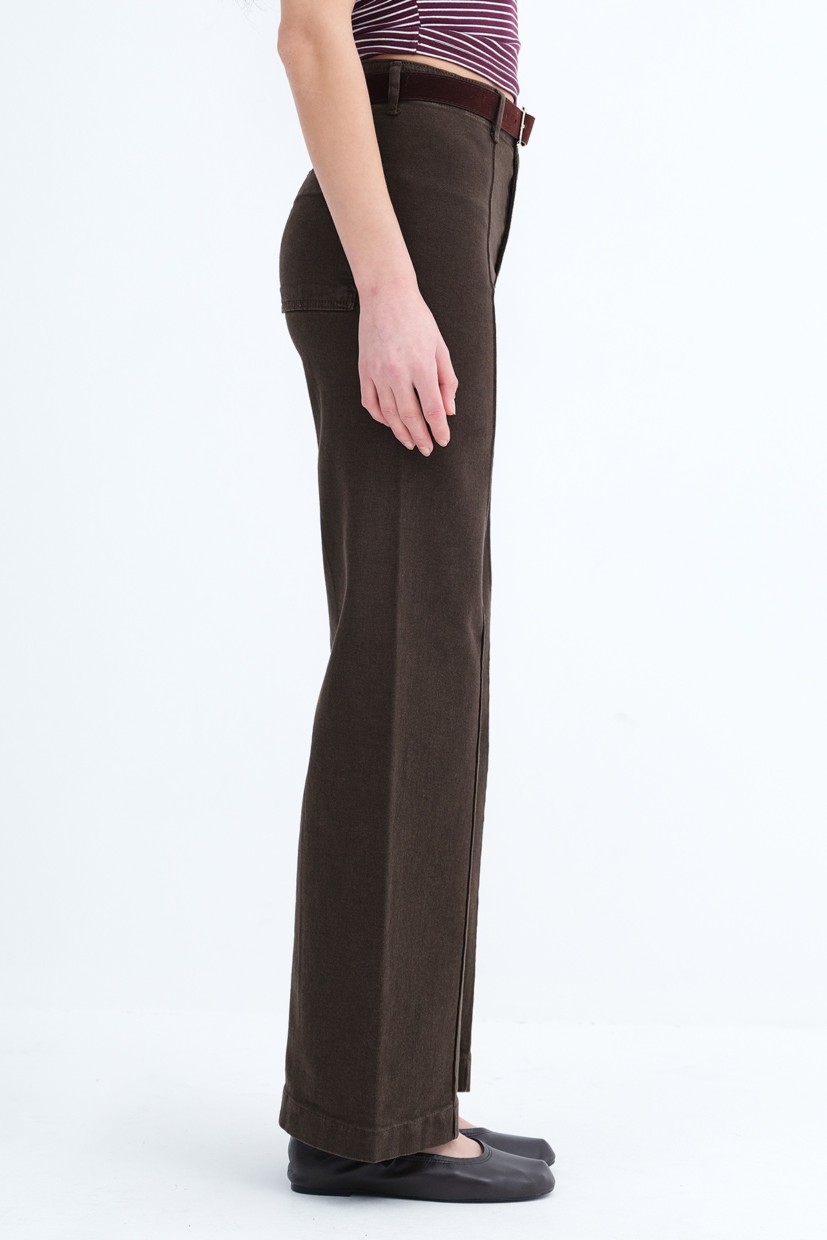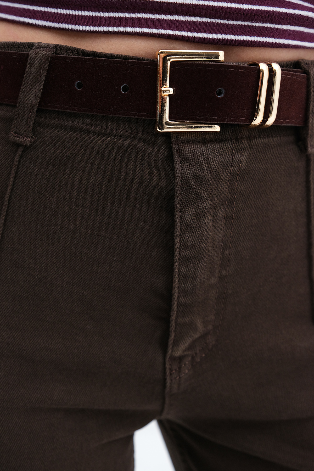 * Normal bel, kemer köprülü, düğmeli, fermuar patlı,