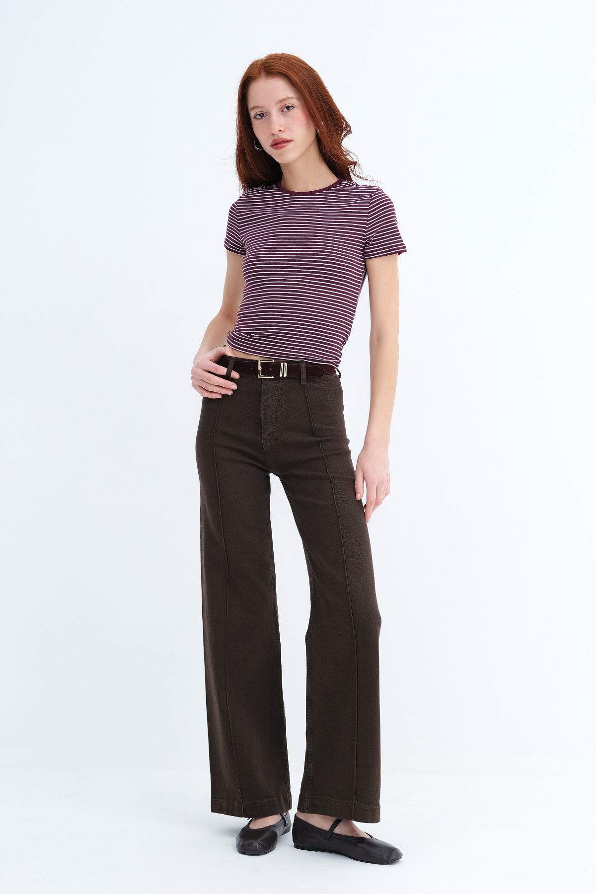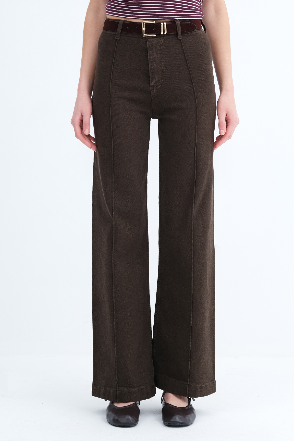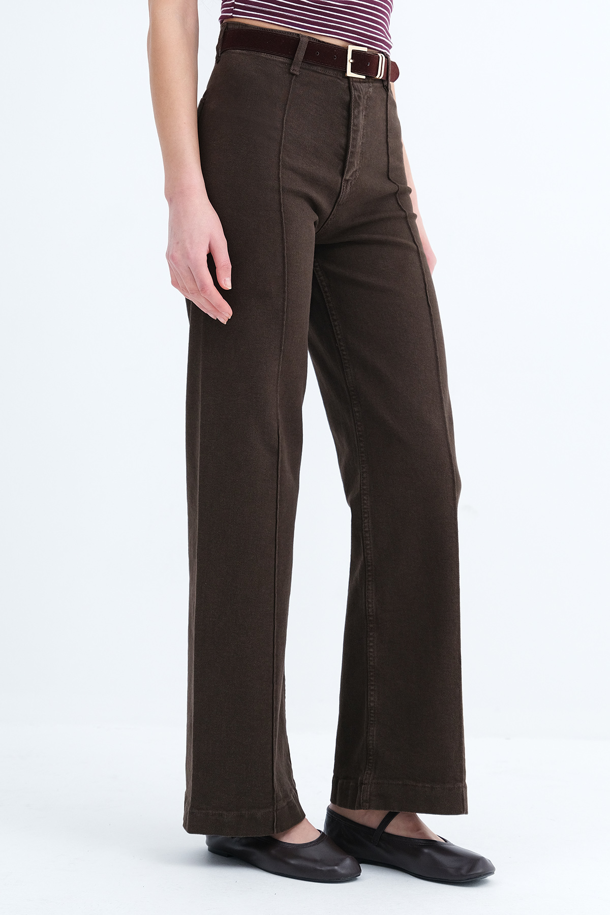 * Normal bel, kemer köprülü, düğmeli, fermuar patlı,
