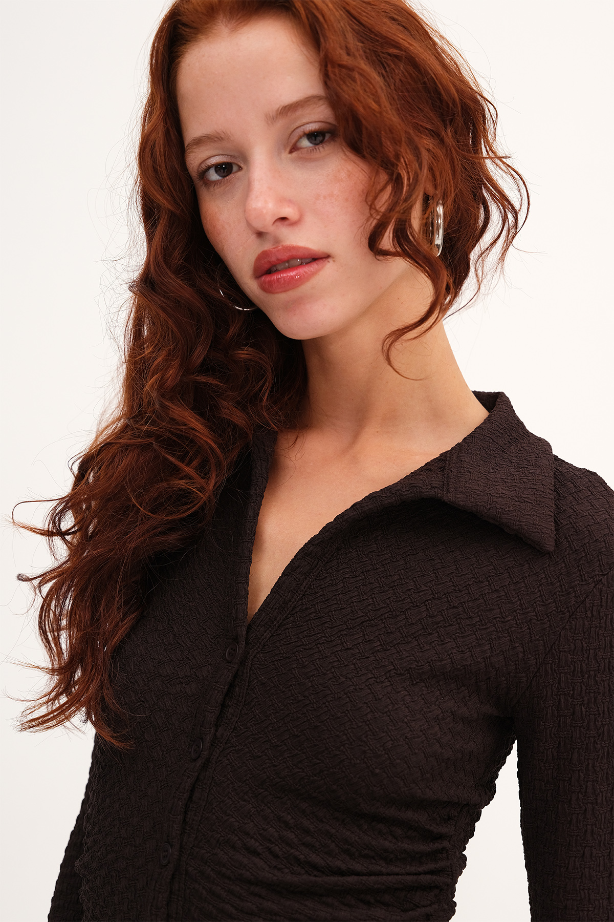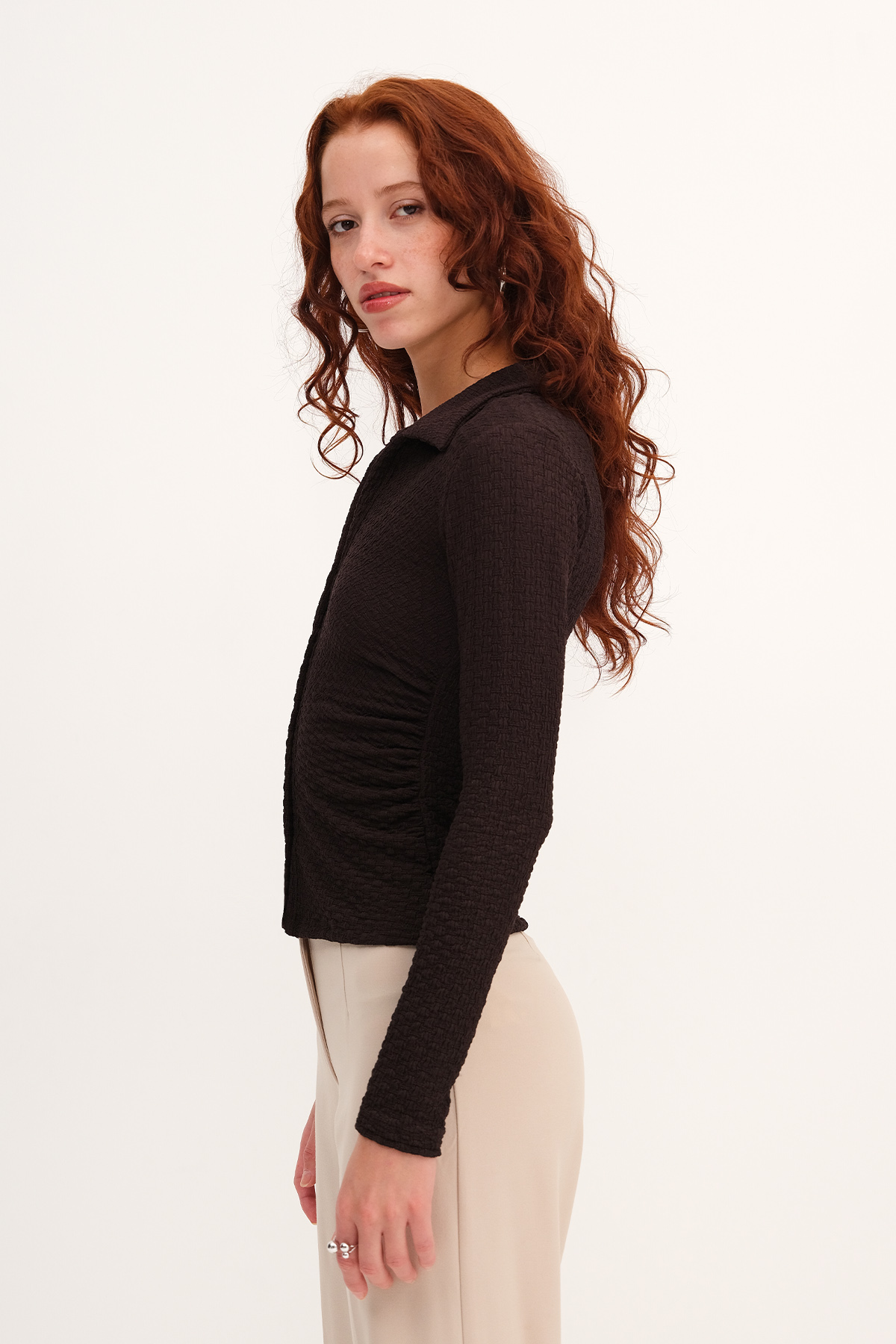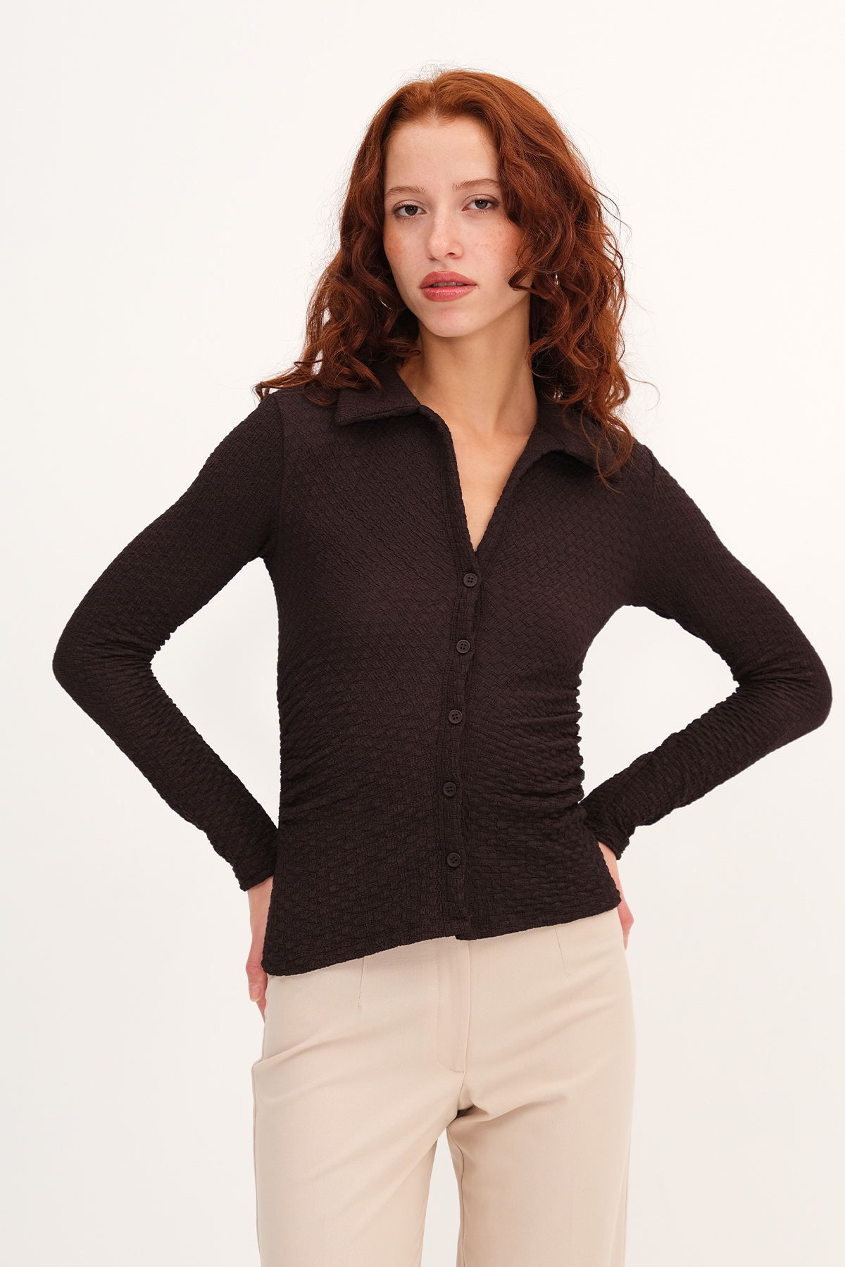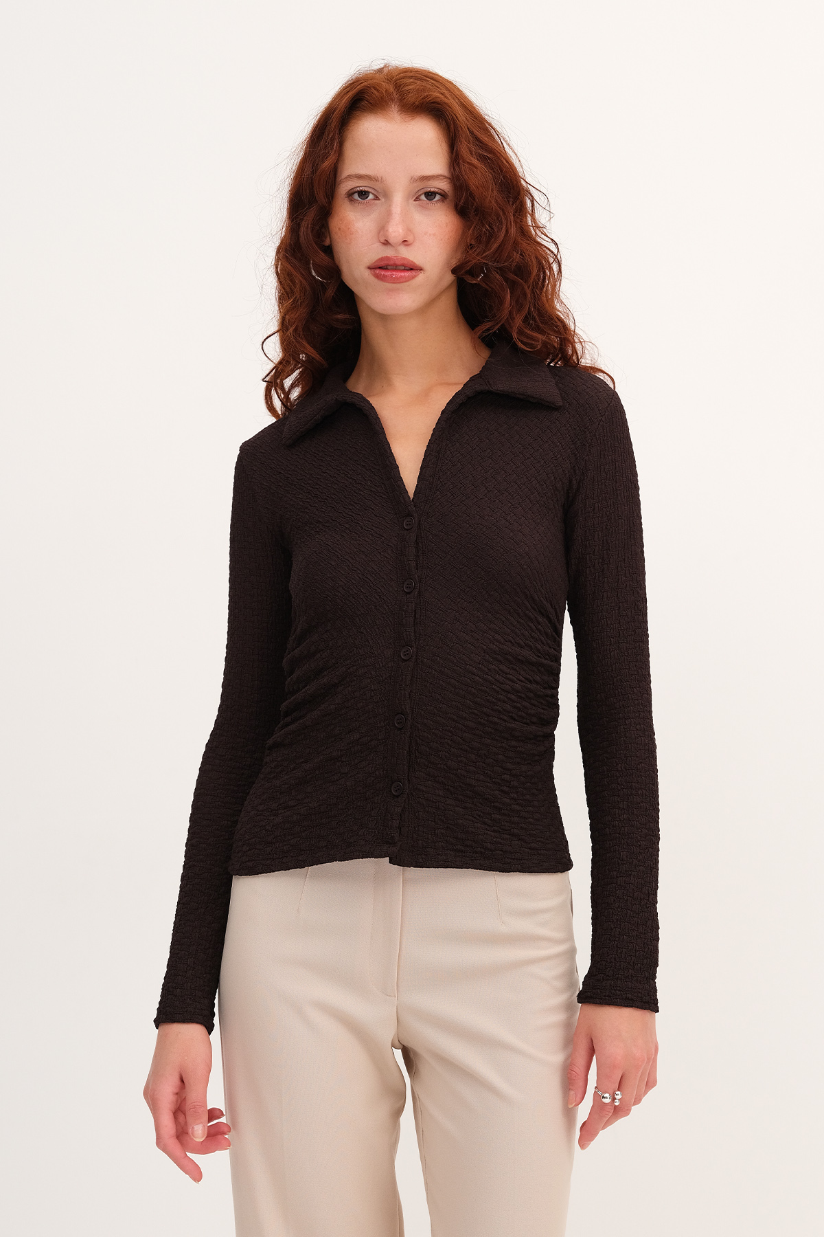 * Polo yaka, uzun kollu,* Düğmeli, yanı büzgülü hırka,* Ürün içeriği:%90 polyester %10 elastan,* Manken üzerindeki ürün 36/S bedendir.* Numune Beden Ölçüleri: Boy: 55 cm Göğüs: 70 cm Kol Boyu: 55 cm (1-3 cm arasında değişiklik gösterebilir)* Ürün çekimlerinde renkler, ışık farklılığından dolayı değişkenlik gösterebilir.
