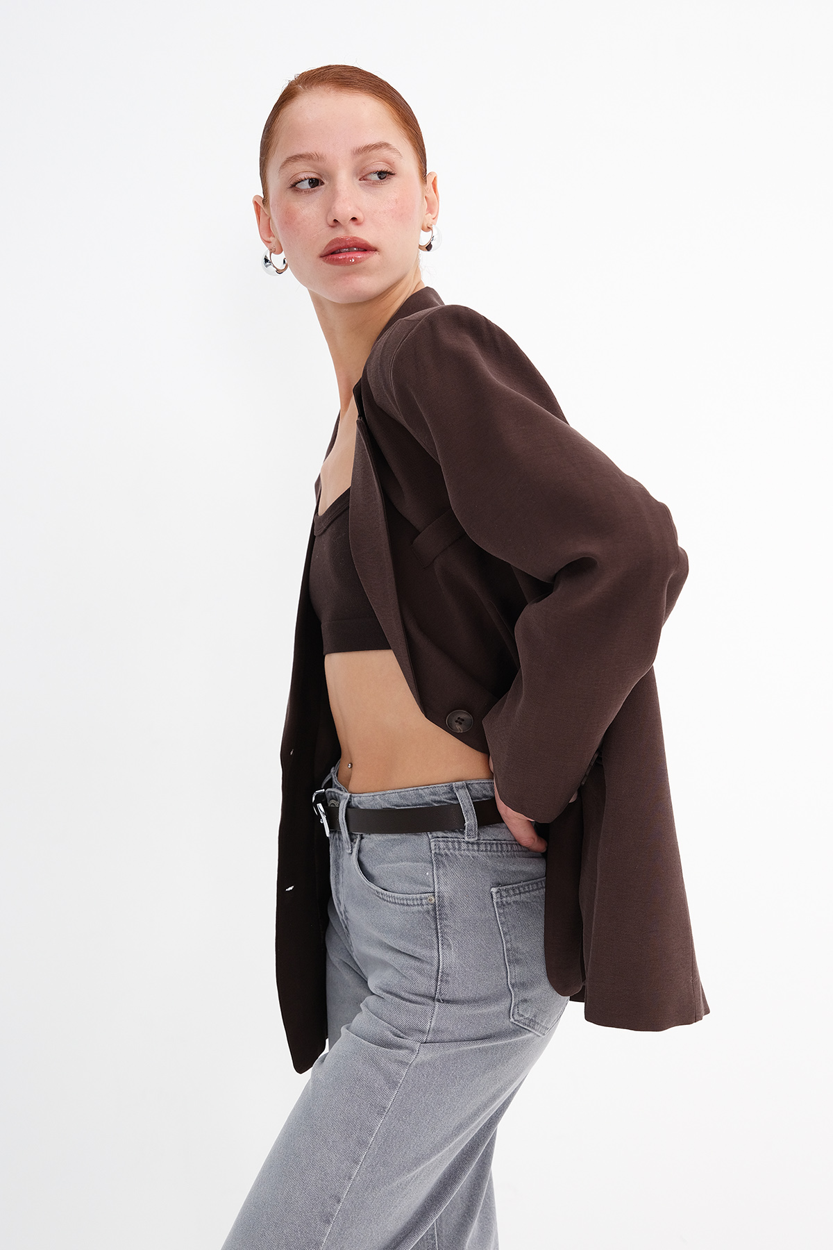 * Kruvaze yaka, uzun kollu, vatkalı,