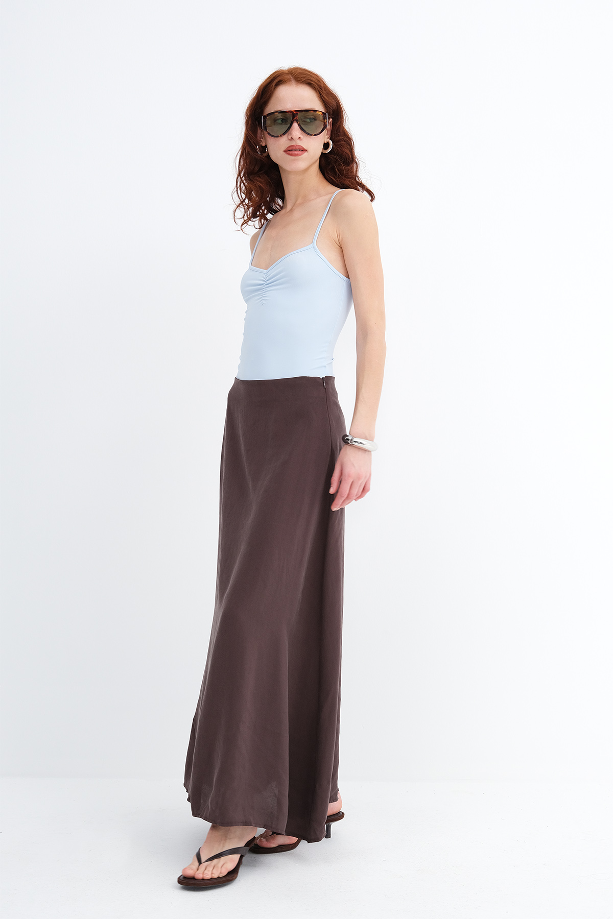 * Astarsız, düz renk, uzun etek,