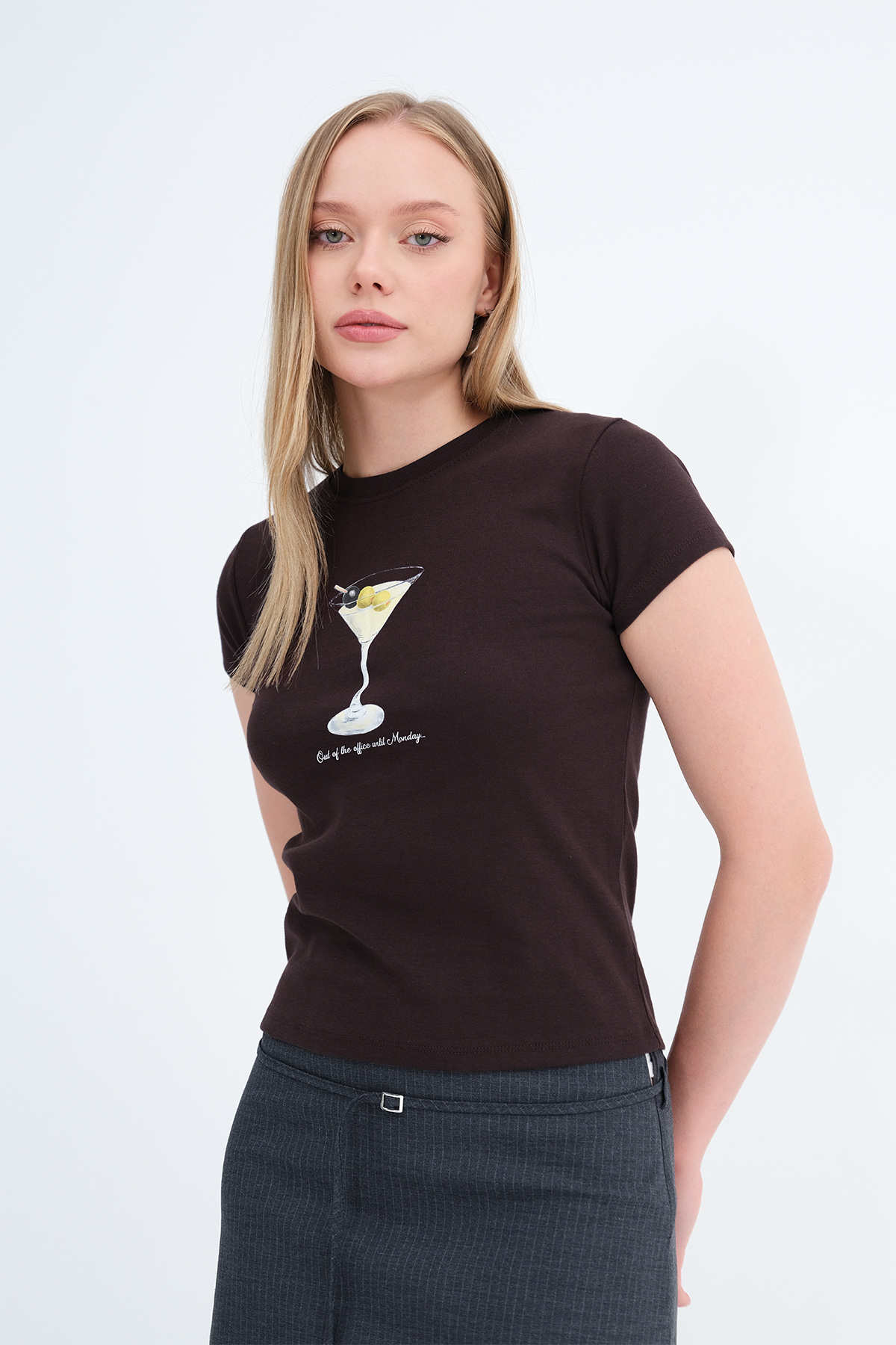 * Kadeh baskılı, rahat kalıp t-shirt,