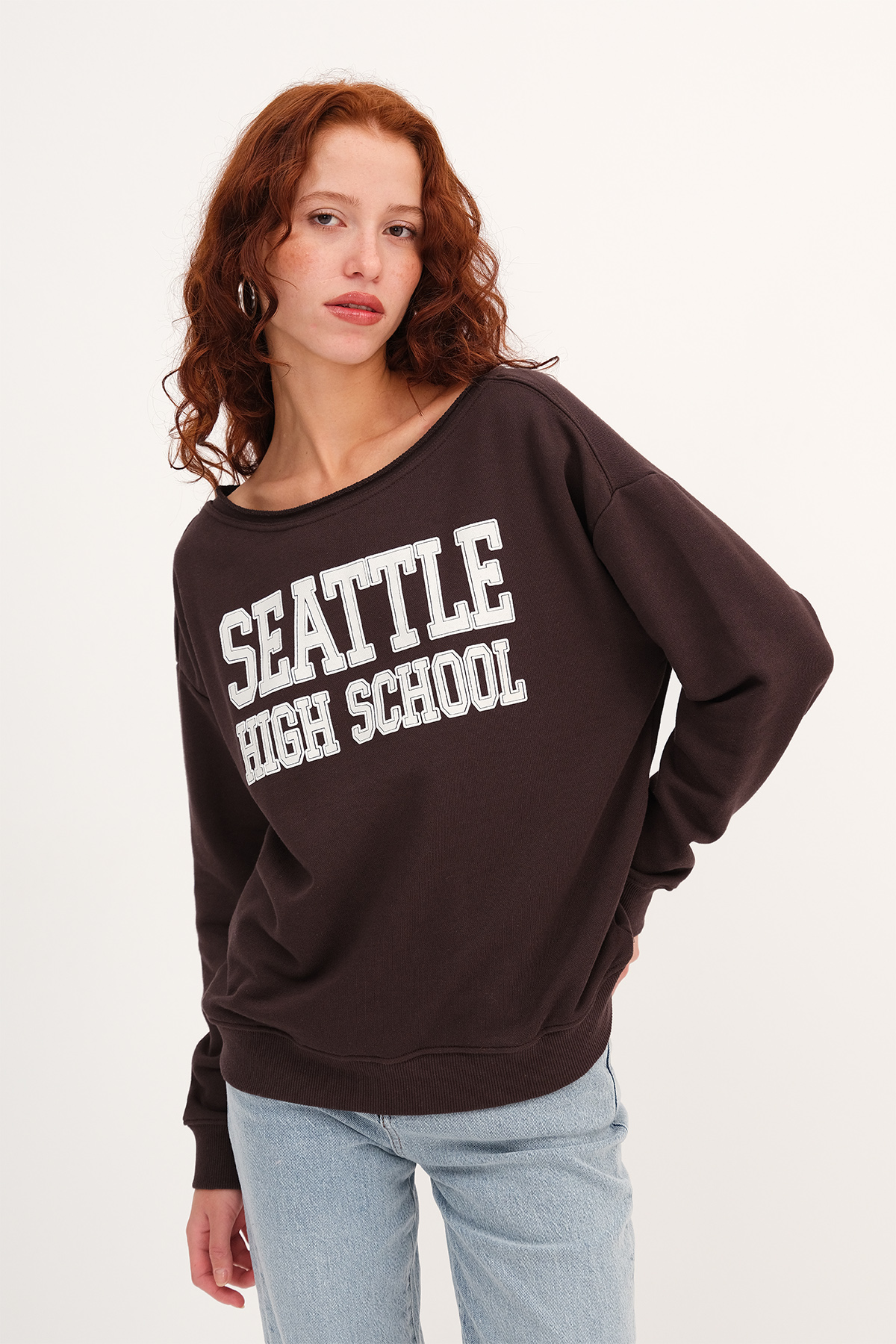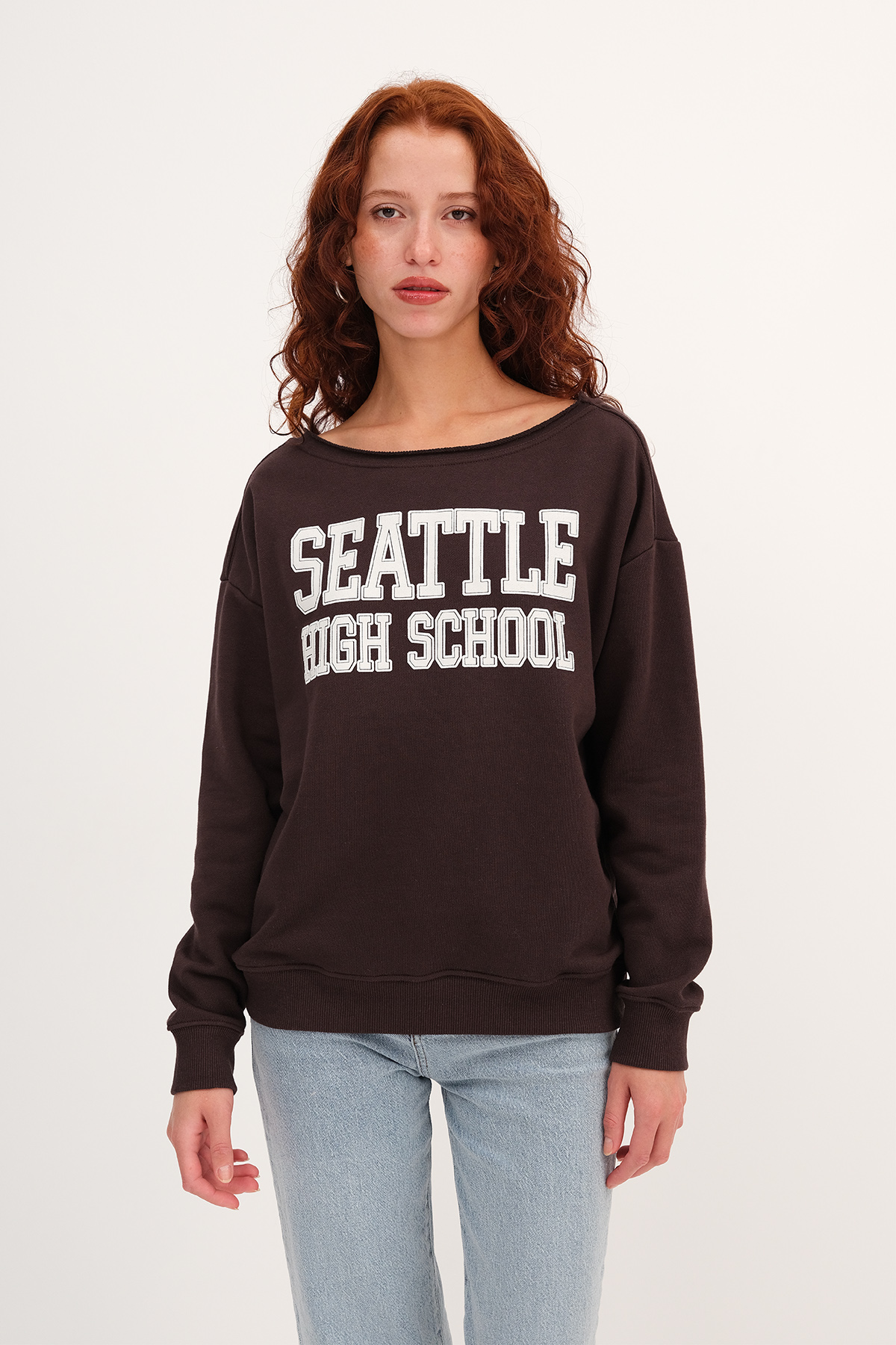 * Kayık yaka, uzun kollu,* Düşük omuz, baskılı,* Şardonsuz, rahat kalıp sweatshirt,* Ürün içeriği: %100 Pamuk* Manken üzerindeki ürün 36/S bedendir.* Numune beden ölçüleri: Boy: 62 cm Göğüs: 104 cm Kol boyu: 52 cm (1-3 cm değişiklik gösterebilir)* Ürün çekimlerinde renkler, ışık farklılığından dolayı değişkenlik gösterebilir.