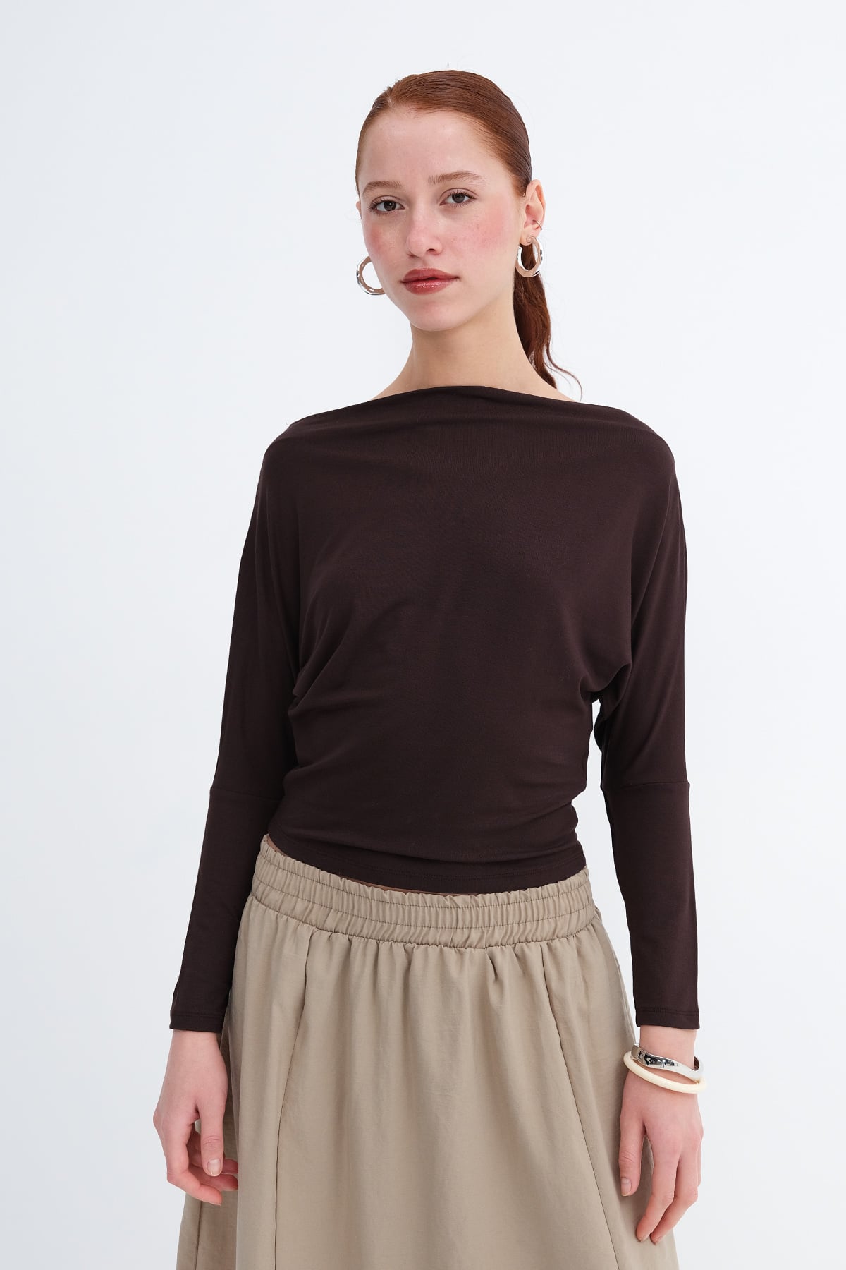 * Kayık yaka, uzun kollu,