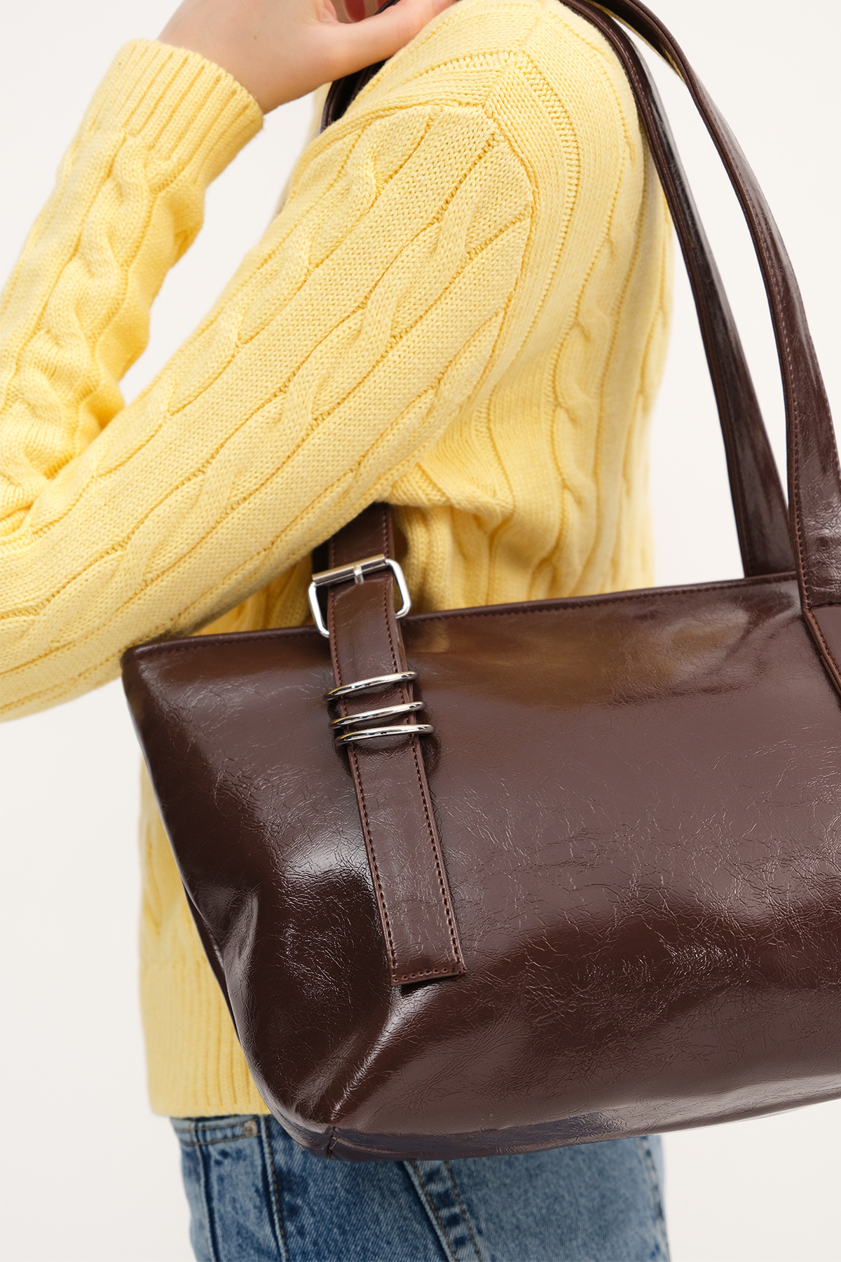 * Parlak görünümlü, kemer ve toka detaylı,* Askılı, astarlı, fermuarlı,* İçerisinde cep bulunmaktadır.* Büyük boy,* El ve omuz çantası,* Ürün içeriği:* Ürün ölçüleri: Yükseklik: 24 cm Genişlik: 35 cm Derinlik: 10 cm* Askı uzunluğu: 70 cm (1-3 cm arasında değişiklik gösterebilir)* Ürün çekimlerinde renkler, ışık farklılığından dolayı değişkenlik gösterebilir.