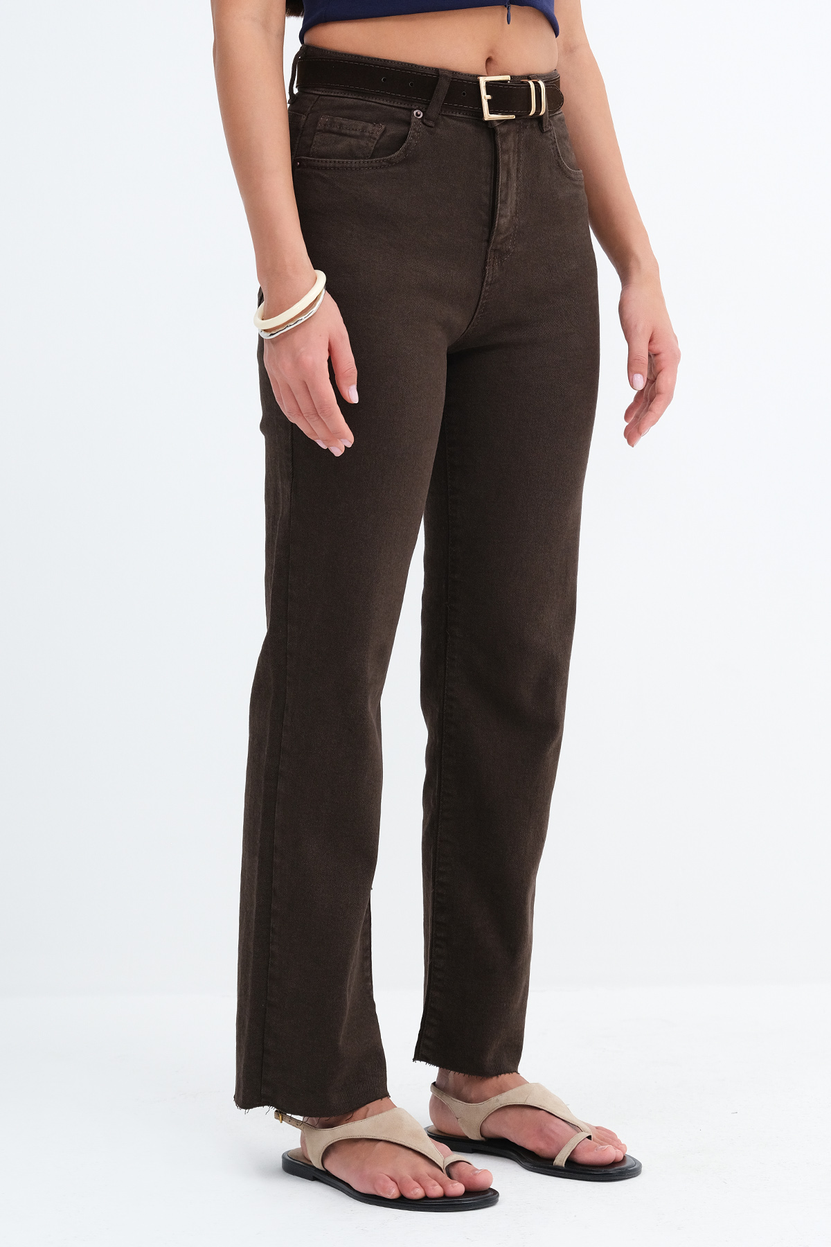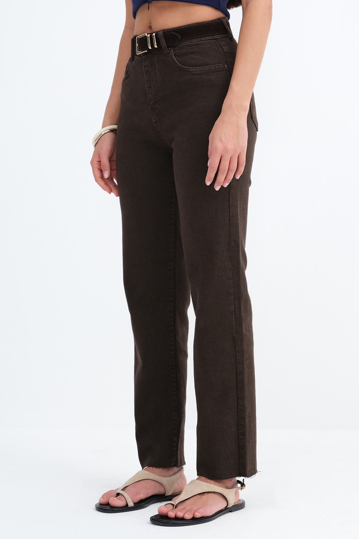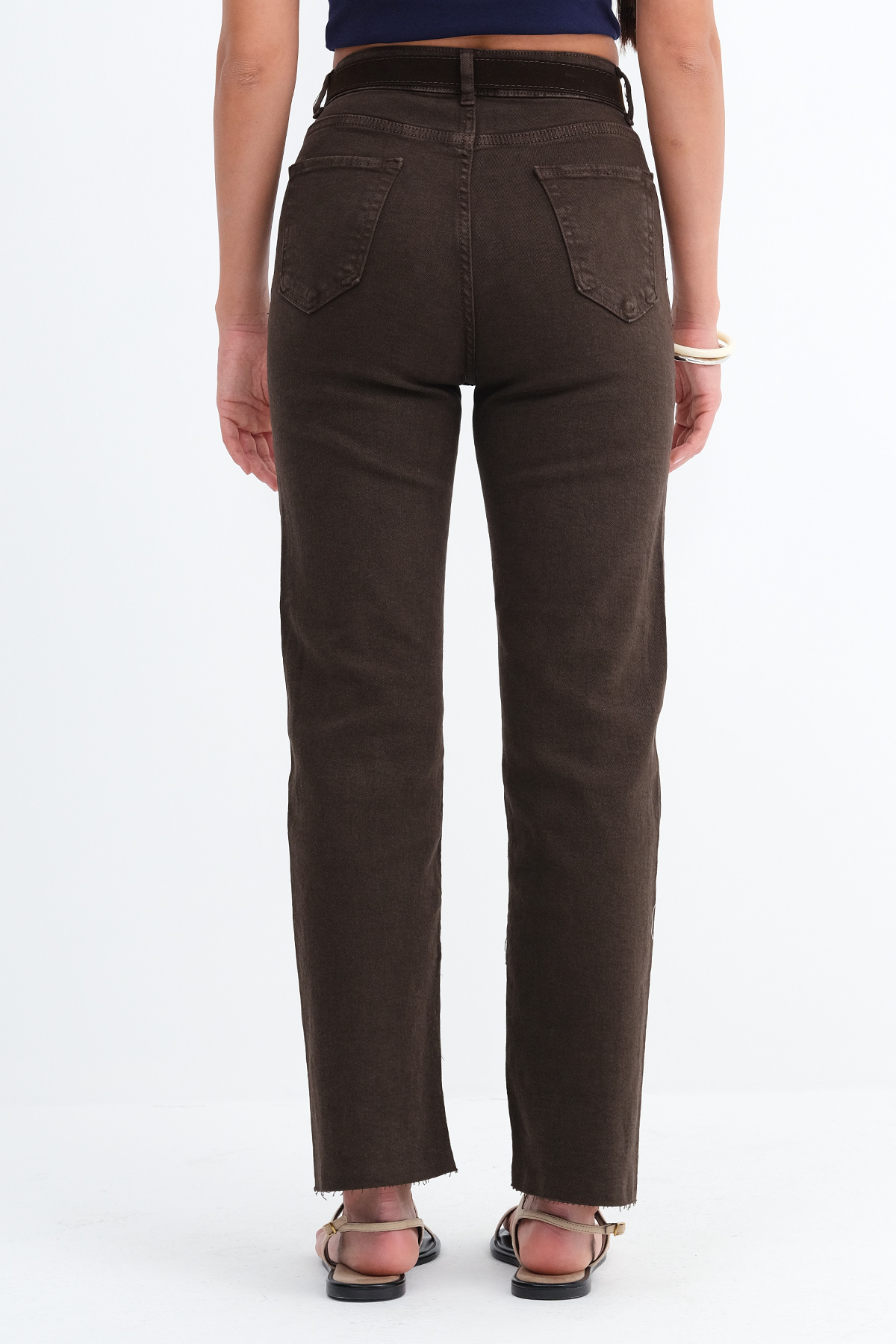 * Normal bel, kemer köprülü, düğmeli, fermuar patlı, 5 cepli, paçası lazer kesim,