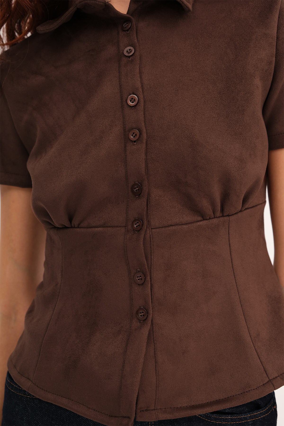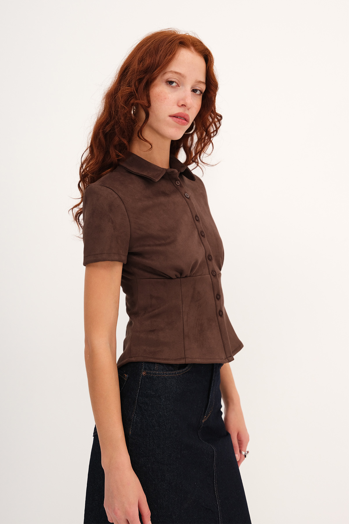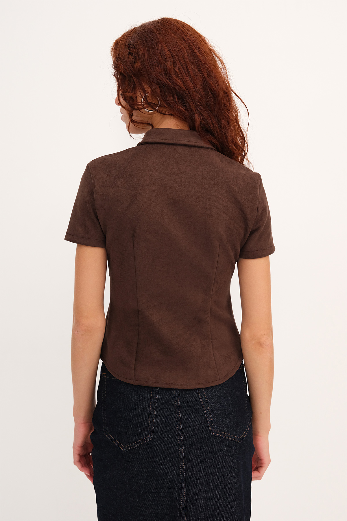 * Gömlek yaka, kısa kollu,* Düğmeli, düz renk,* Vücuda oturan, süet gömlek,* Ürün içeriği: %100 Polyester,* Manken üzerindeki ürün 36/S bedendir.* Numune Beden Ölçüleri: Boy: 50 cm Göğüs: 60 cm Kol Boyu: 15 cm (1-3 cm arasında değişiklik gösterebilir)* Ürün çekimlerinde renkler, ışık farklılığından dolayı değişkenlik gösterebilir.