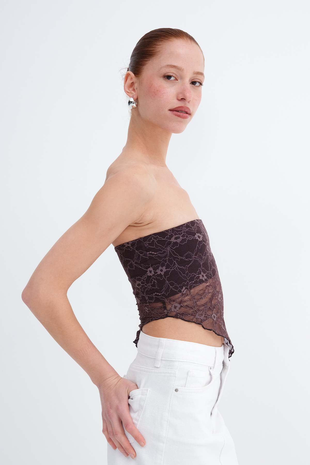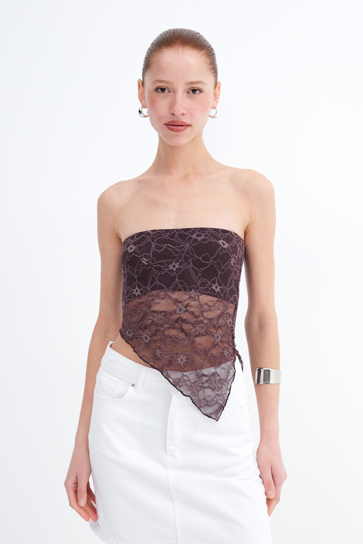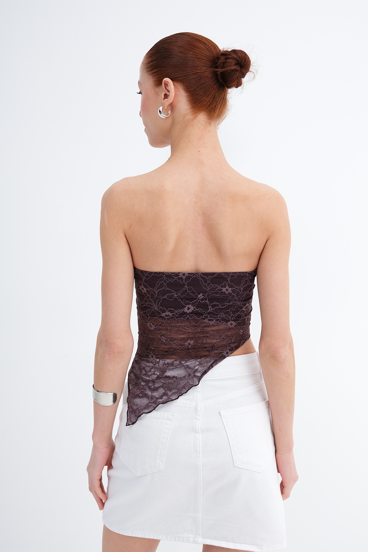 * Dantelli, asimetrik kesim, crop büstiyer,