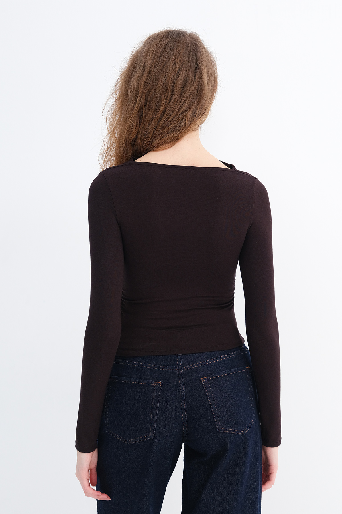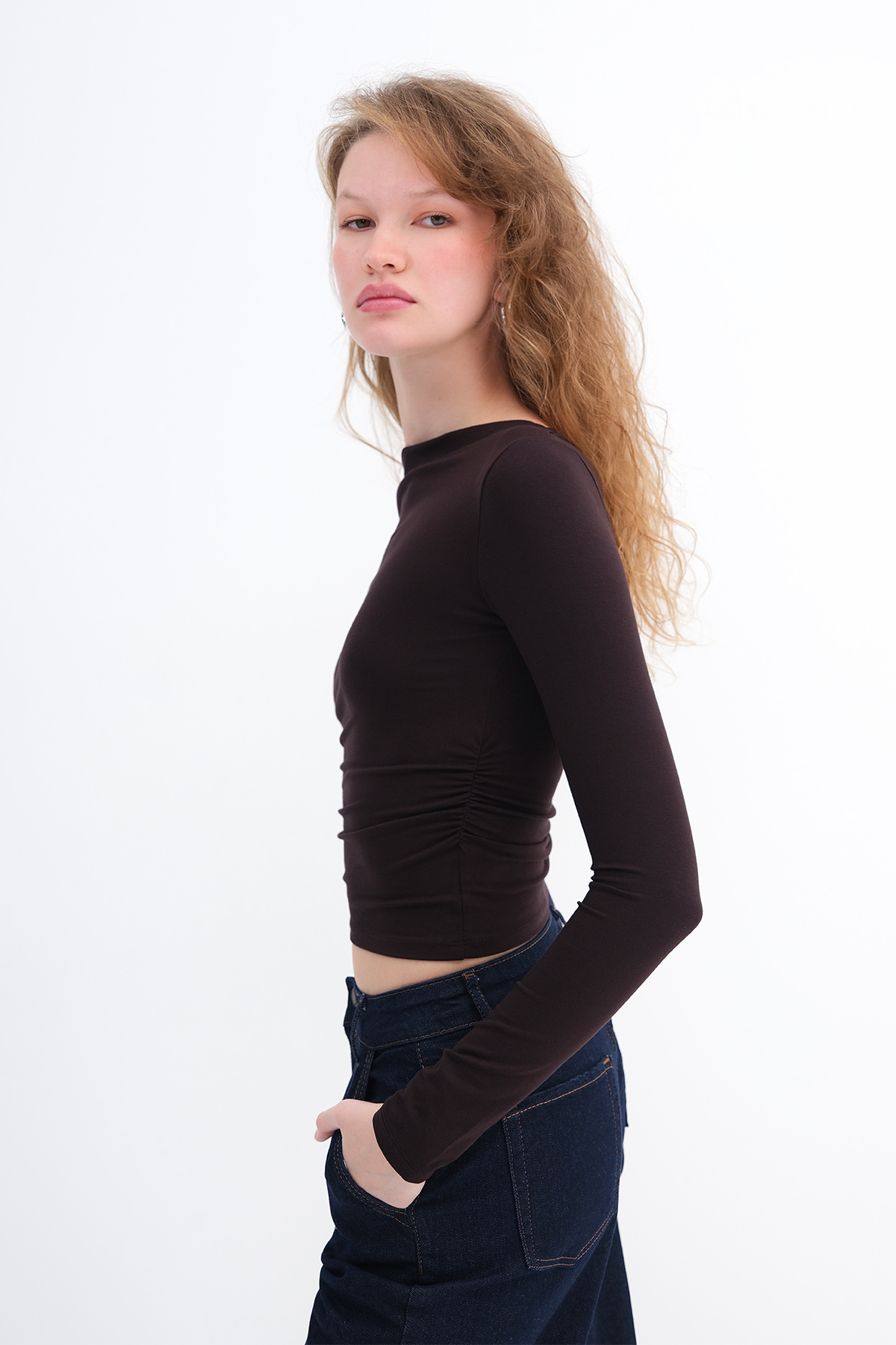 * Yanı büzgülü, düz renk bluz,