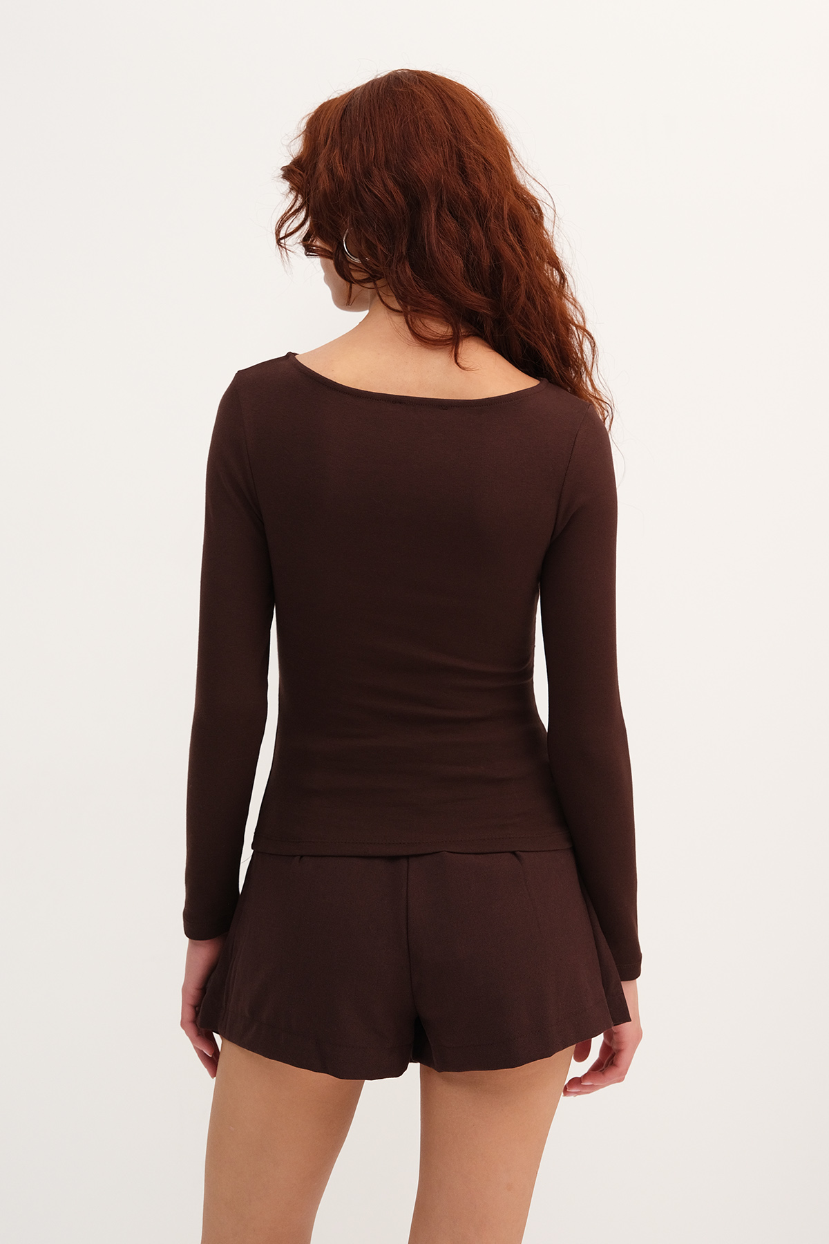 * Yanı büzgülü, düz renk, vücudu saran bluz,