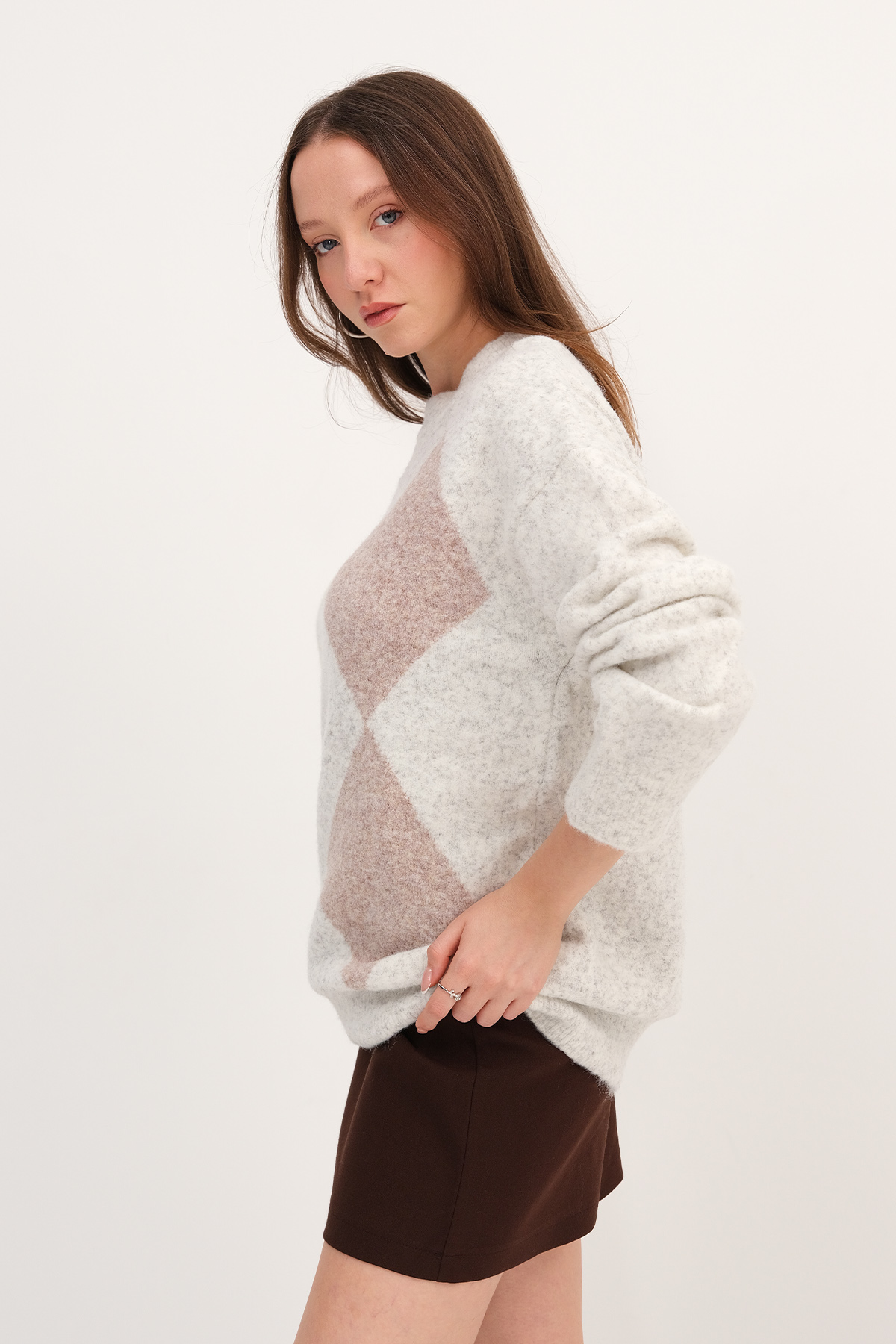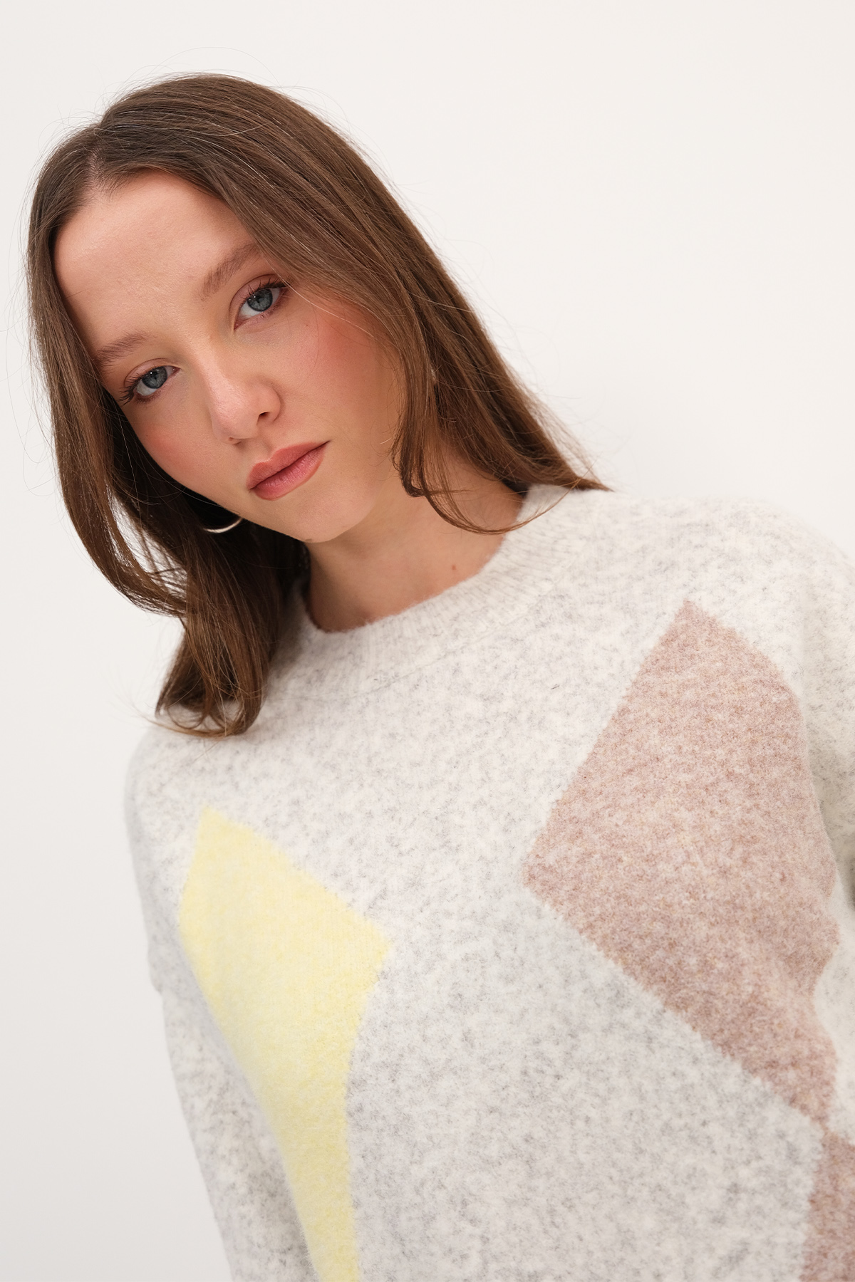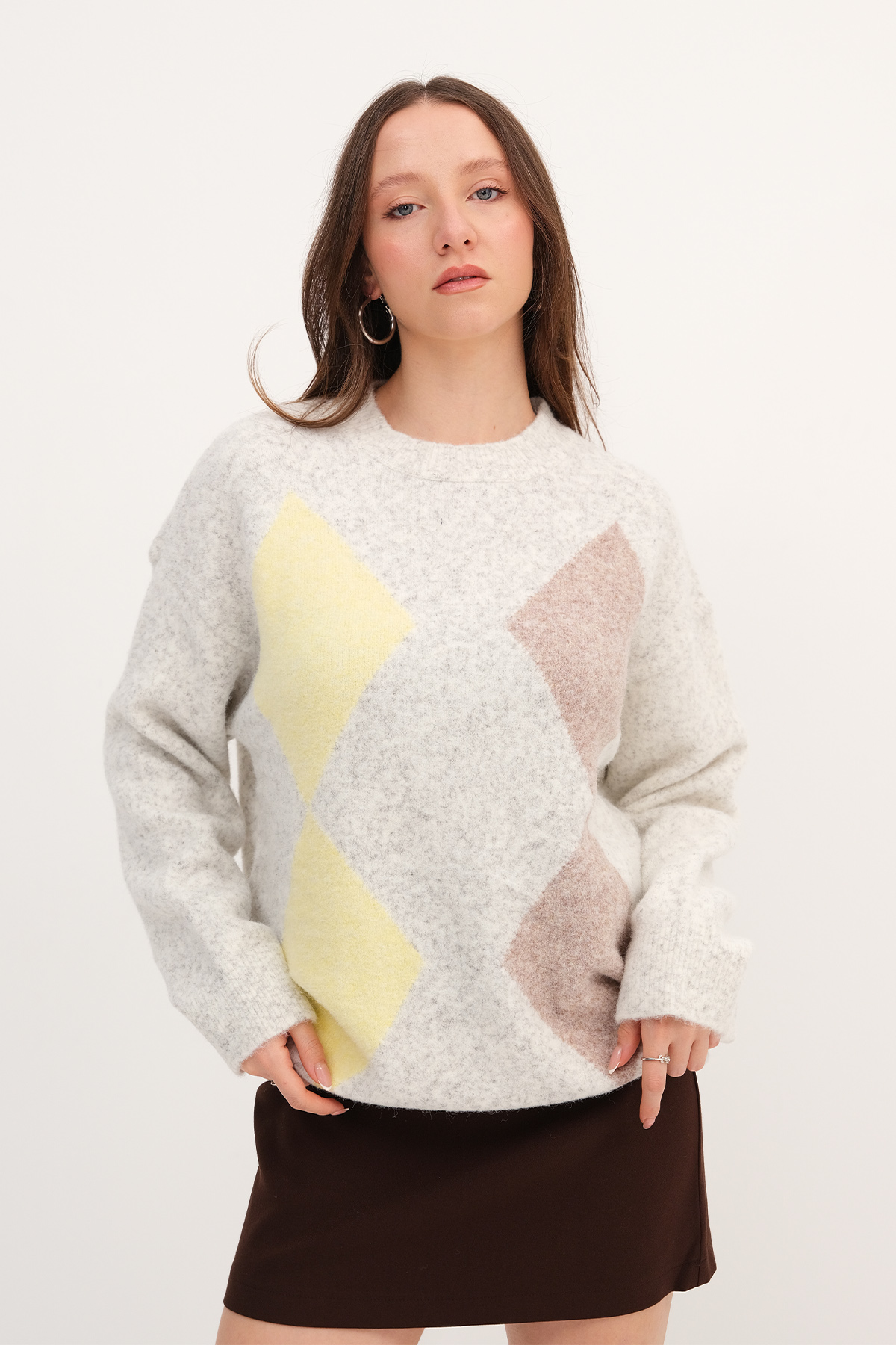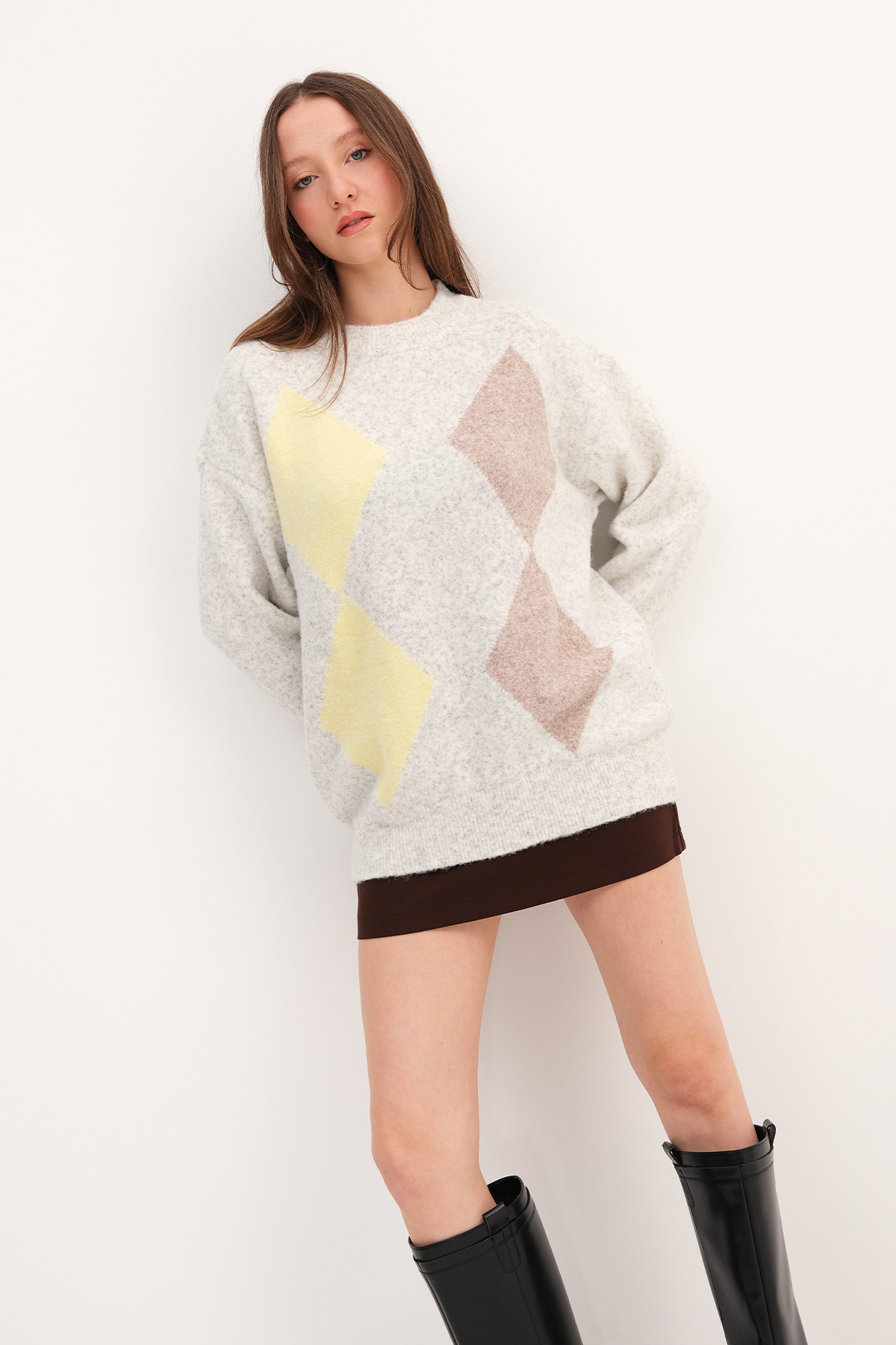 * Bisiklet yaka, uzun kollu,* Baklava desenli, rahat kalıp,* Triko kazak,* Ürün içeriği:%39 Akrilik %29 RCS Pes %14 Polyester %9 Polyamid %5 Yün %4 Spandex* Manken üzerindeki ürün standart bedendir.* Numune Beden Ölçüleri: Boy: 70 cm Göğüs: 110 cm Kol Boyu: 50 cm (1-3 cm arasında değişiklik gösterebilir)* Ürün çekimlerinde renkler, ışık farklılığından dolayı değişkenlik gösterebilir.