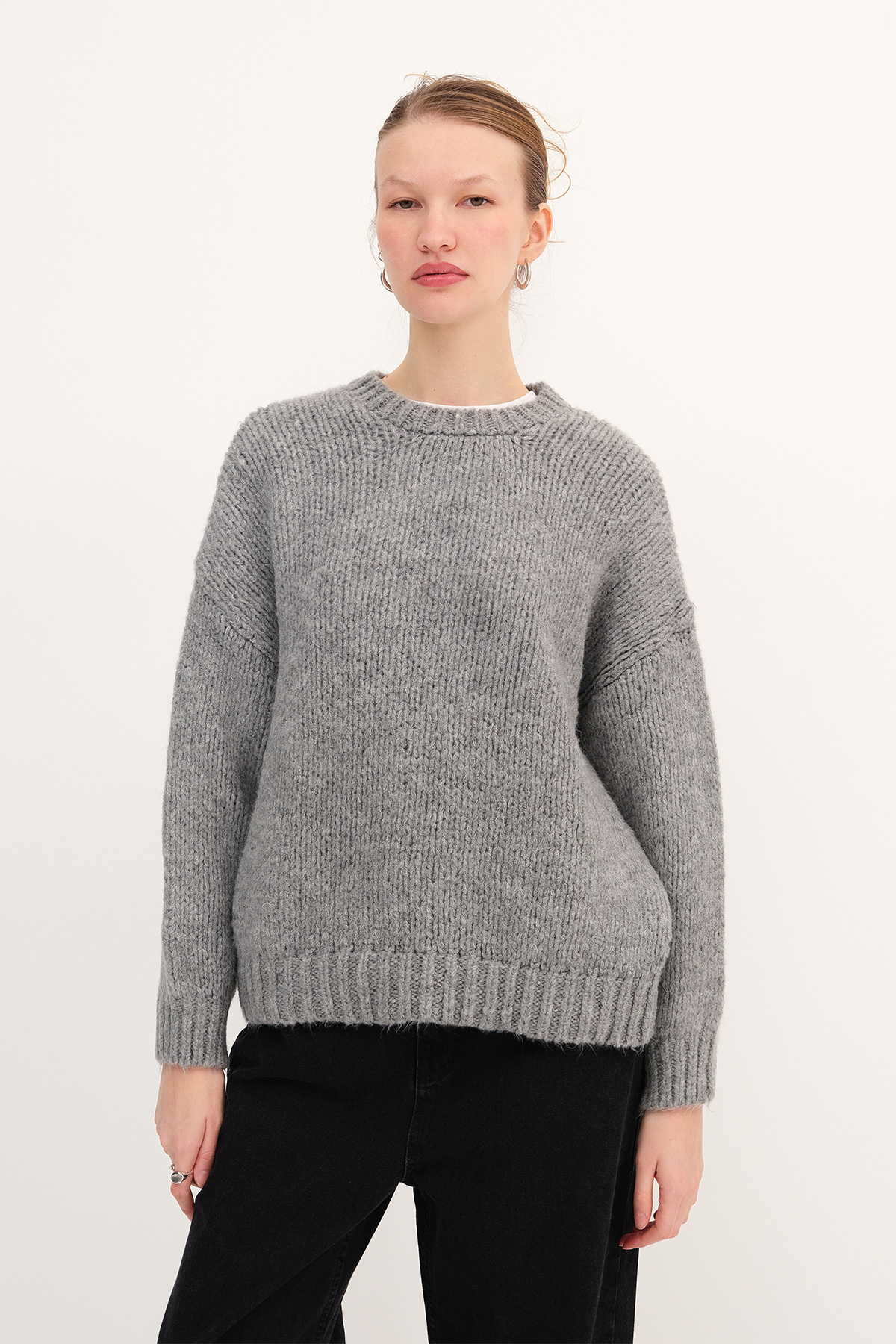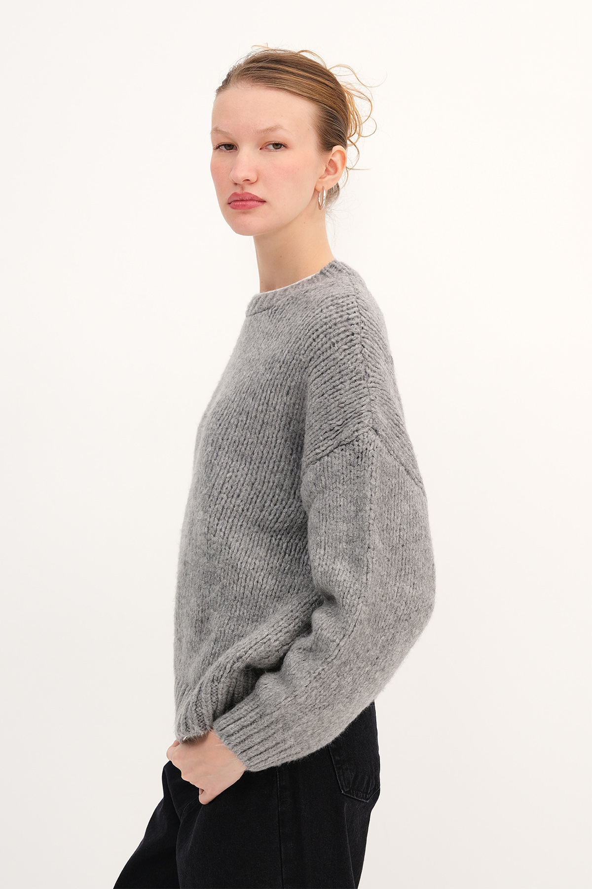 * Bisiklet yaka, uzun kollu,* Düşük omuz, basic,* Rahat kalıp, triko kazak,* Ürün içeriği: %80 Akrilik %13 Polyester %7 Pbt* Manken üzerindeki ürün standart bedendir.* Numune beden ölçüleri: Boy: 58 cm Göğüs: 110 cm Kol boyu: 46 cm (1-3 cm değişiklik gösterebilir)* Ürün çekimlerinde renkler, ışık farklılığından dolayı değişkenlik gösterebilir.