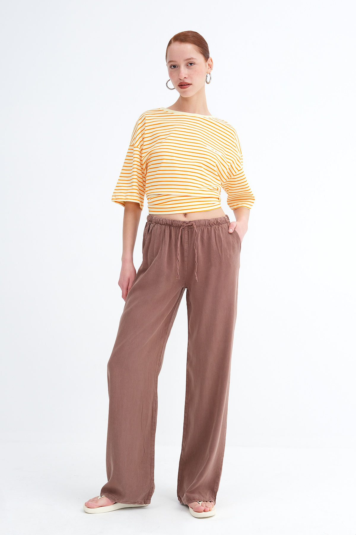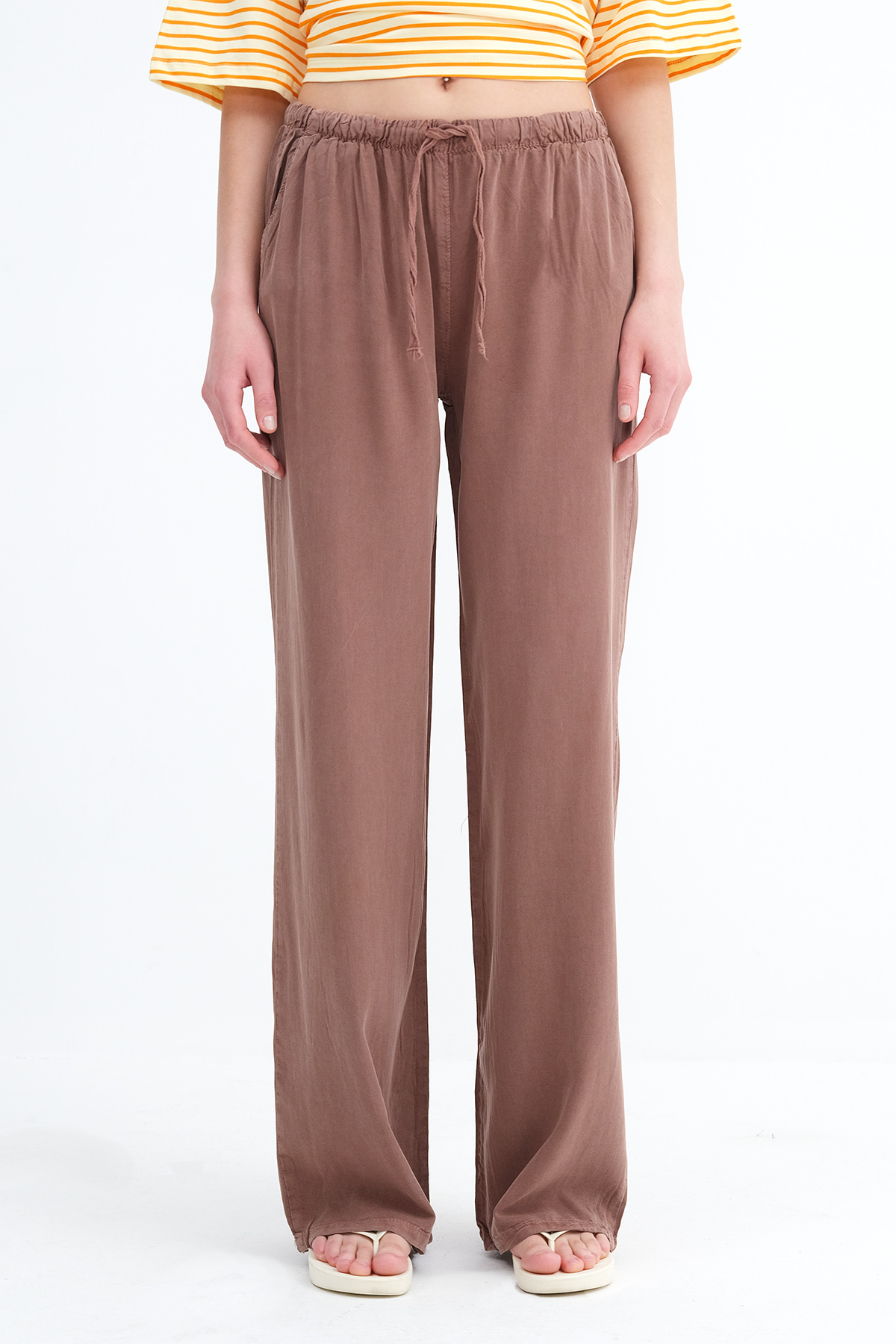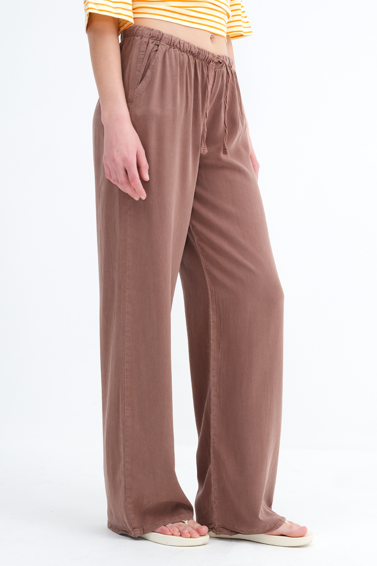 * İki cepli, rahat kalıp, wide leg pantolon,