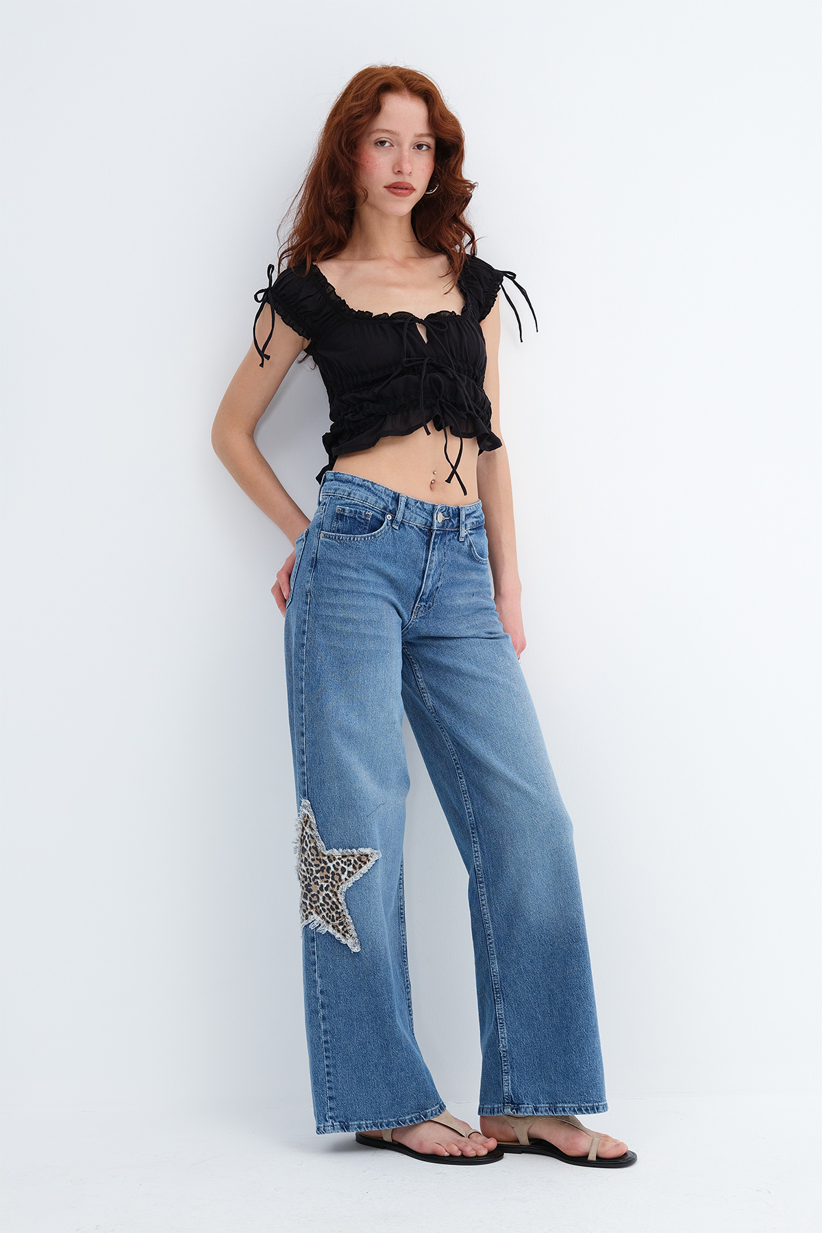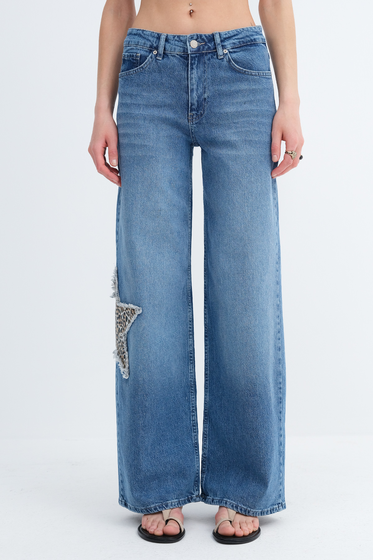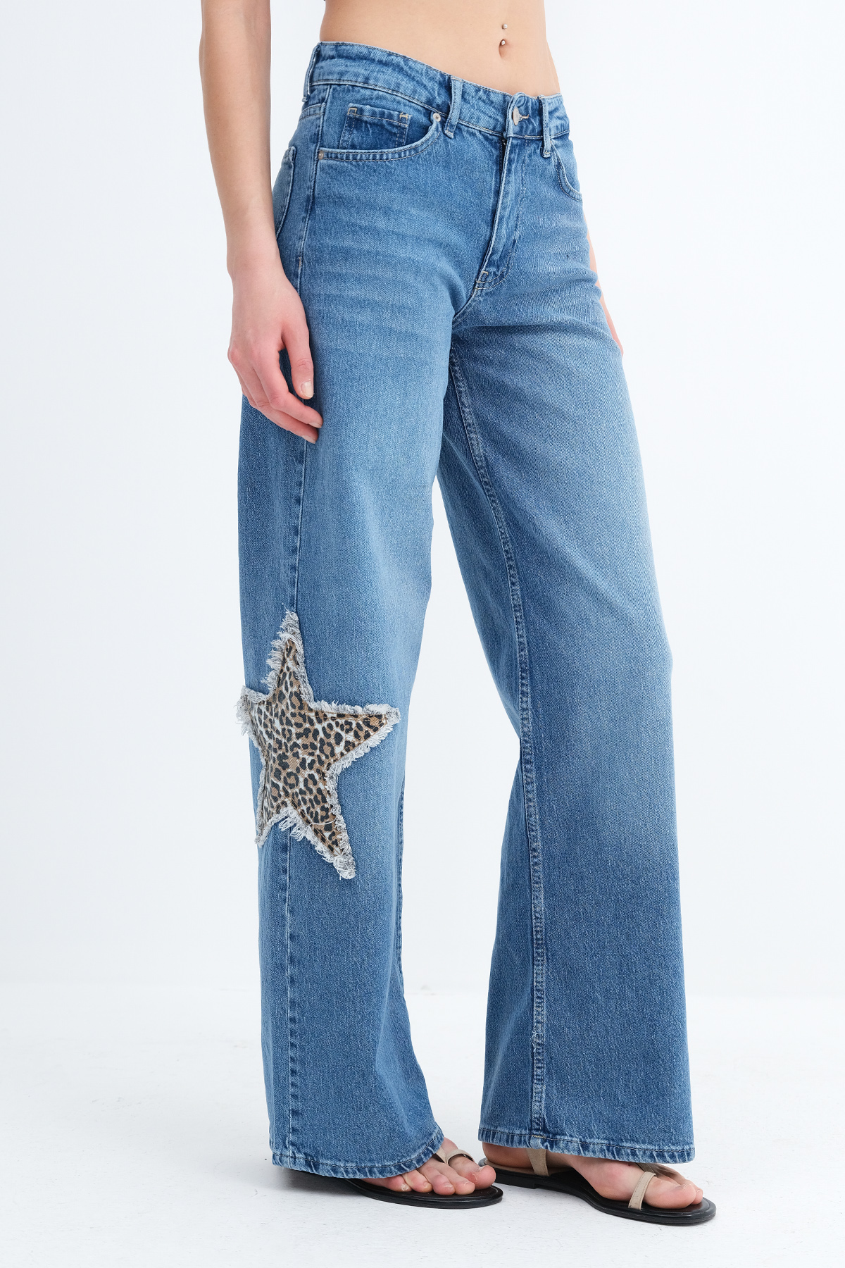 * Fermuar patlı, 5 cepli, yıldız desenli,