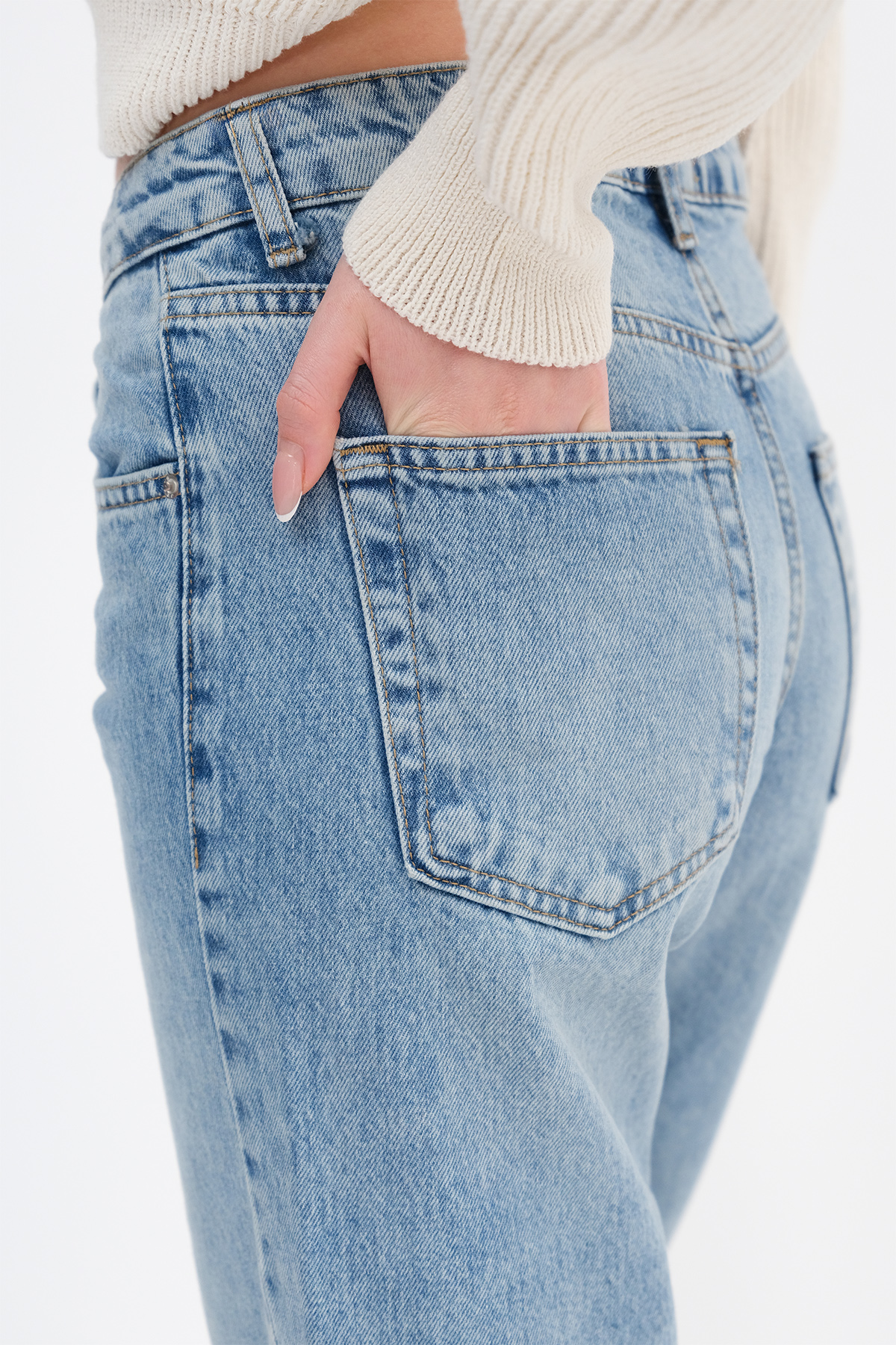 * Yüksek bel, kemer köprülü, düğmeli, fermuar patlı,