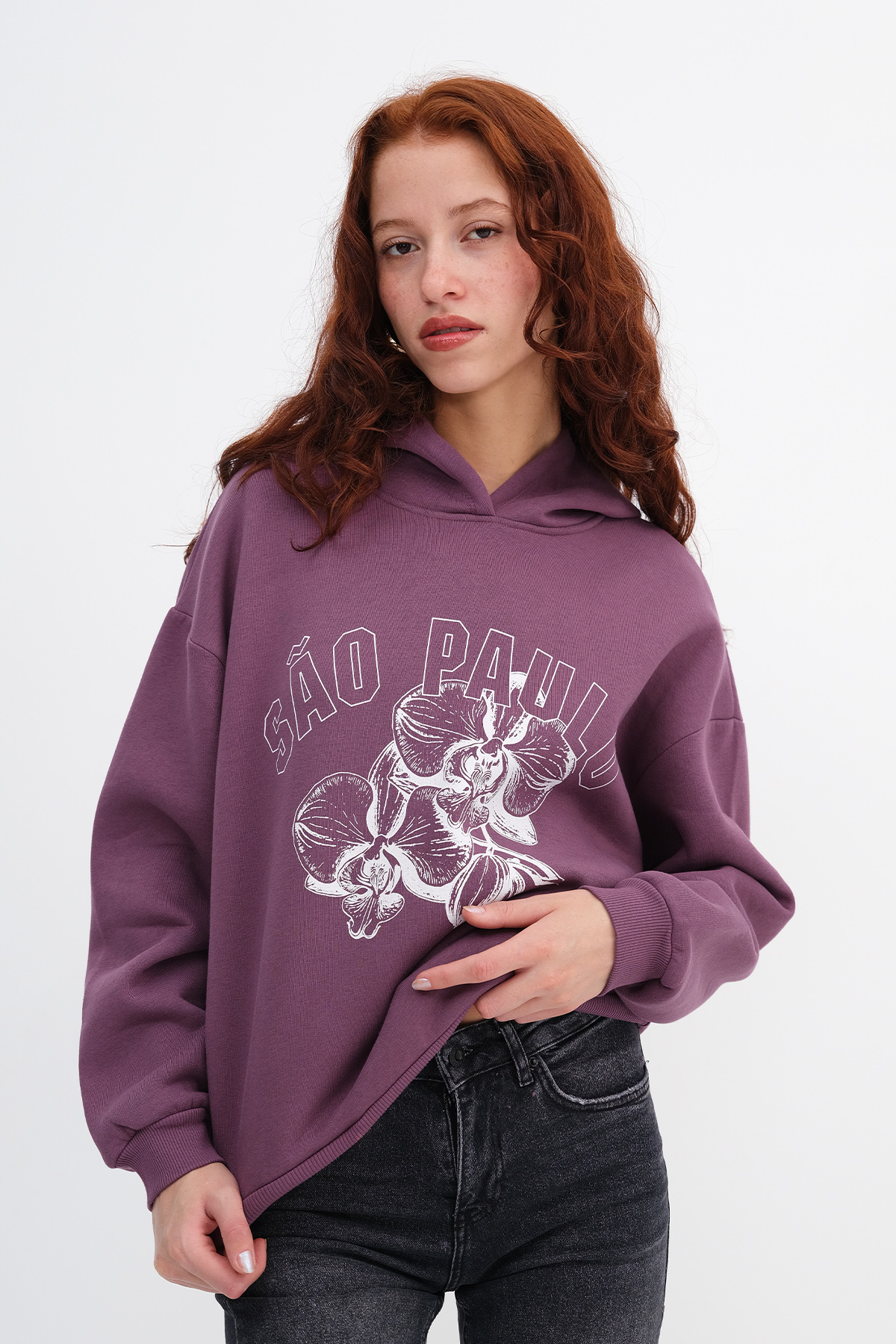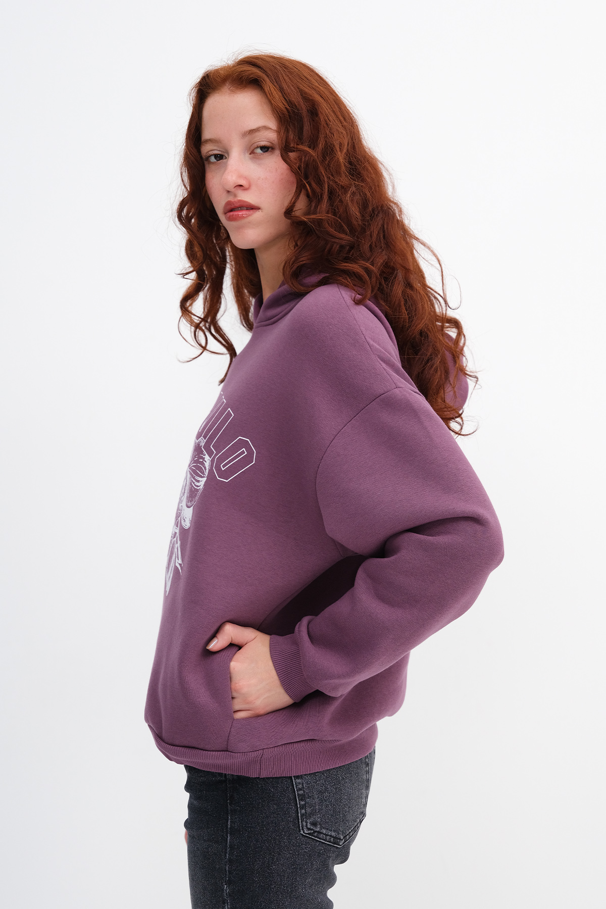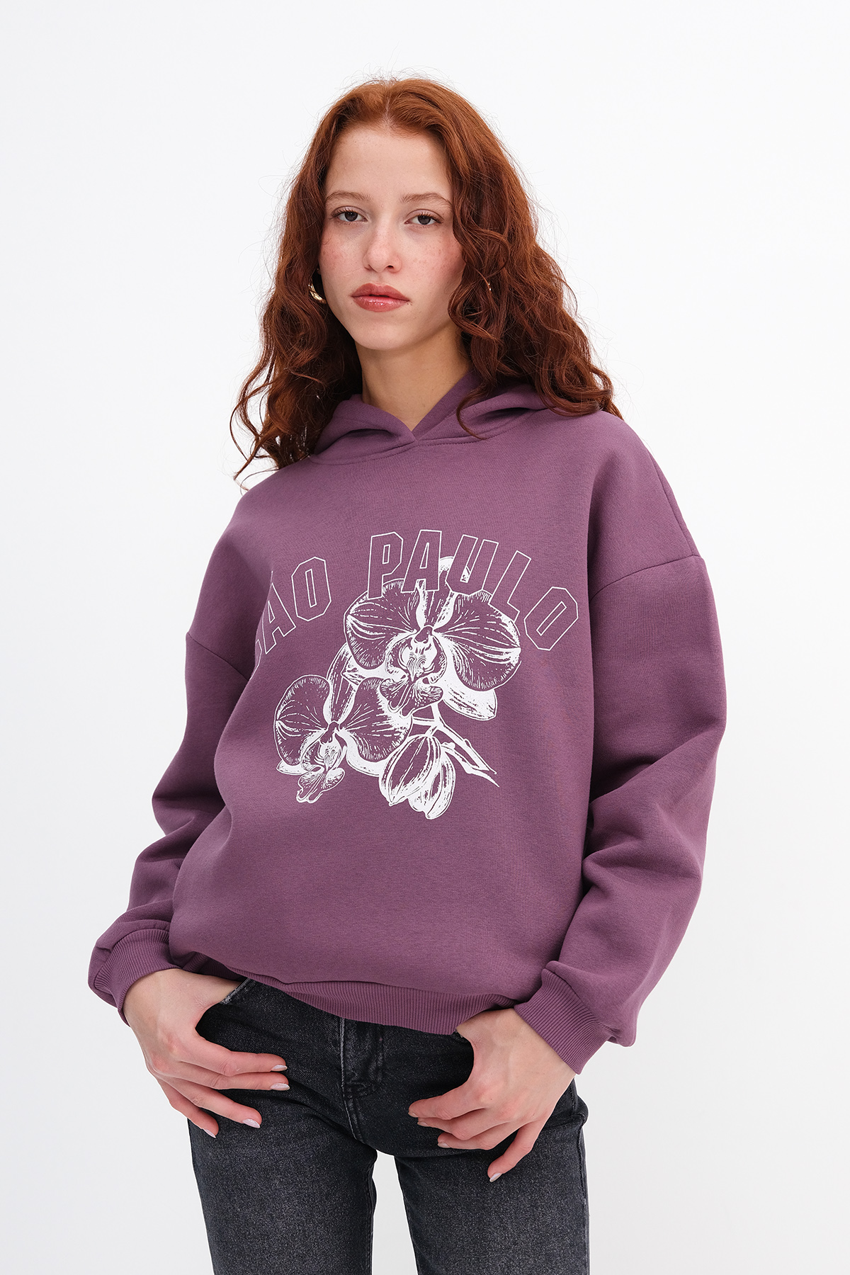 * Baskılı, kanguru cepli, şardonlu, rahat kalıp sweatshirt,