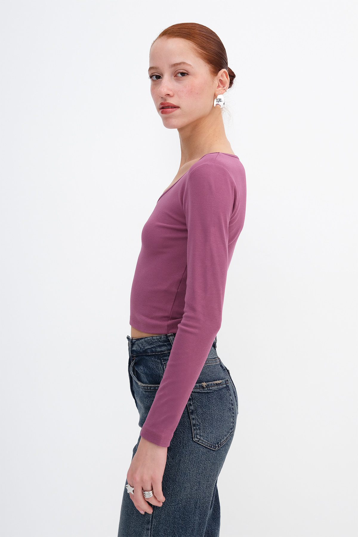 * V yaka, uzun kollu,