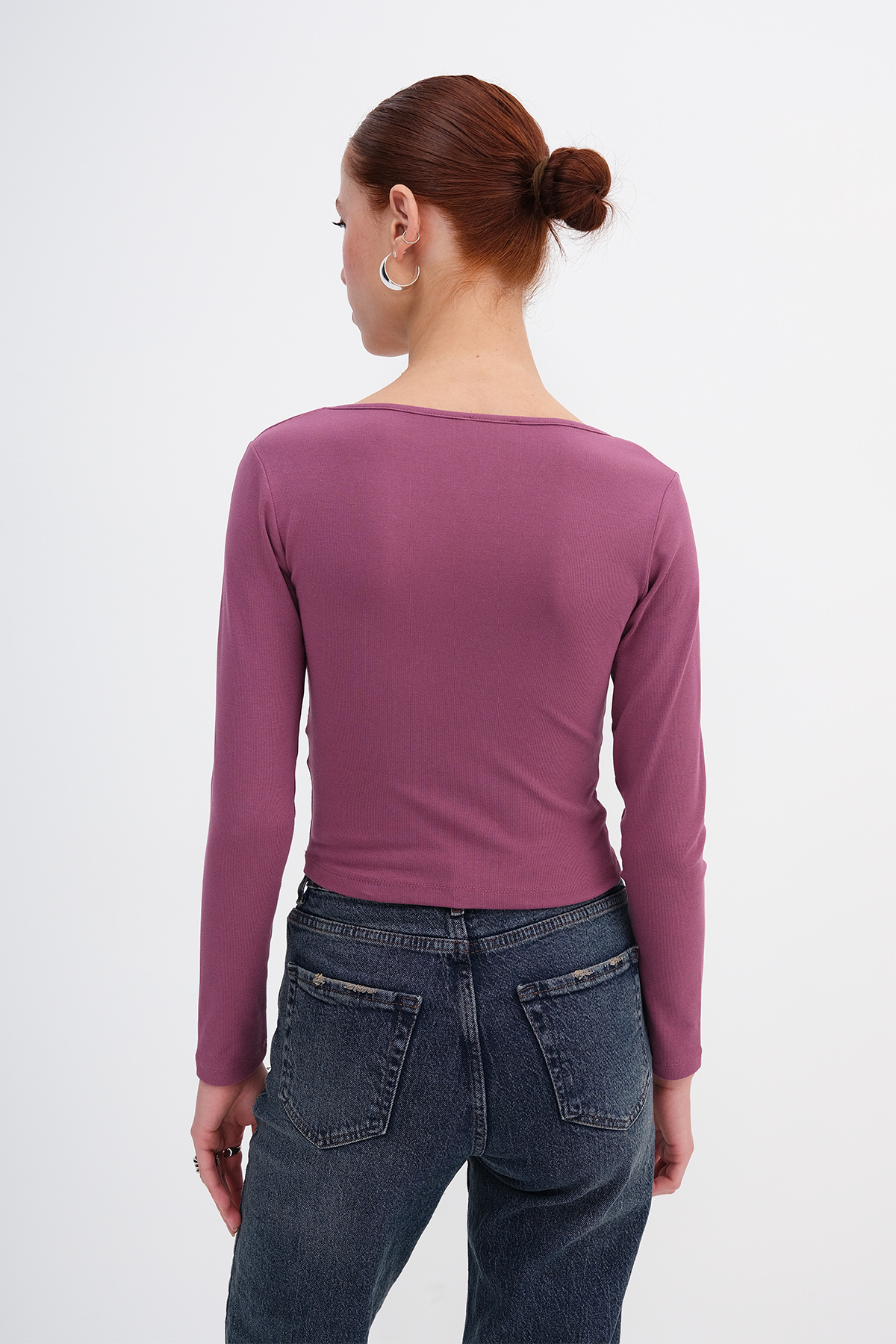 * Düz renk, vücudu saran bluz,