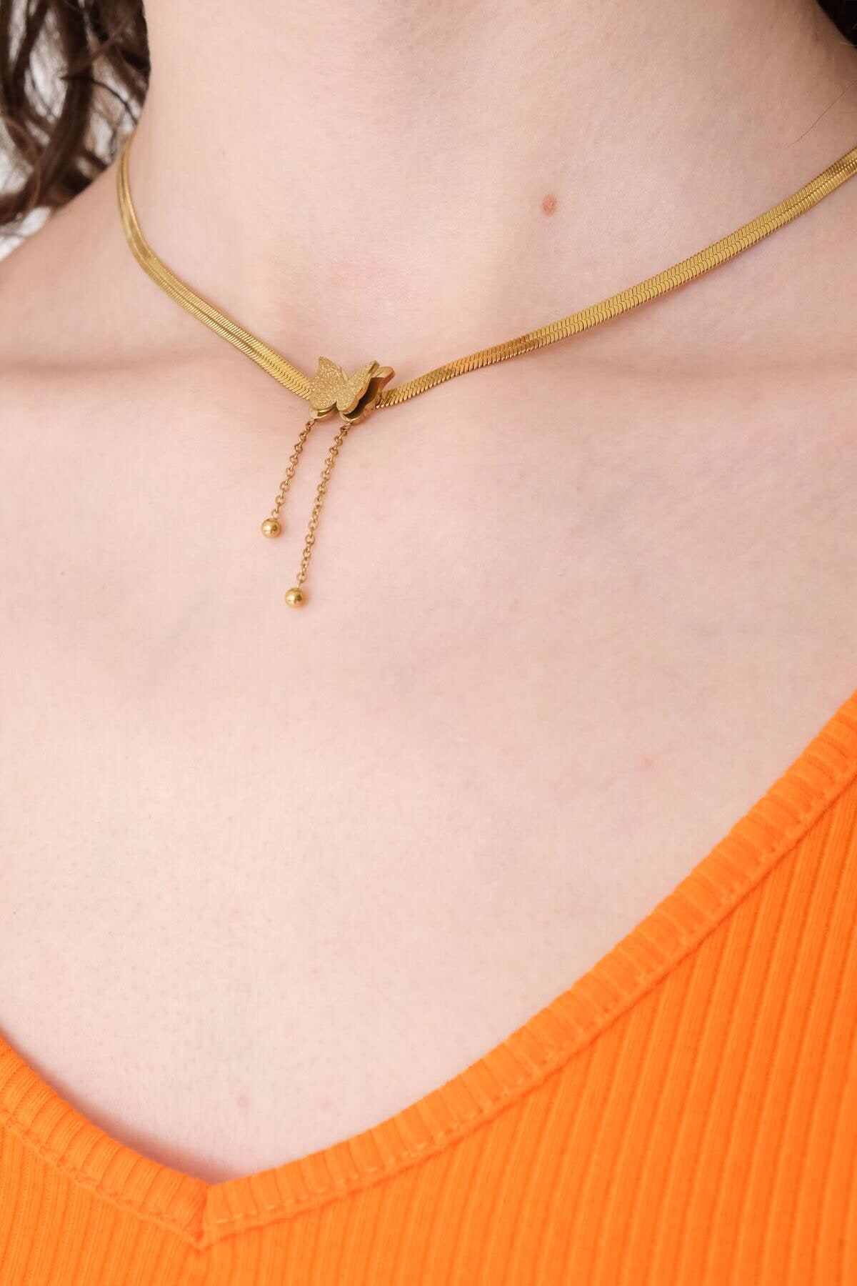 * Kelebek detaylı kolye,