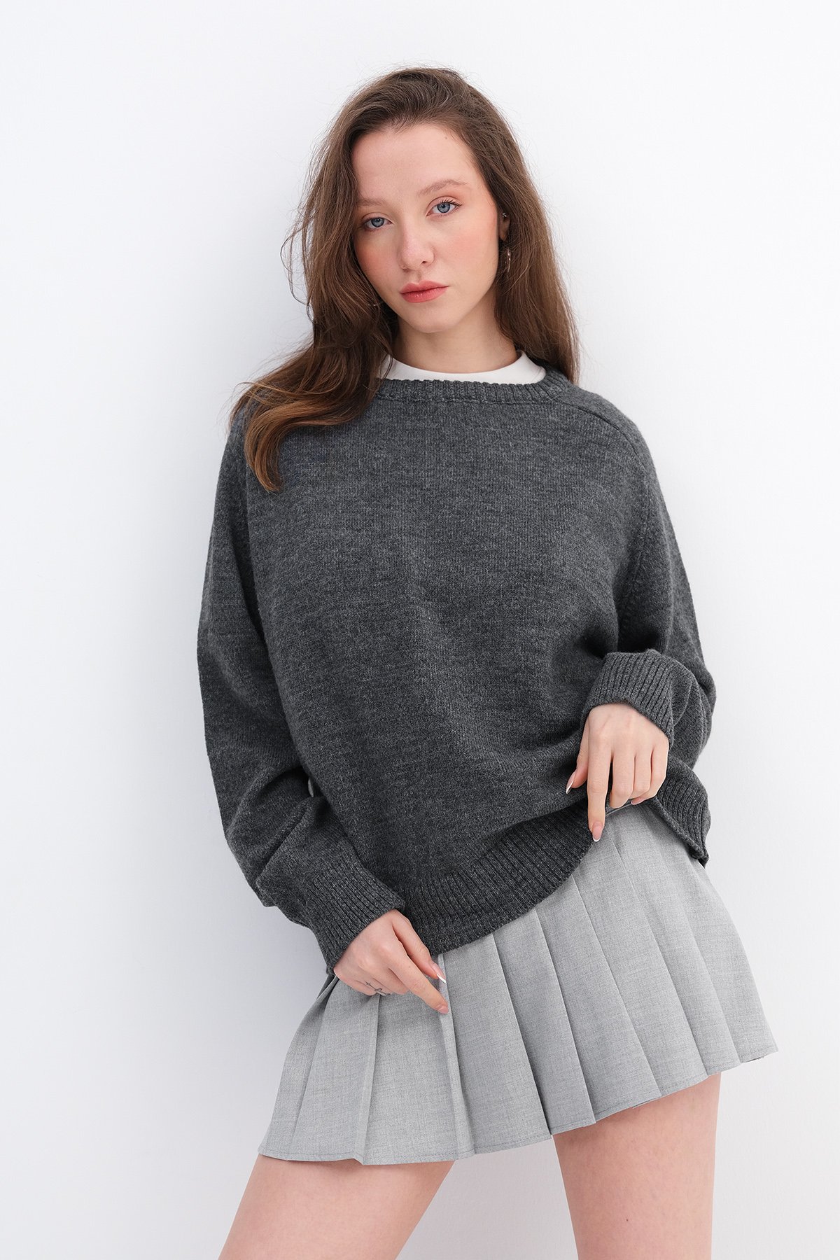 * Bisiklet yaka, uzun kollu,