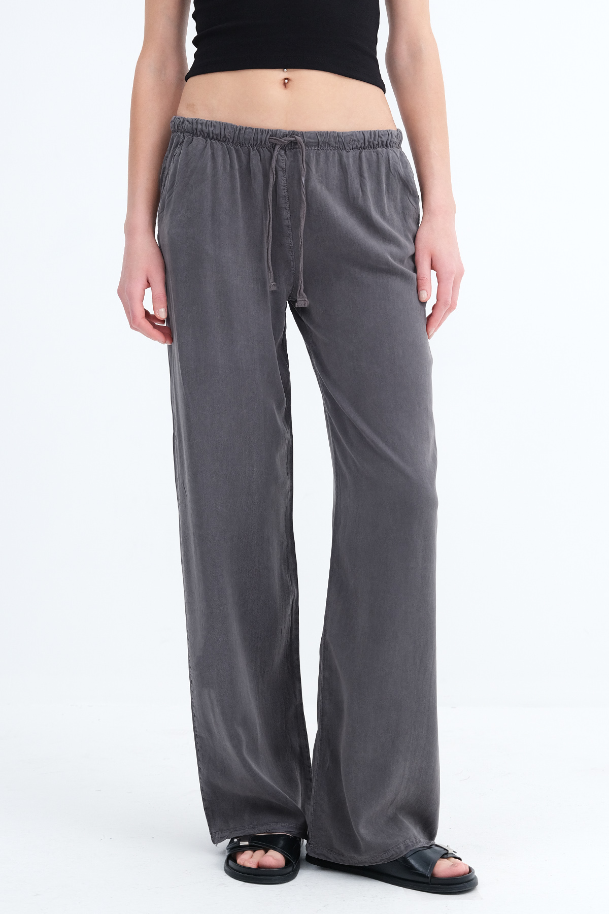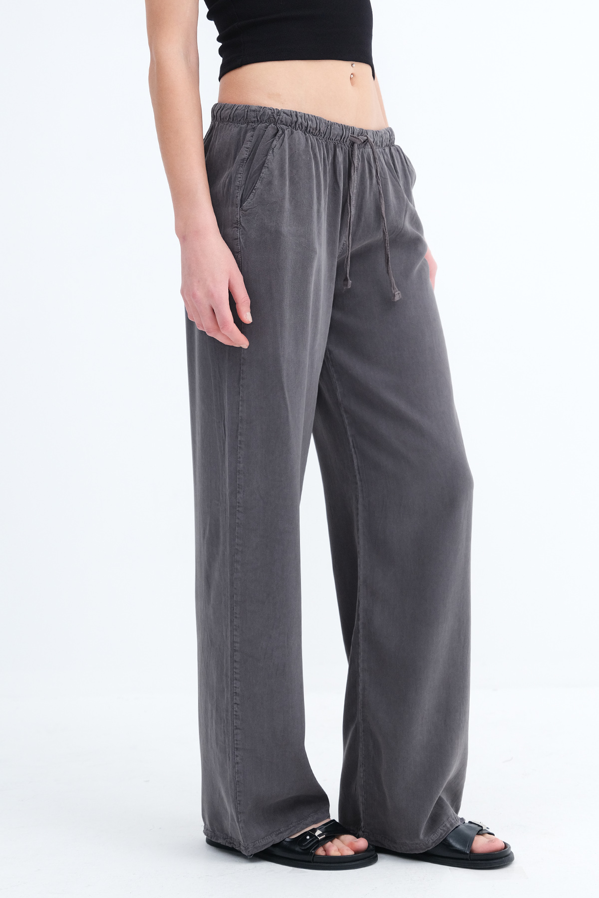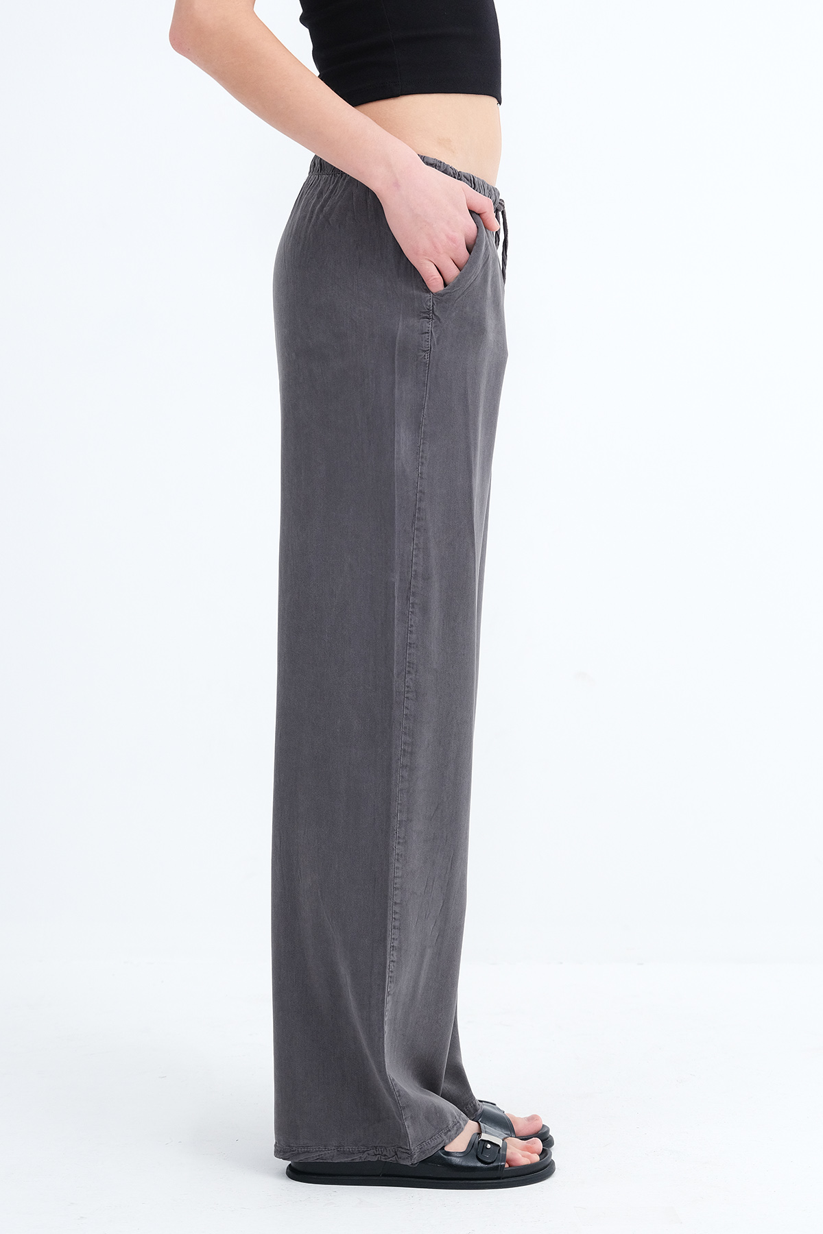 * İki cepli, rahat kalıp, wide leg pantolon,