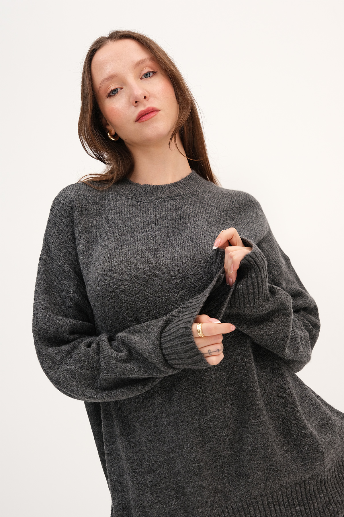 * Bisiklet yaka, uzun kollu,* Düşük omuz, basic,* Oversize triko kazak,* Ürün içeriği: %80 Akrilik %13 Polyester %7 Elite* Manken üzerindeki ürün standart bedendir.* Numune beden ölçüleri: Boy: 68 cm Göğüs: 120 cm Kol boyu: 51 cm (1-3 cm değişiklik gösterebilir)* Ürün çekimlerinde renkler, ışık farklılığından dolayı değişkenlik gösterebilir.