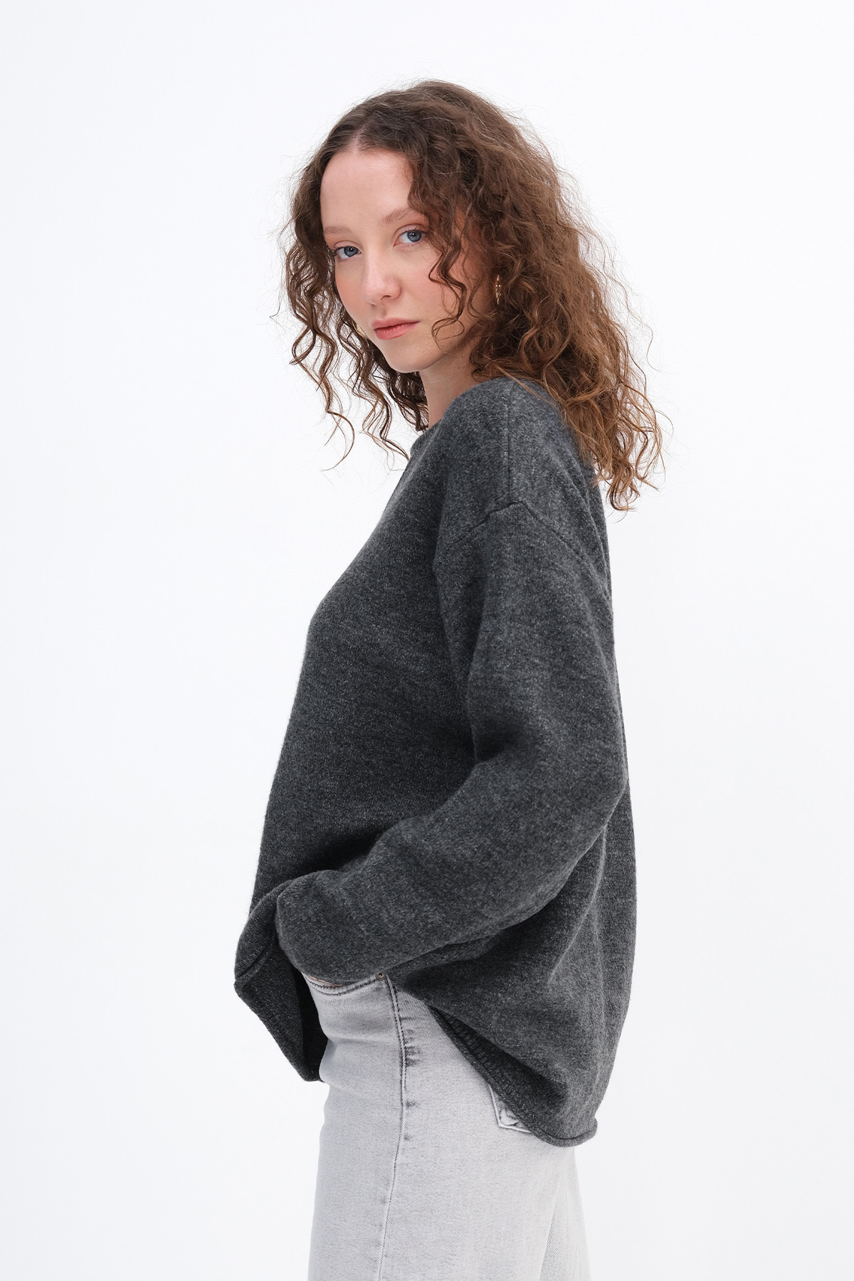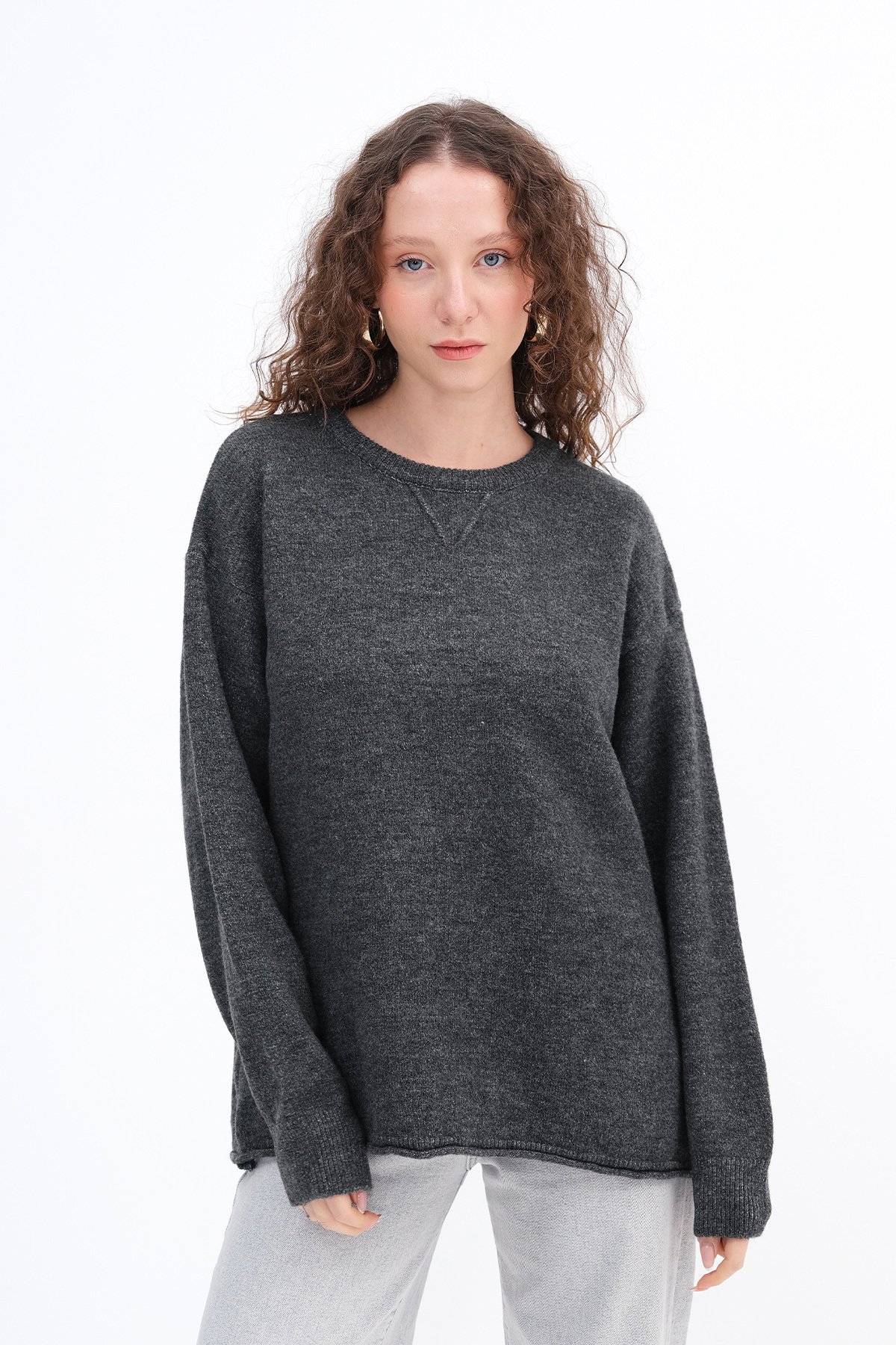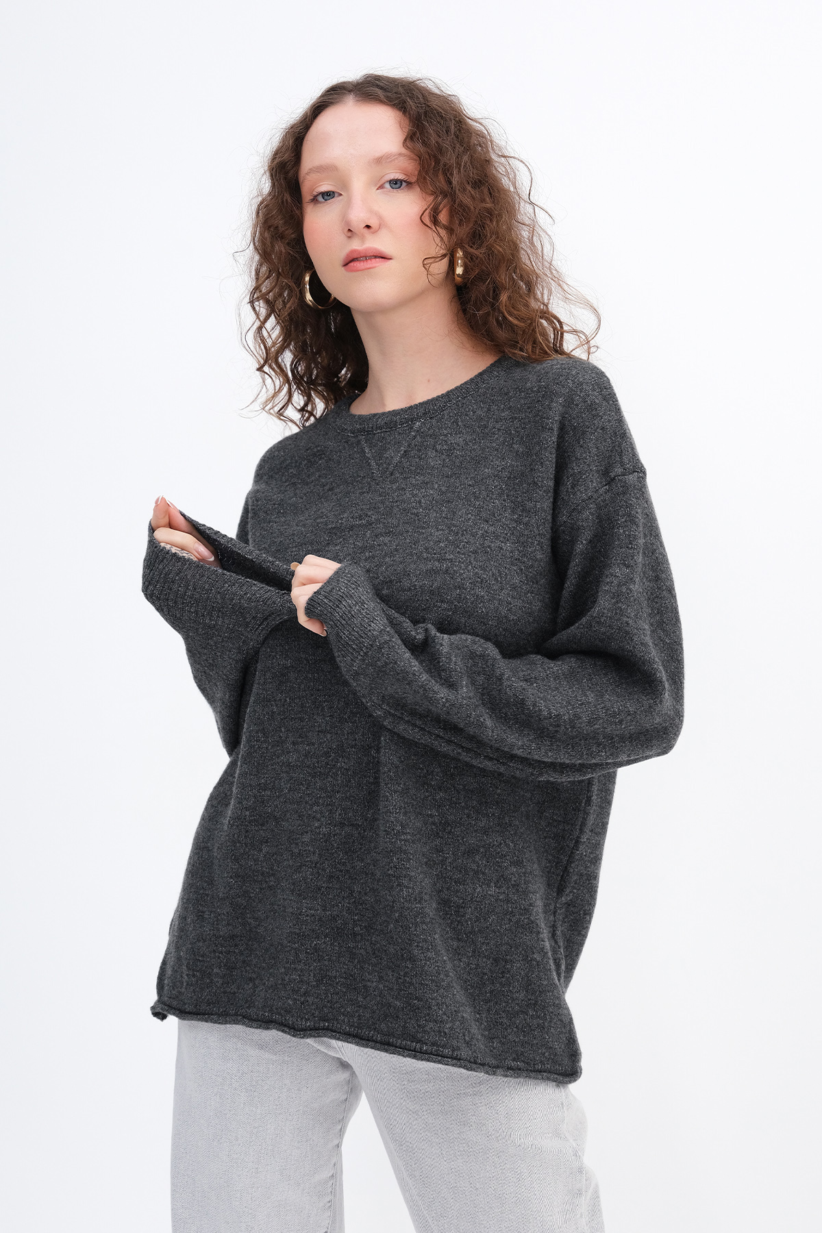 * Düz renk, triko kazak,