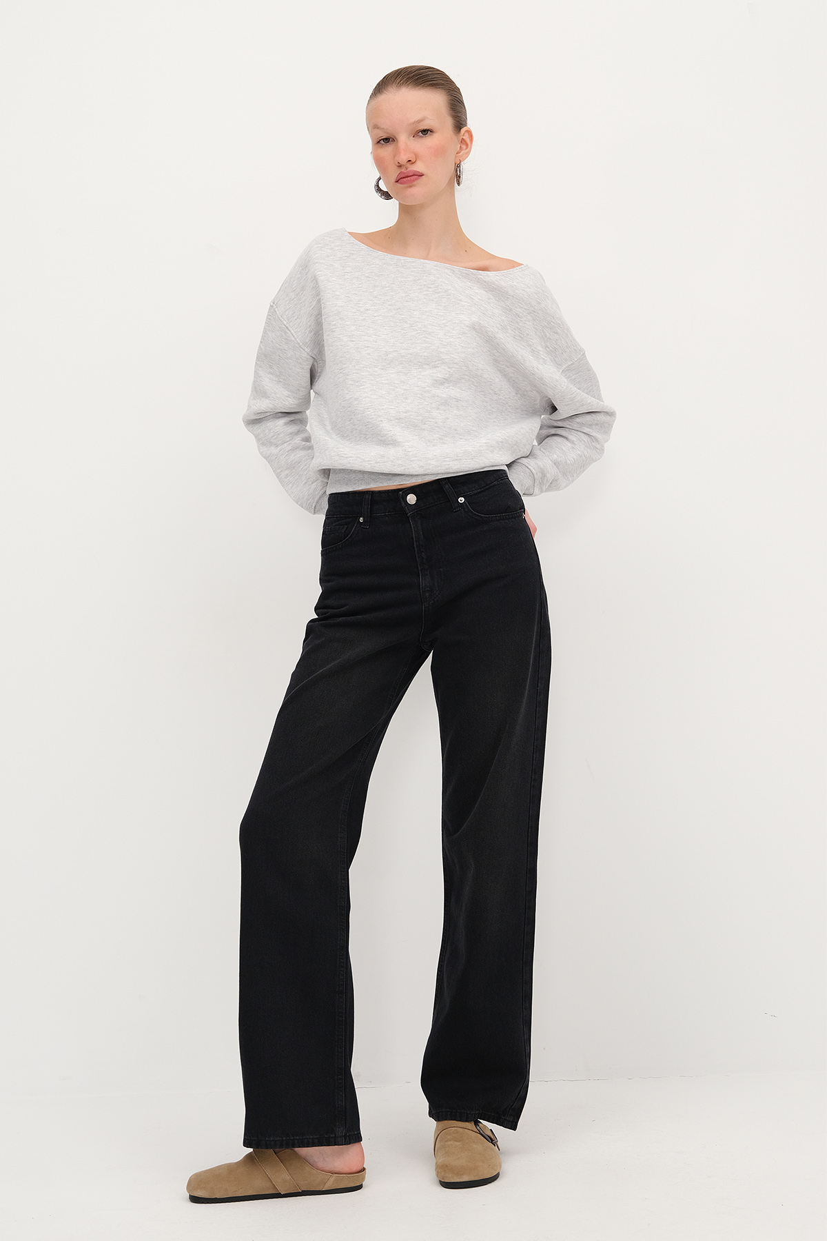 * 5 cepli, düz renk, wide leg jean pantolon,