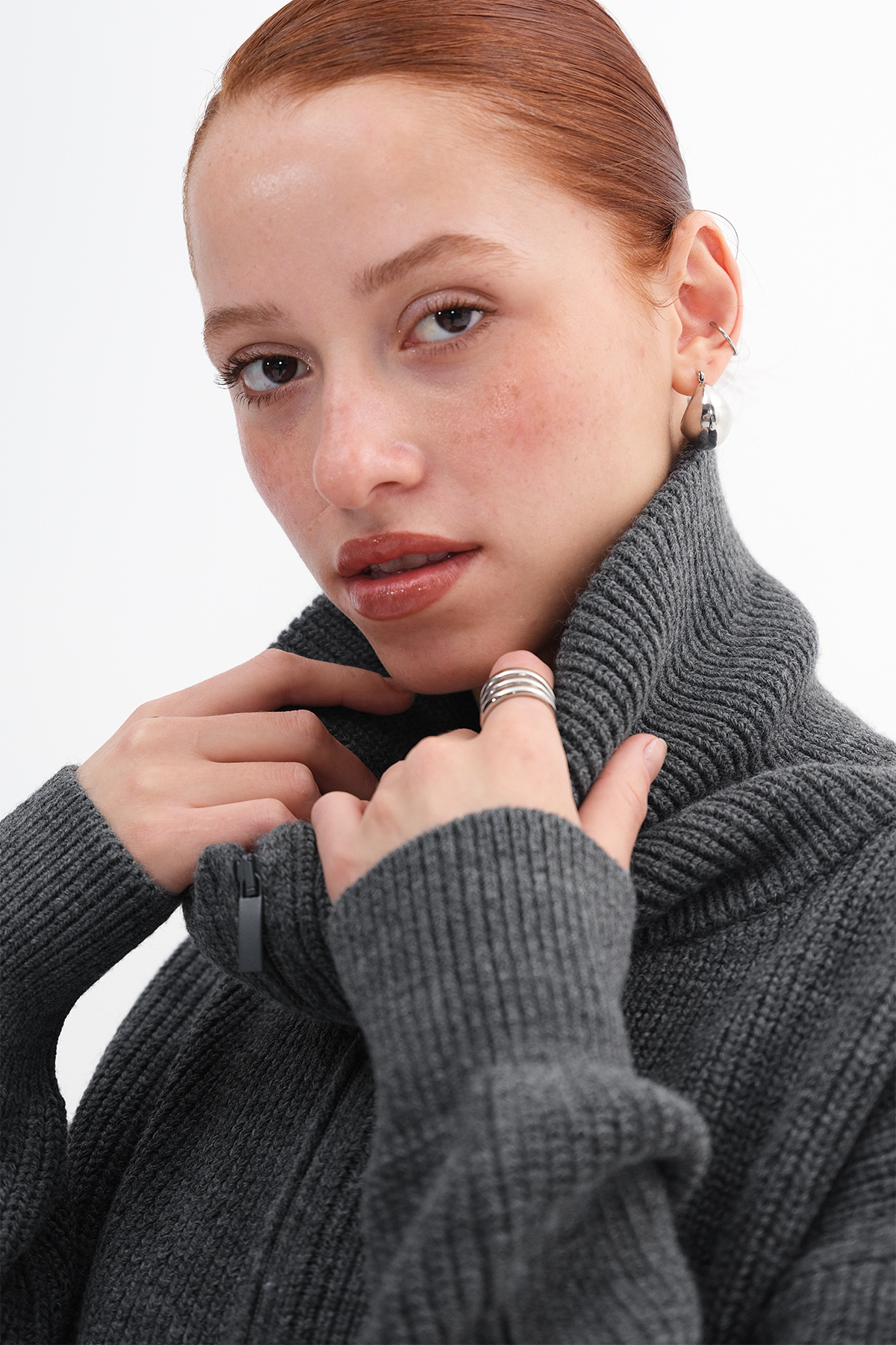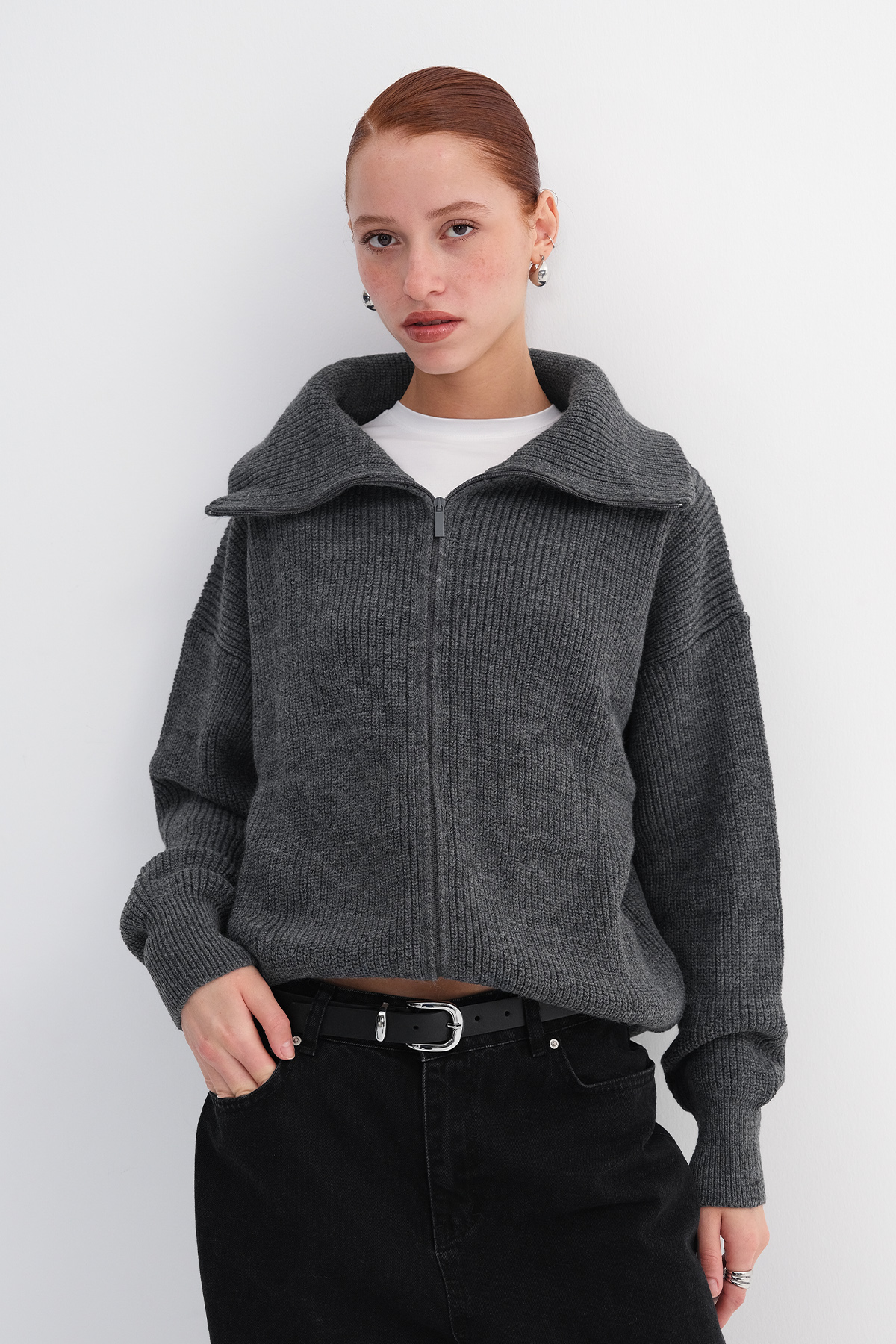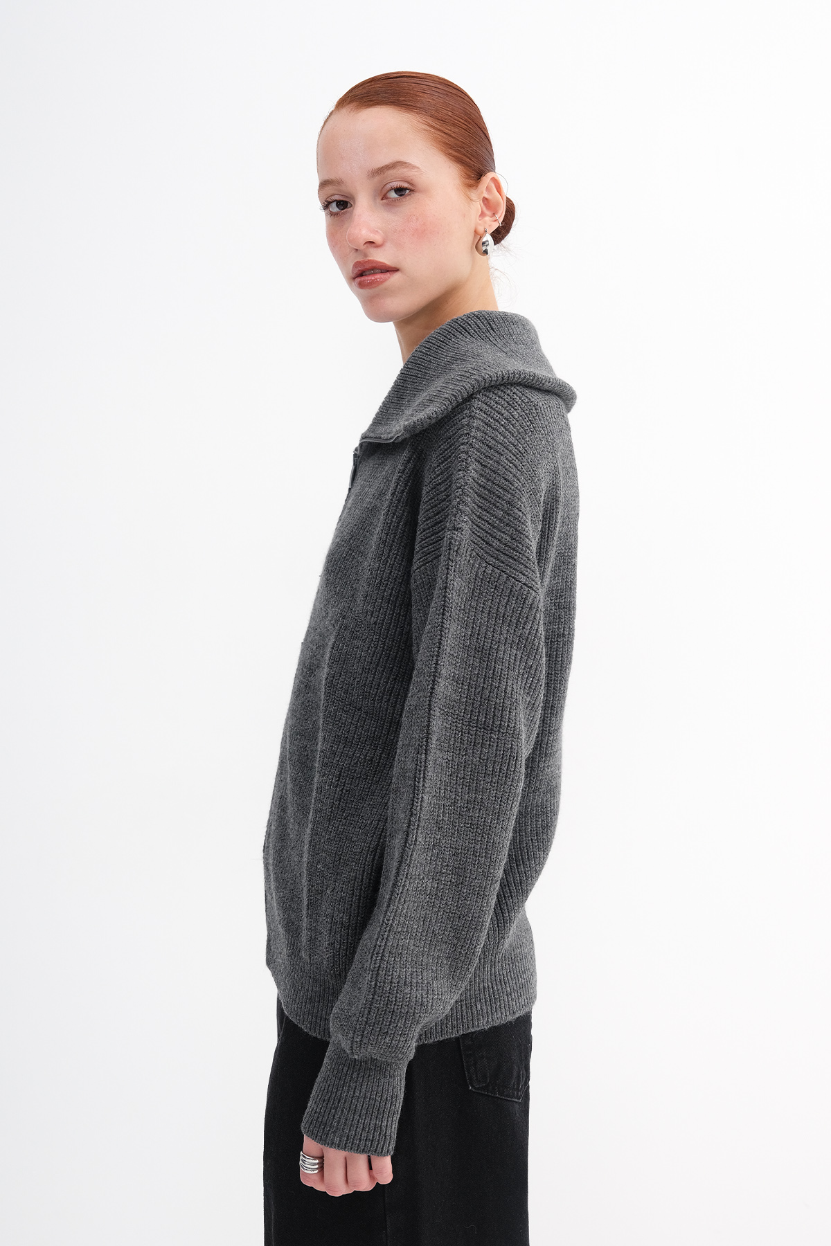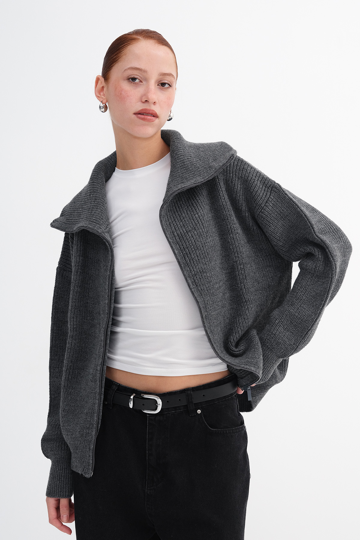 * Balıkçı yaka, uzun kollu, düşük omuz, fermuarlı,