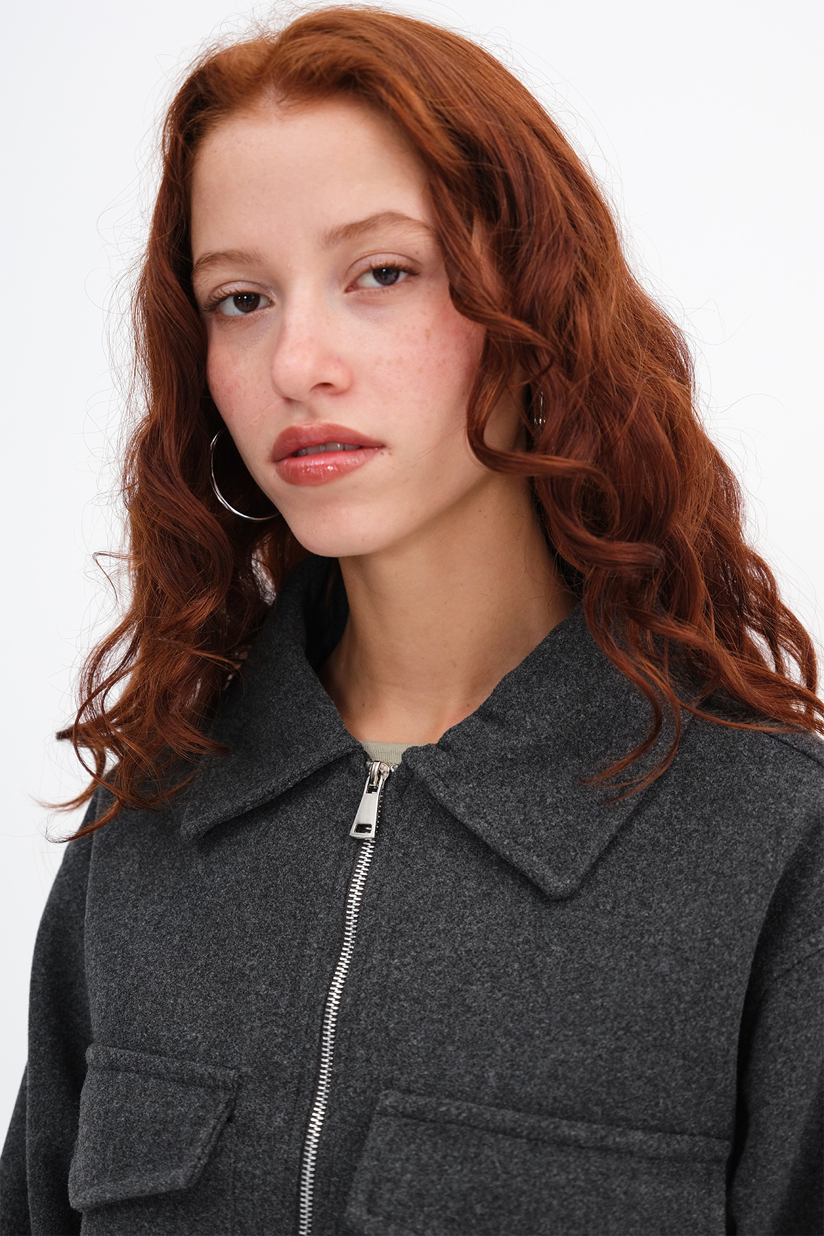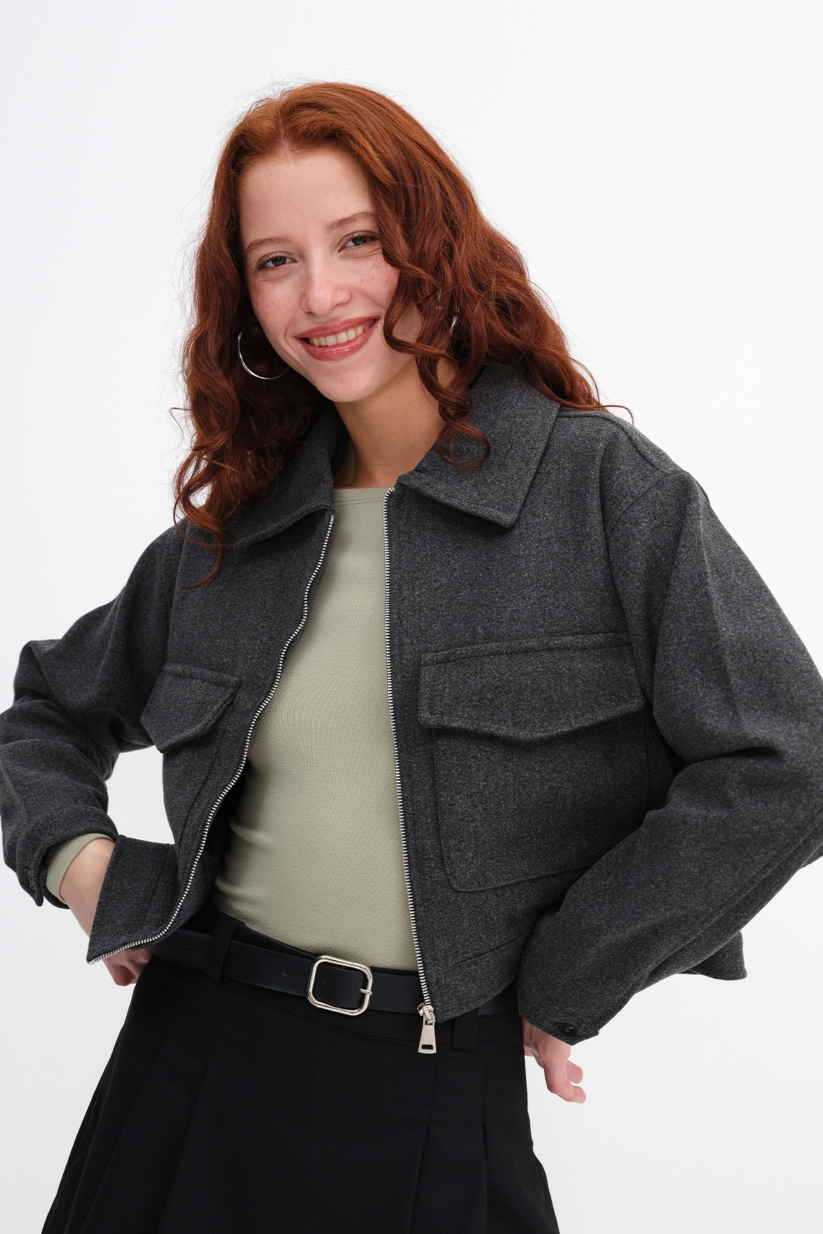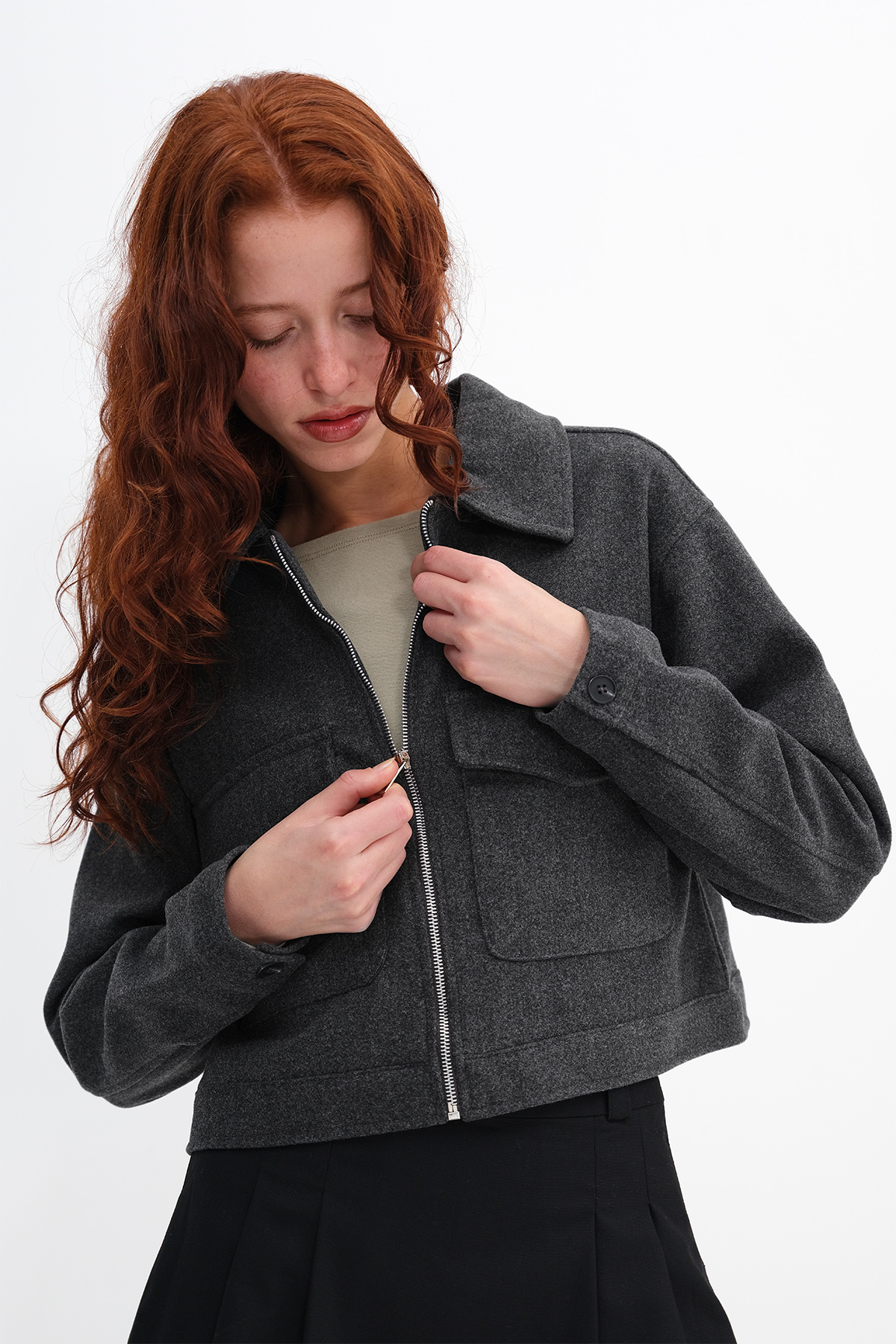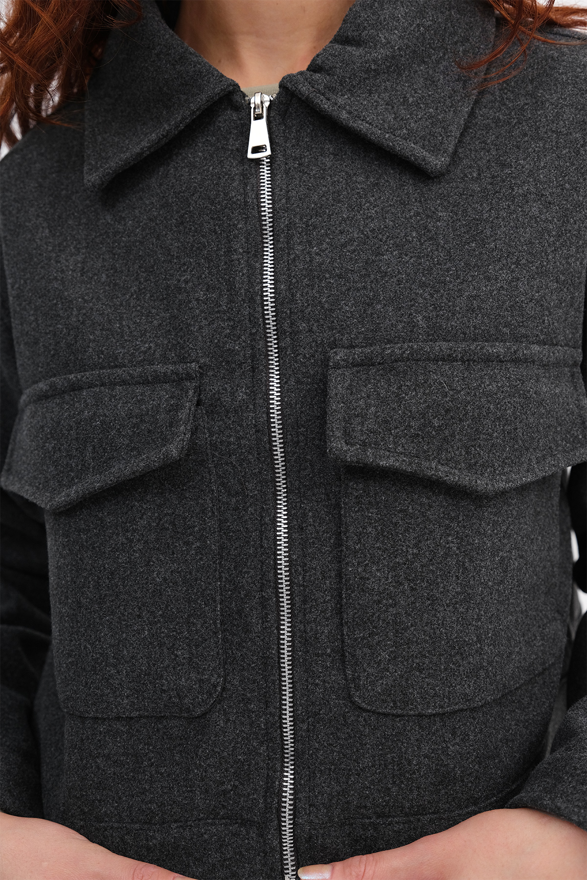 * Polo yaka, uzun kollu, çift cepli, önden fermaurlı,