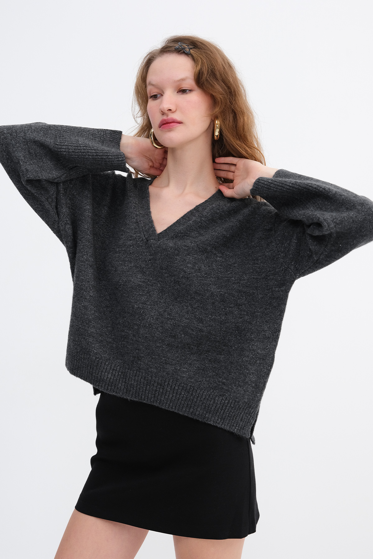 * V yaka, uzun kollu,
