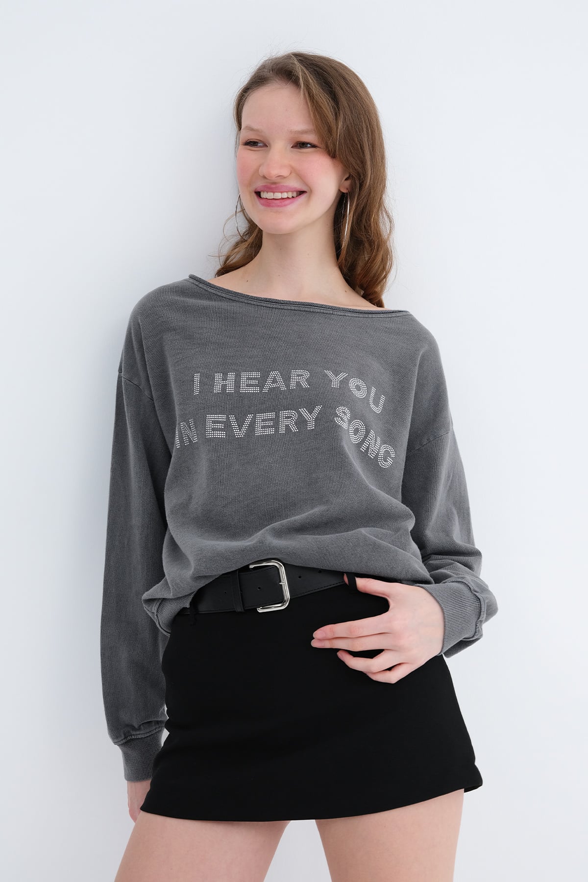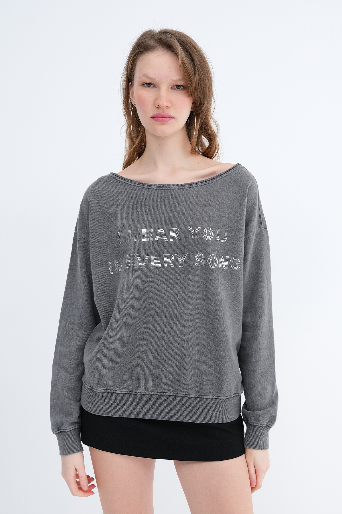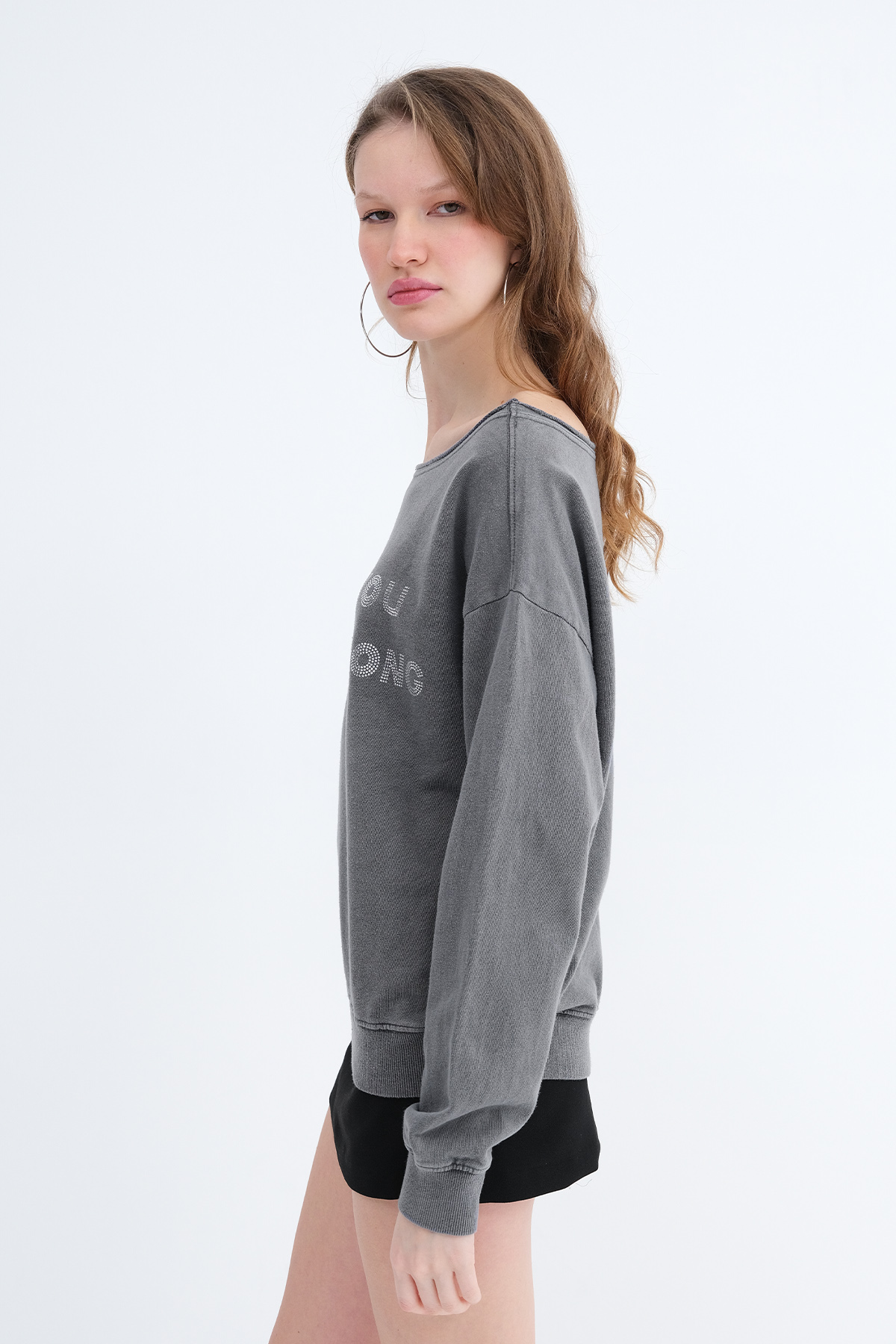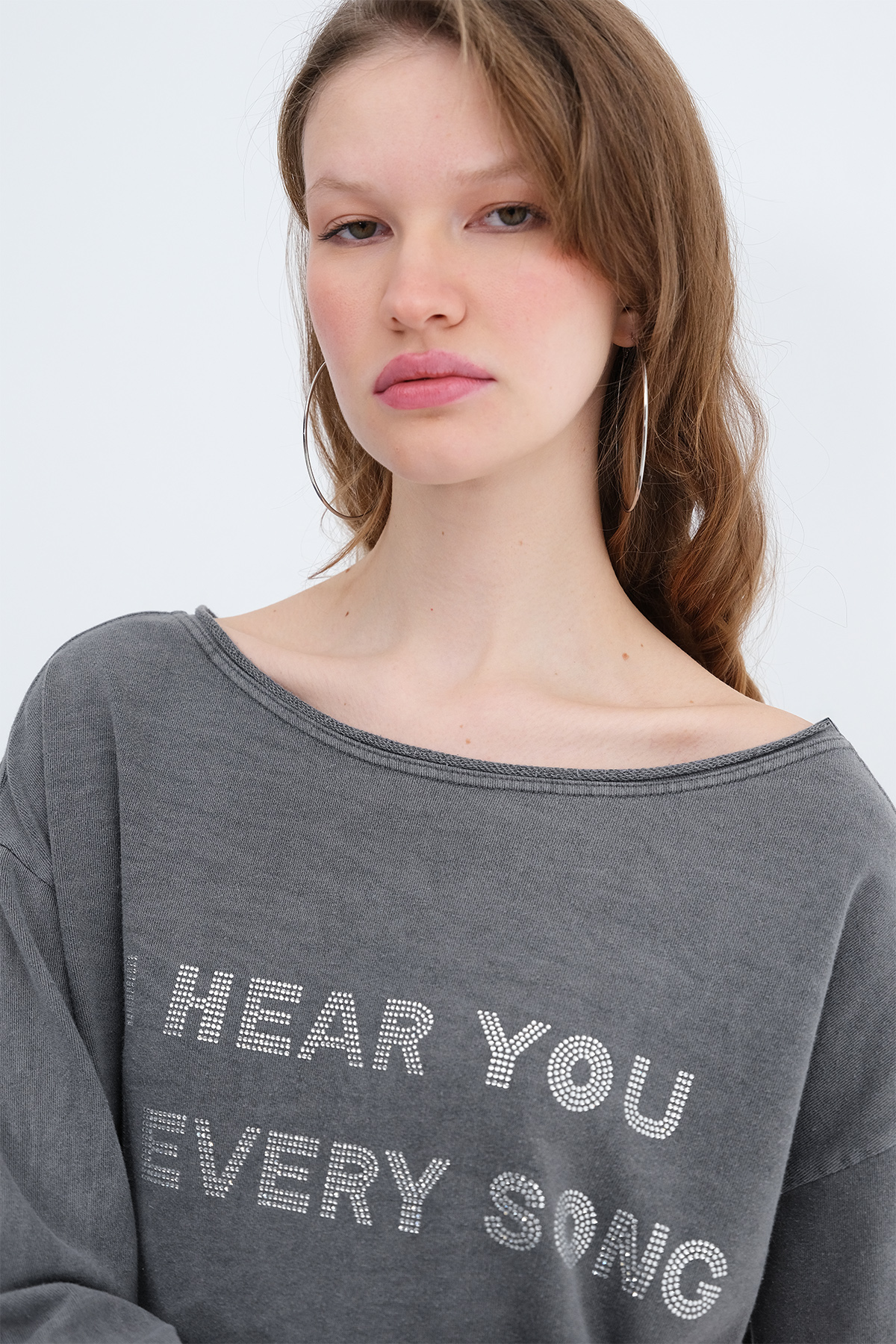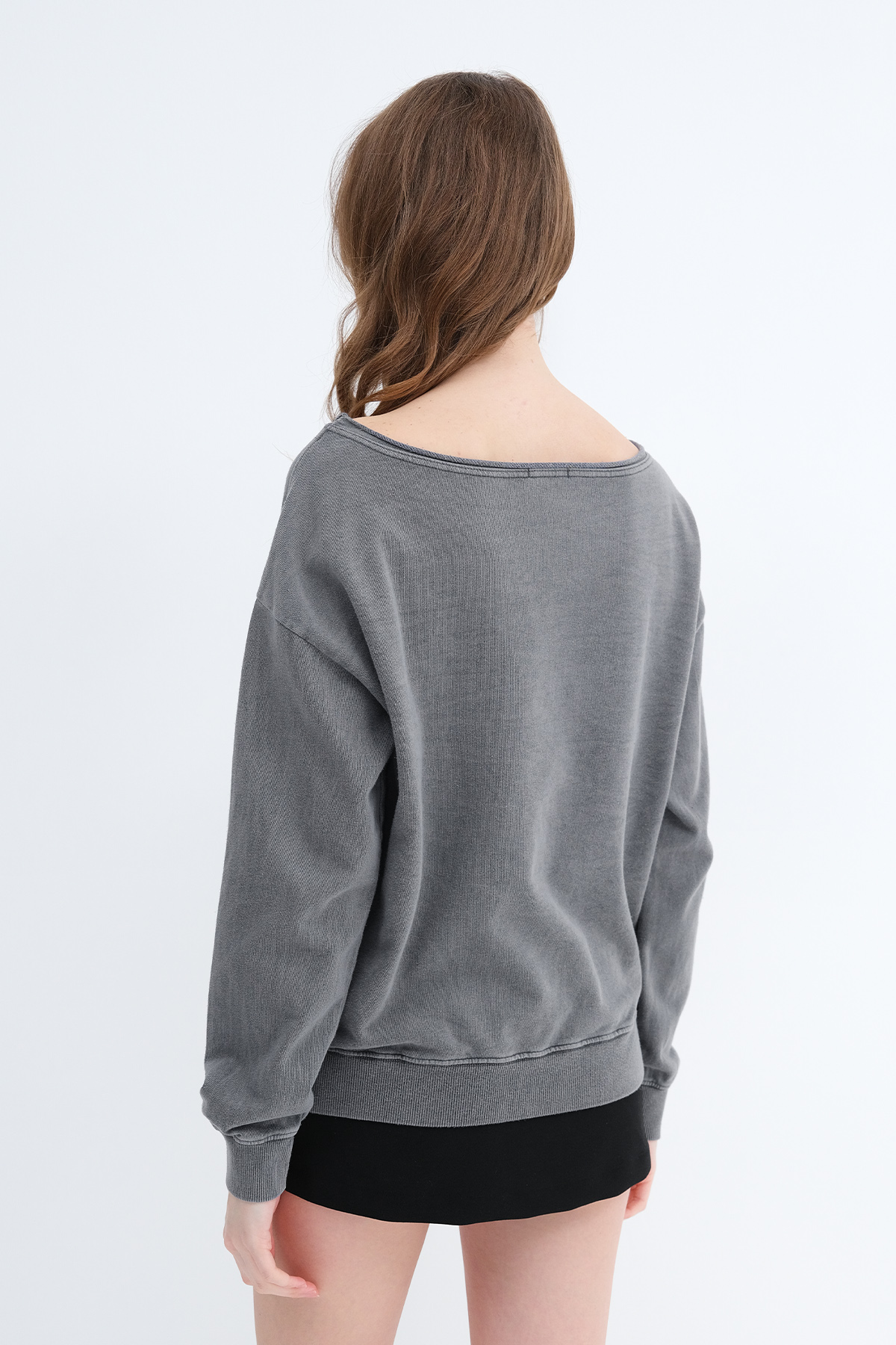 * Kayık yaka, uzun kollu,