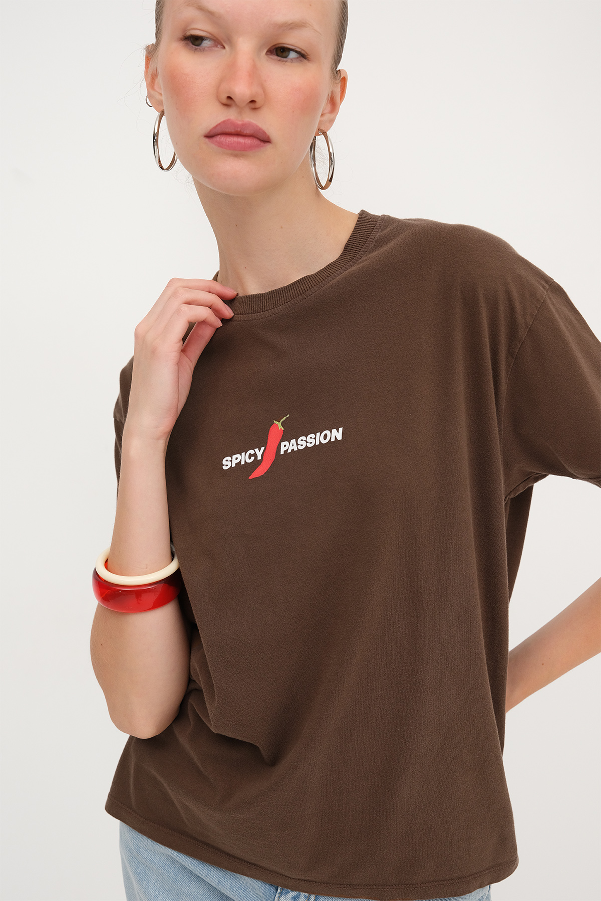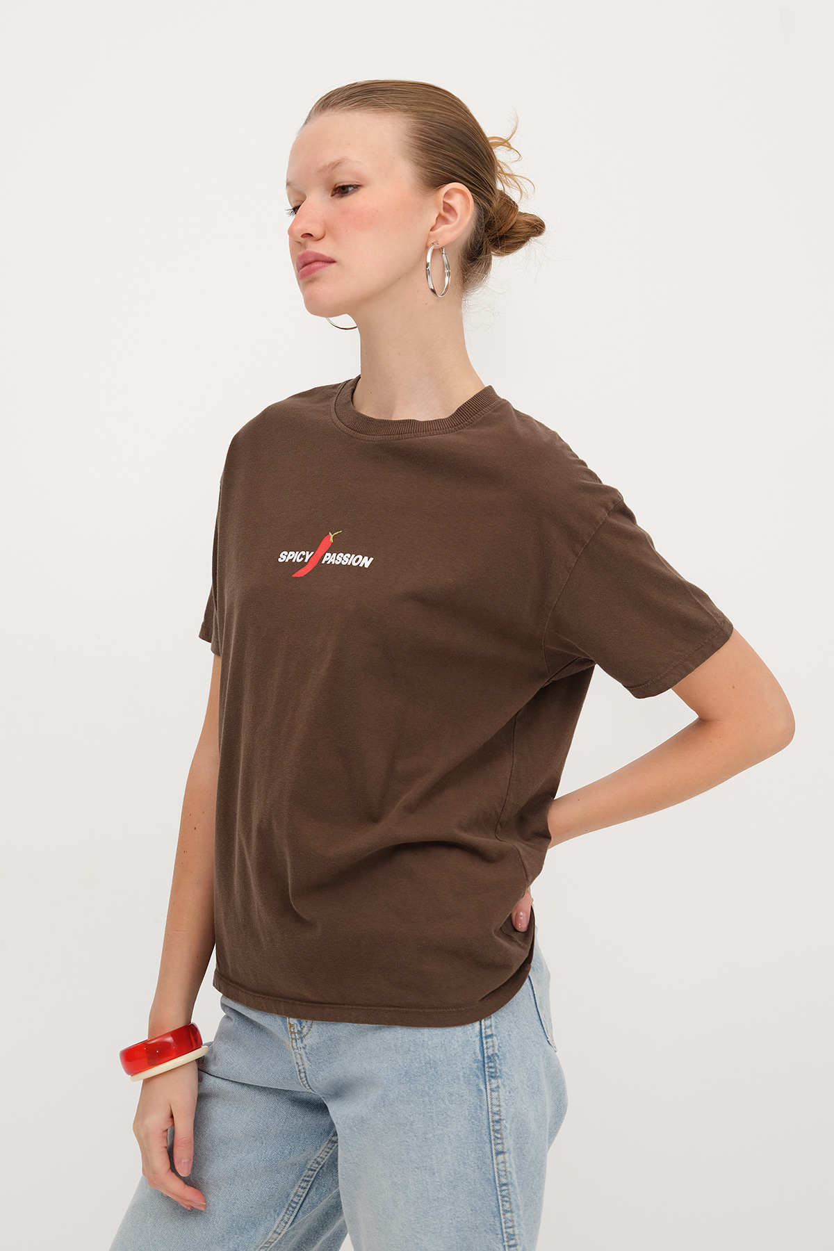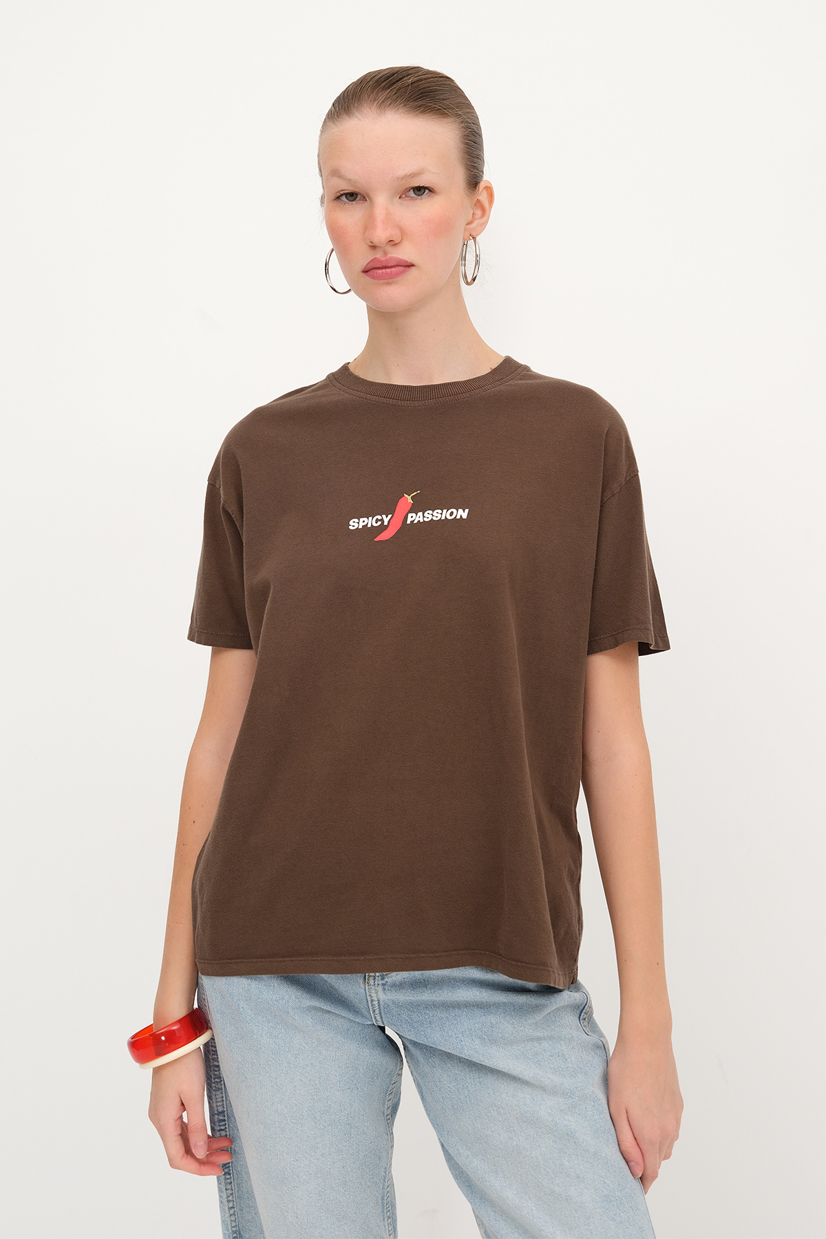 * Baskılı, rahat kalıp t-shirt,