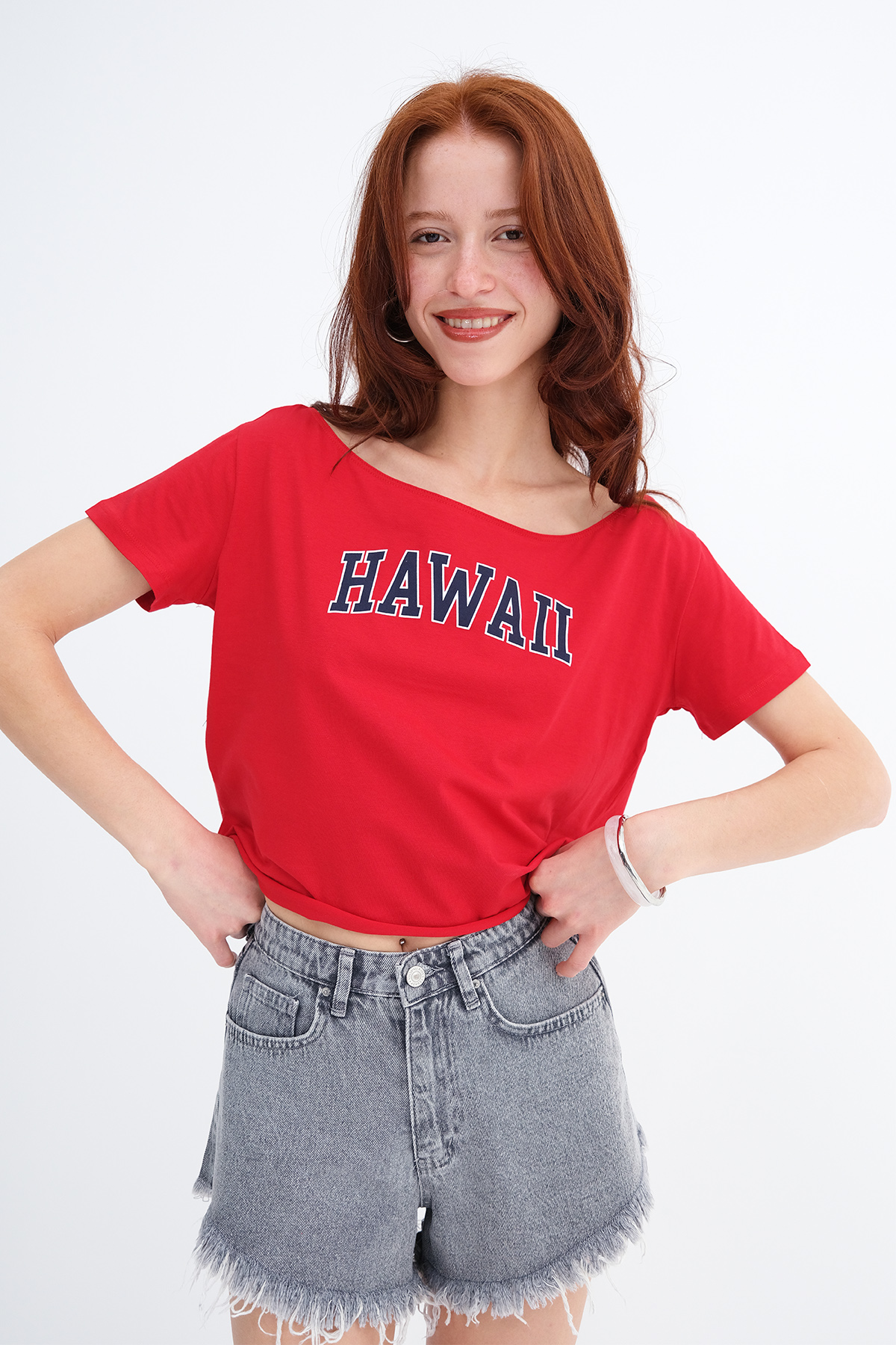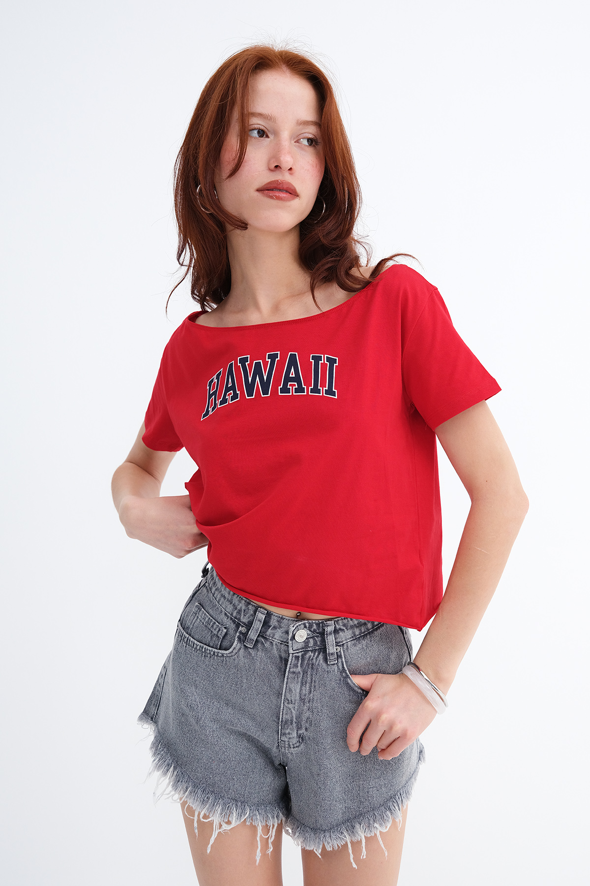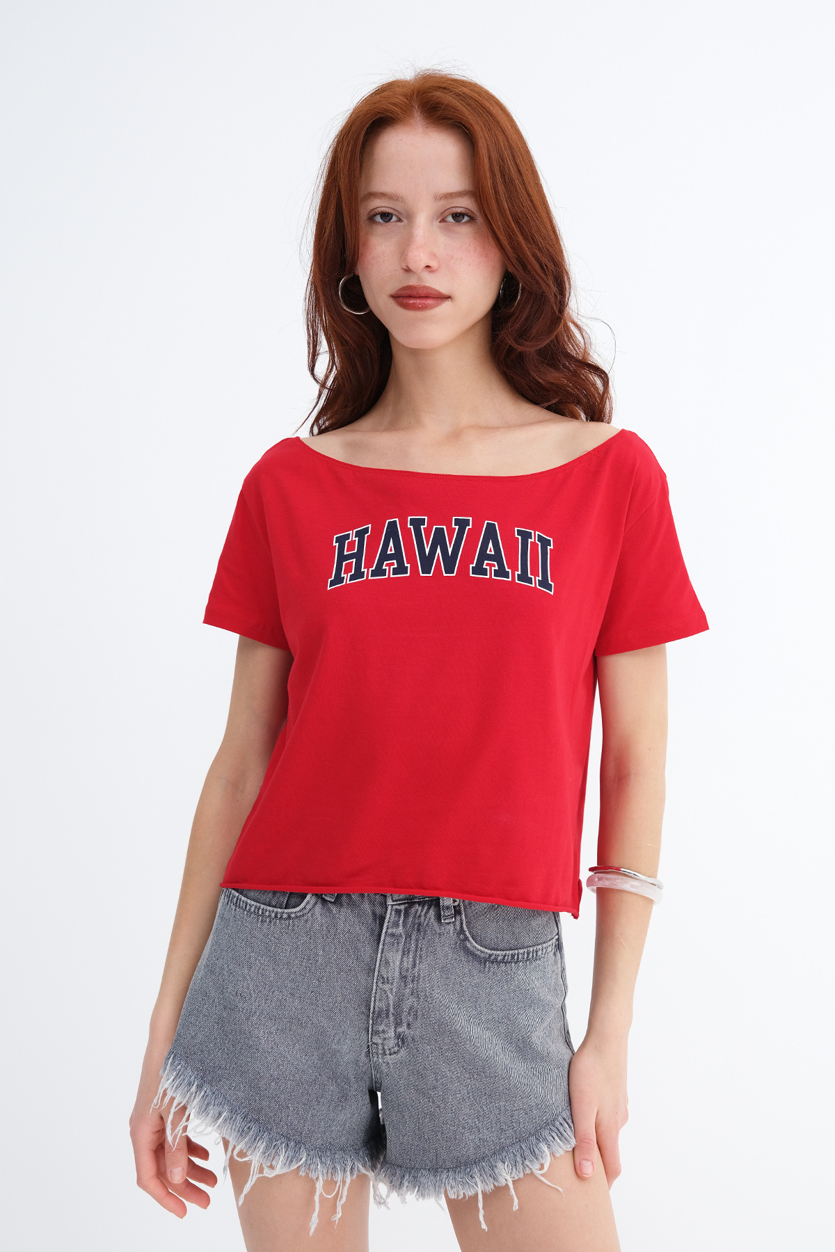 * Kayık yaka, kısa kollu, baskılı,