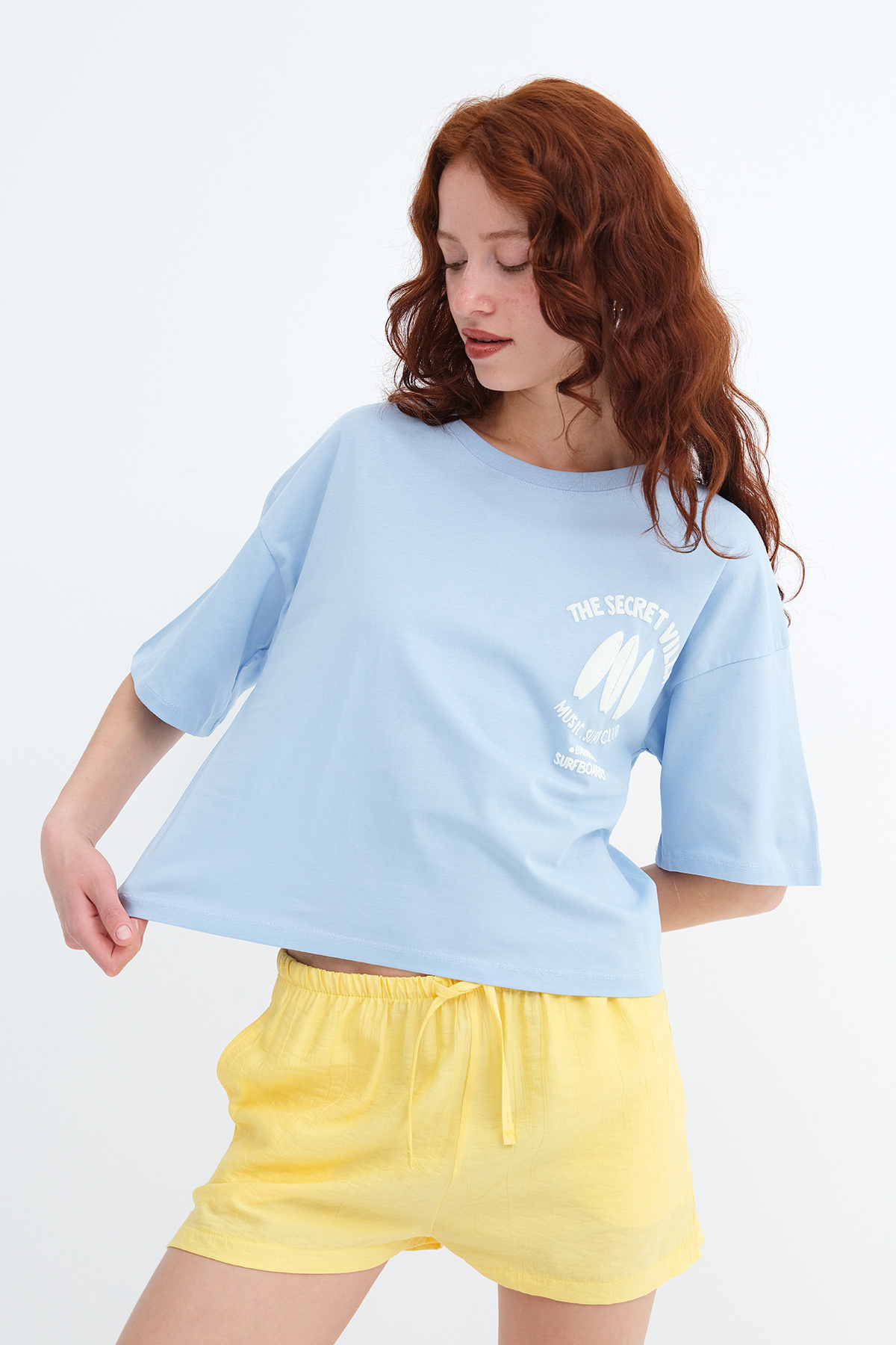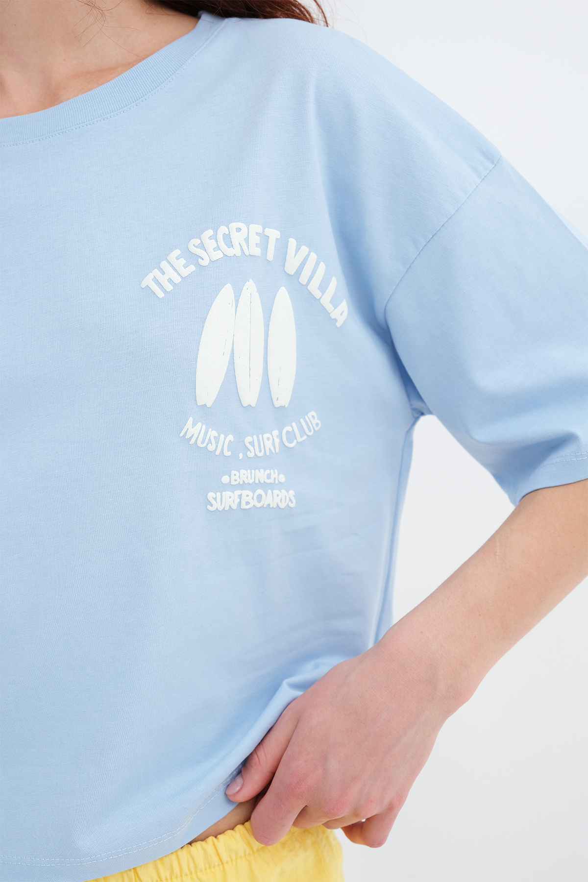 * Bisiklet yaka, kısa kollu, düşük omuz,