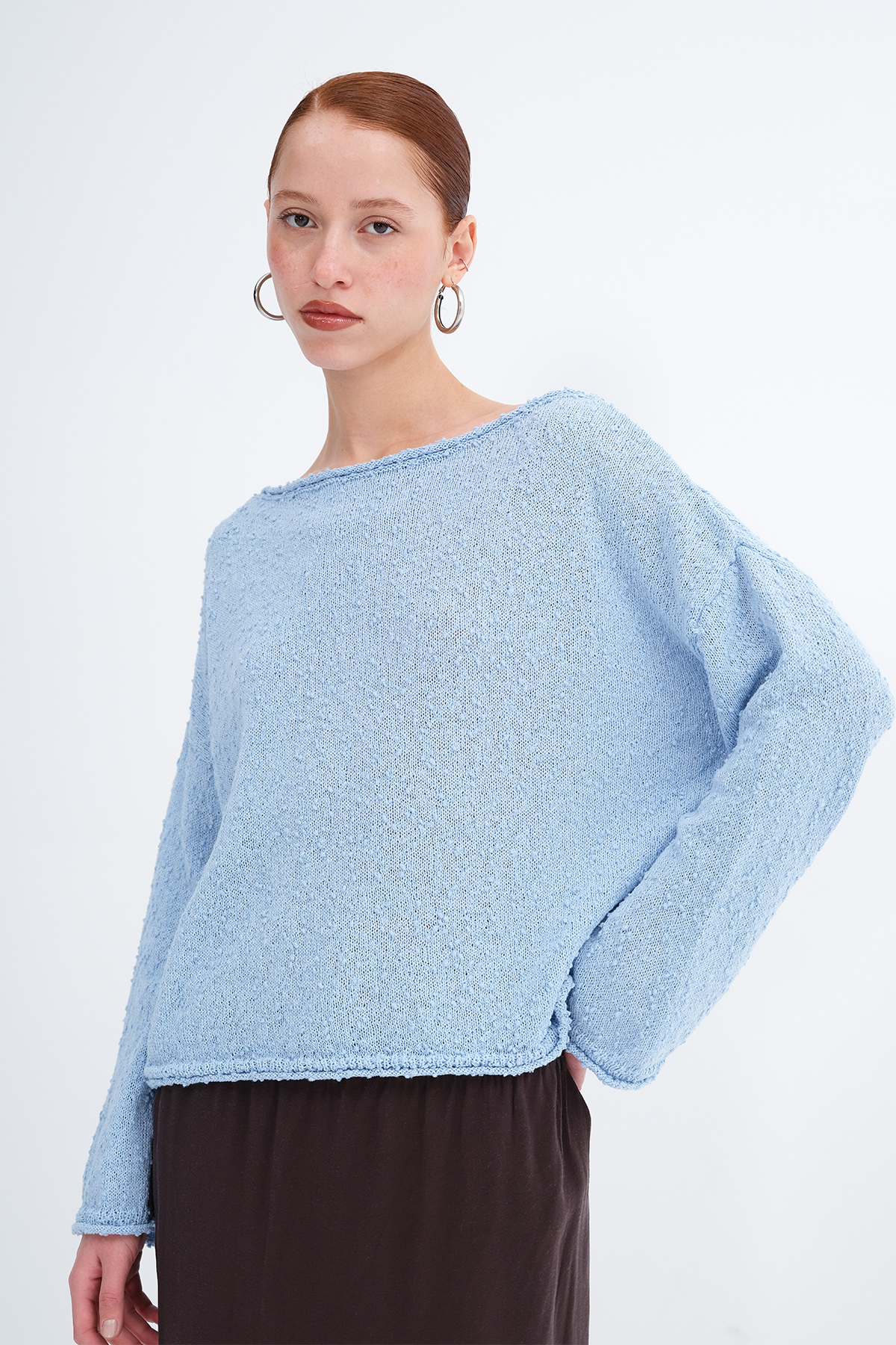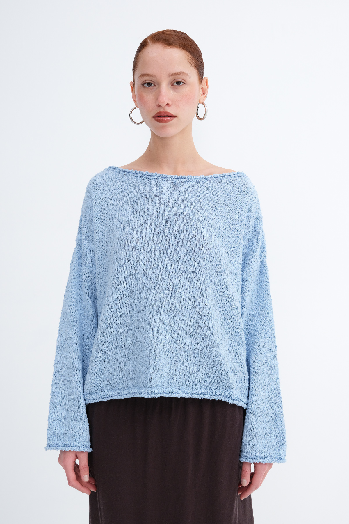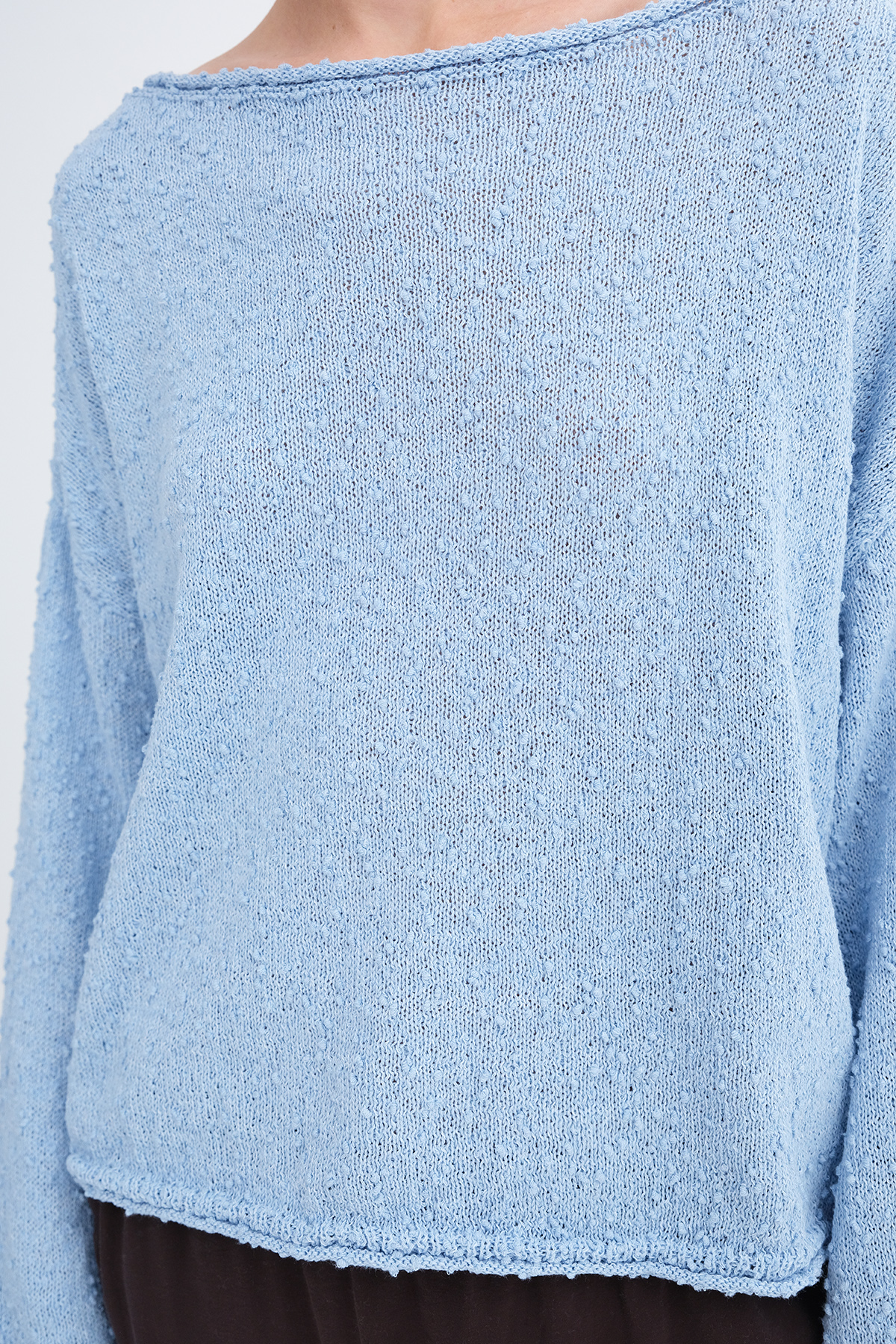 * Kayık yaka, uzun kollu,