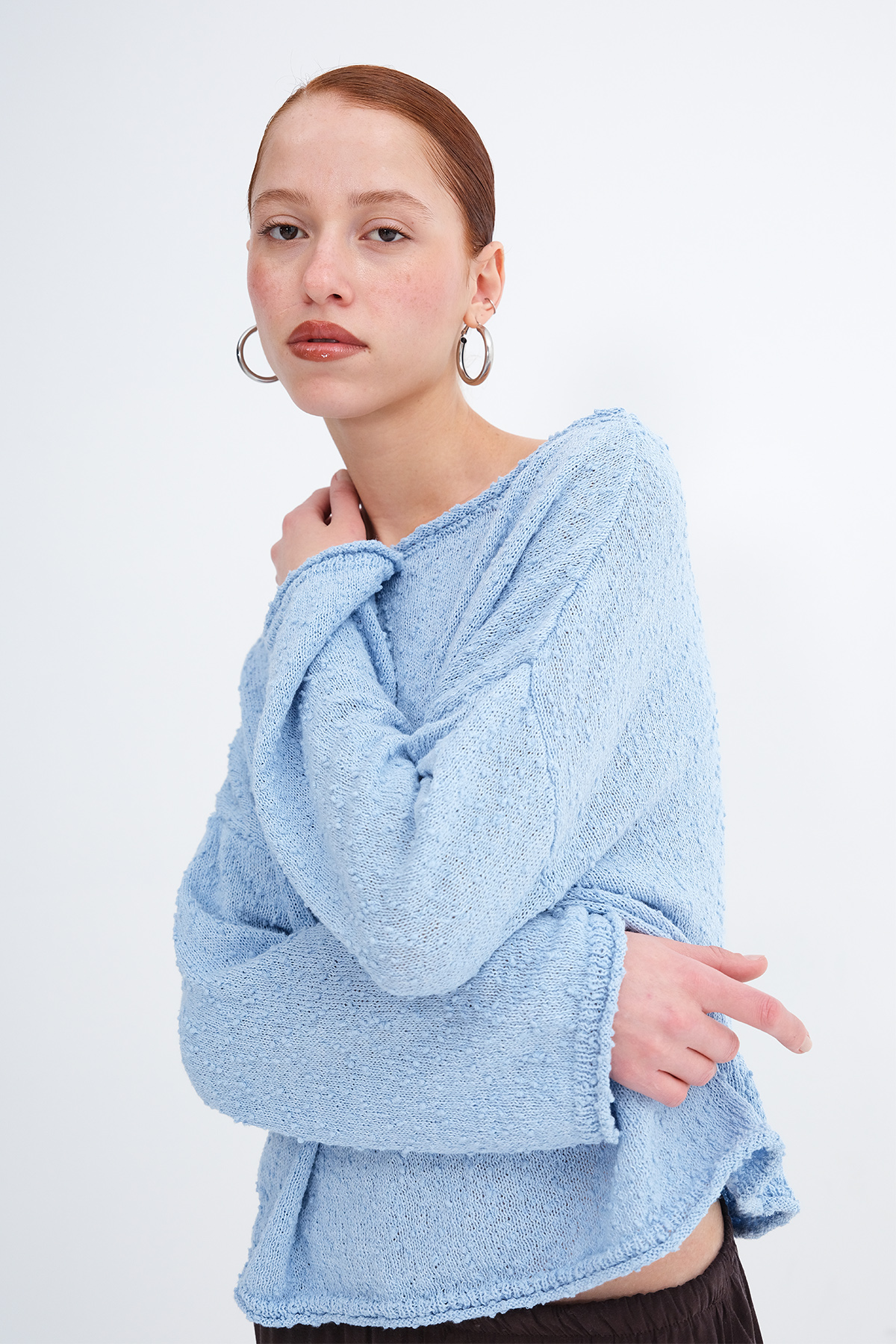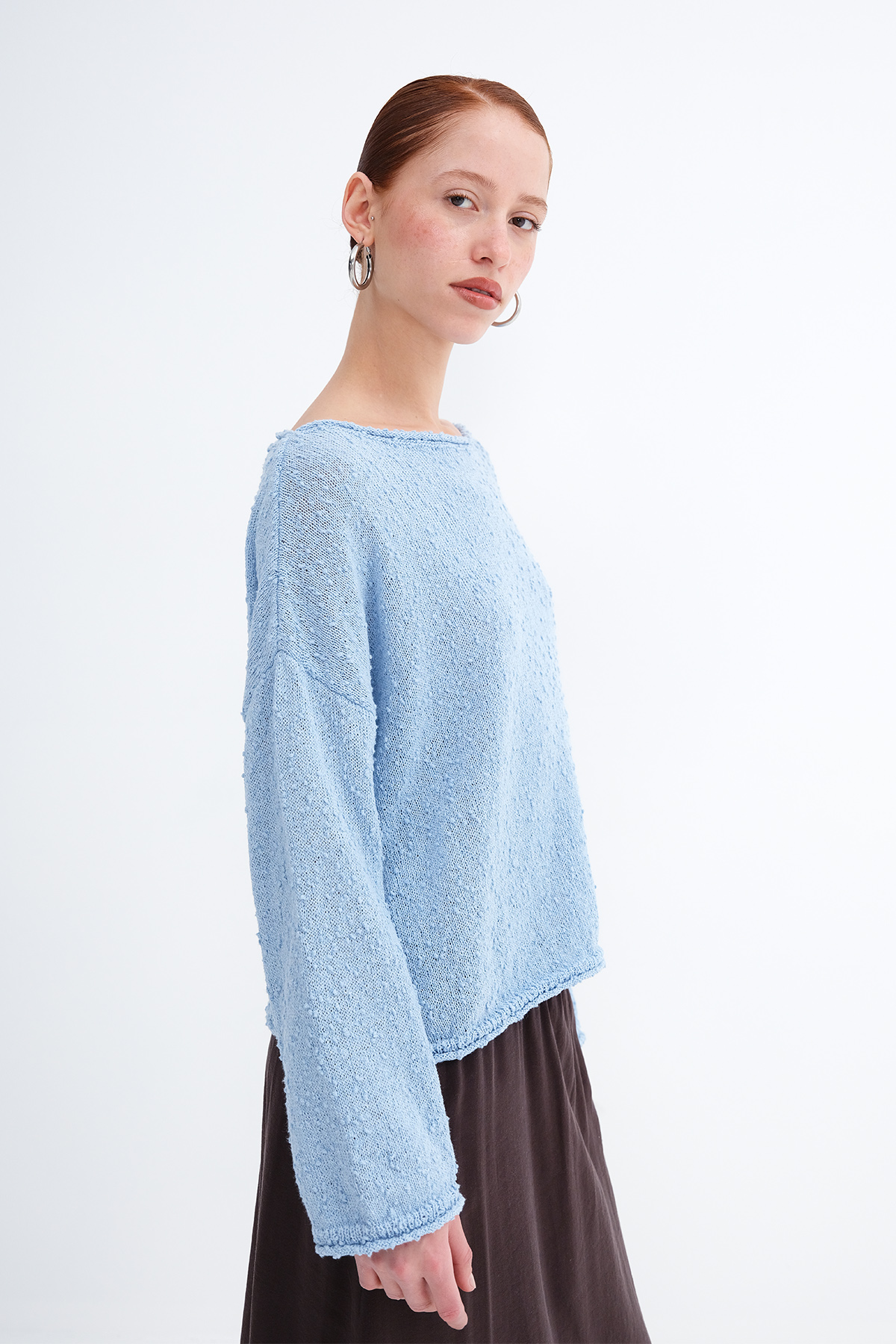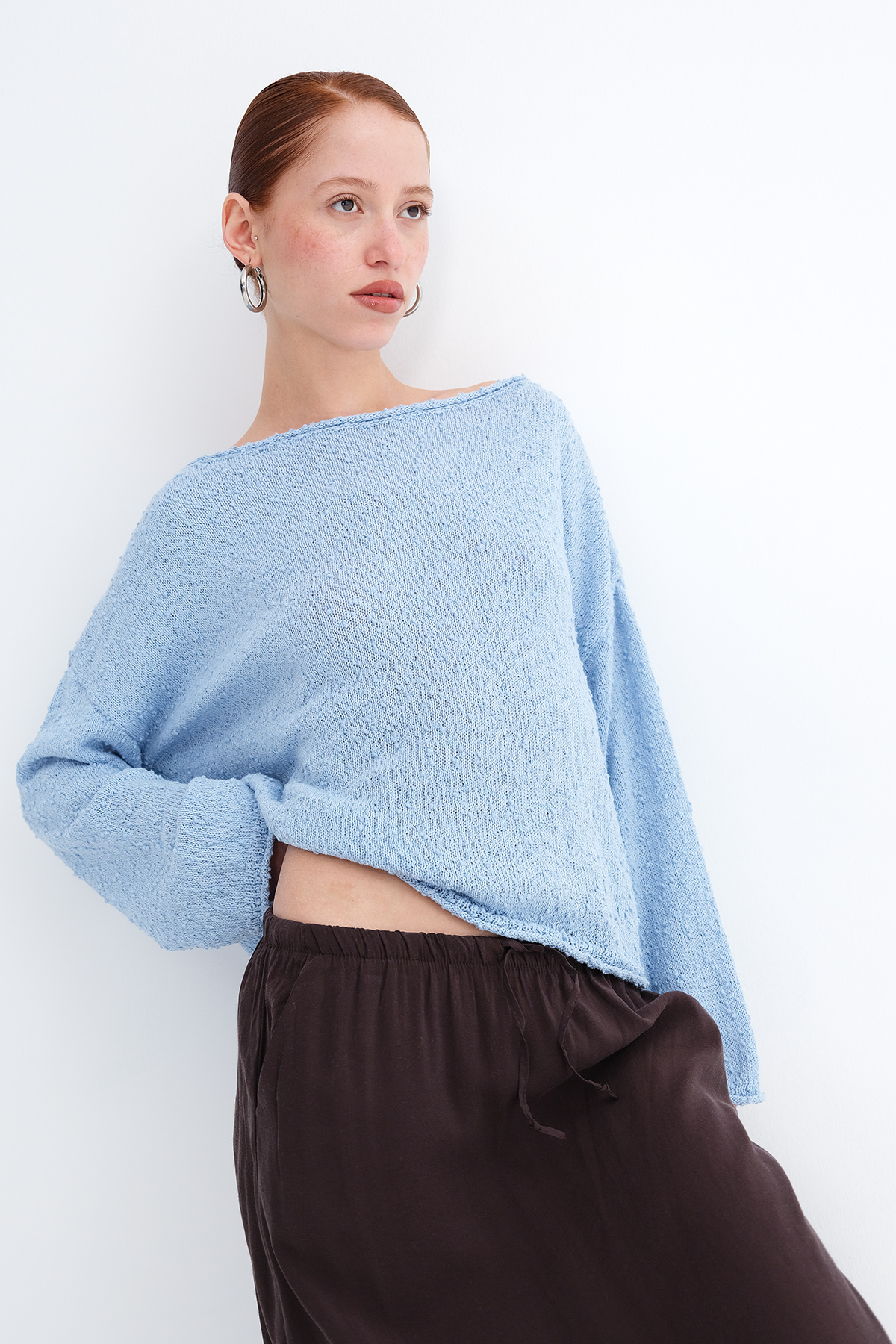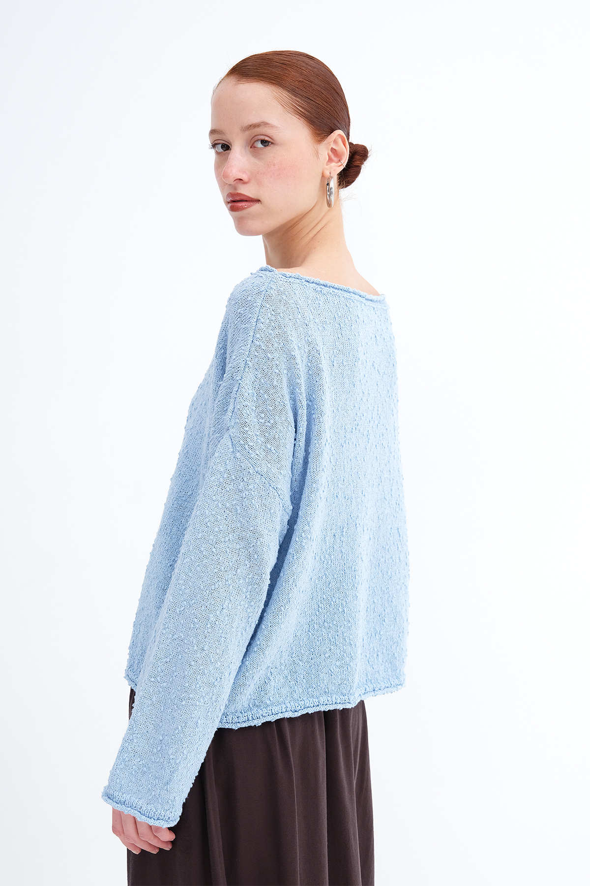 * Kayık yaka, uzun kollu,
