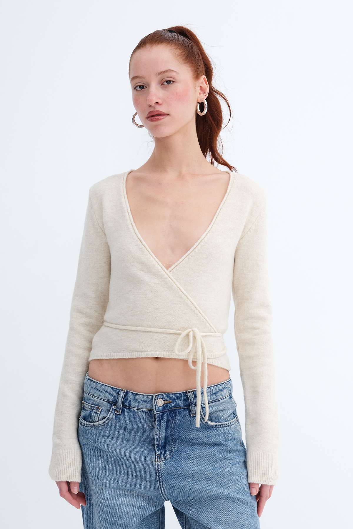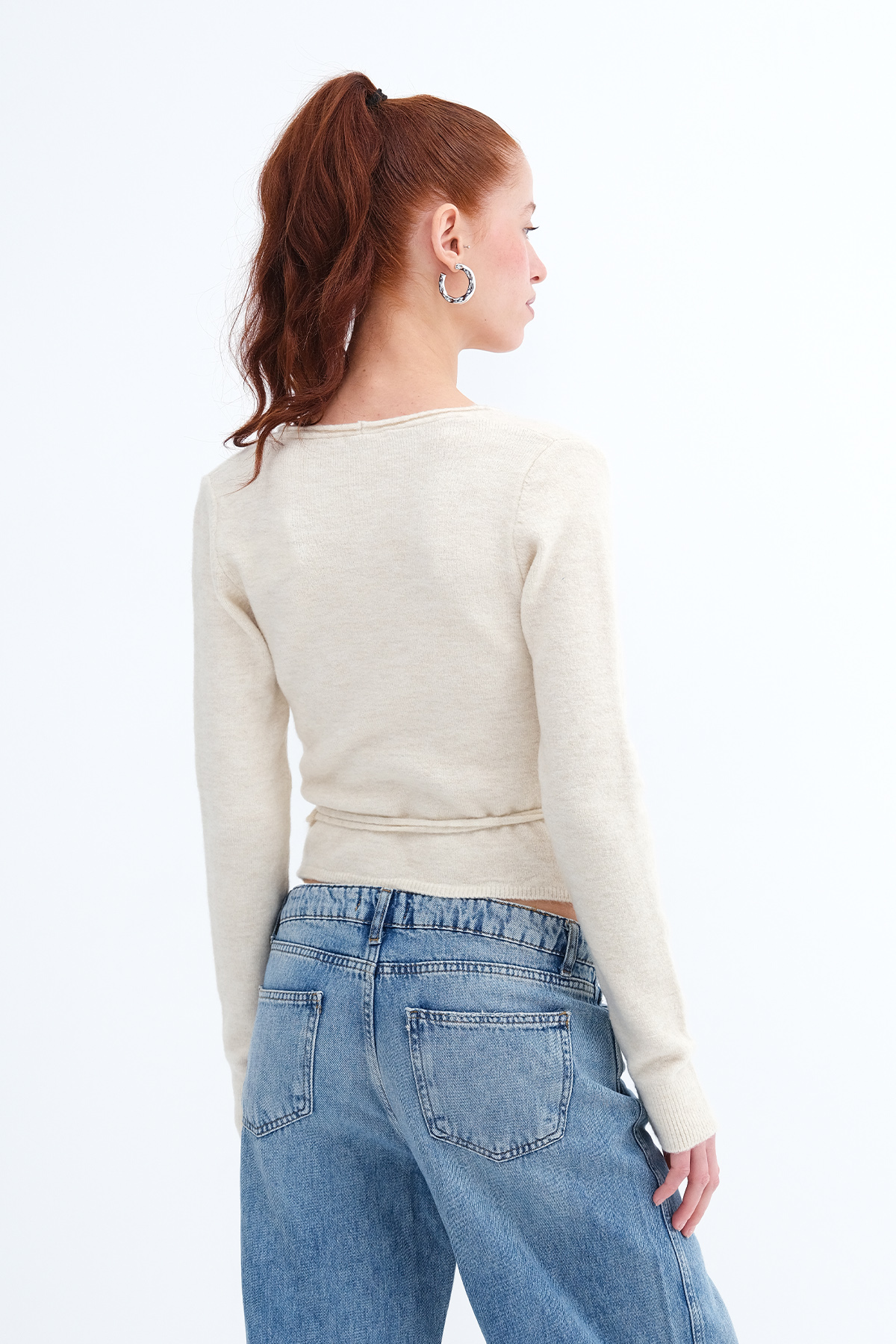 * Düz renk, bağlama detaylı triko hırka,
