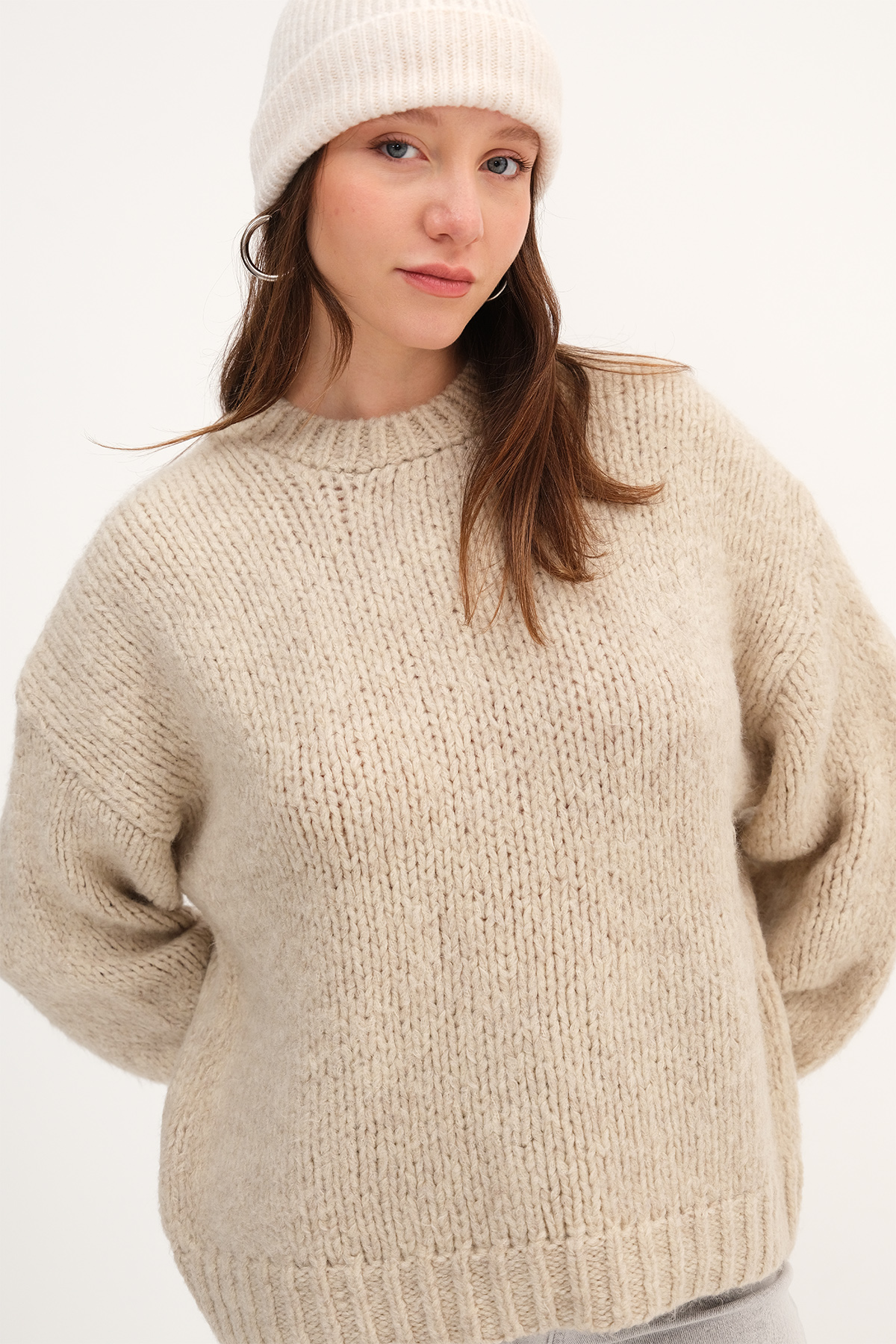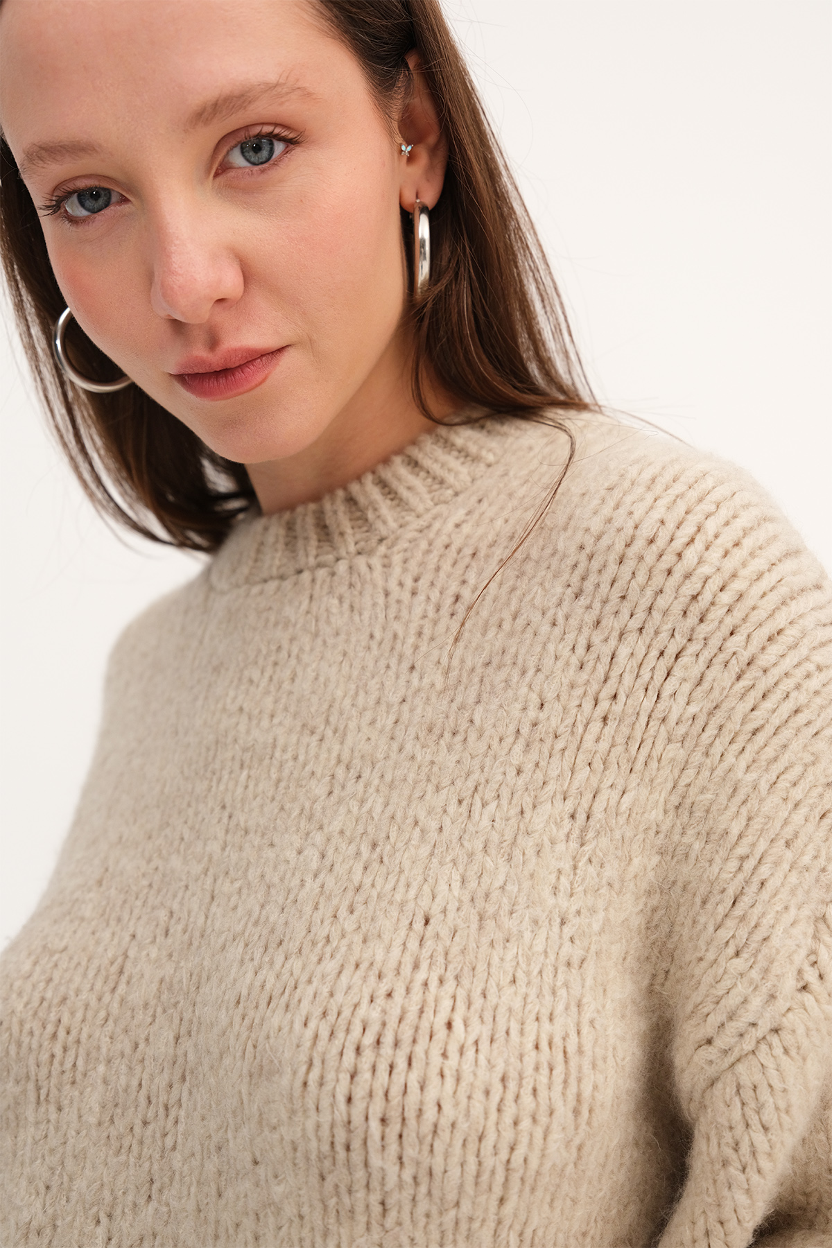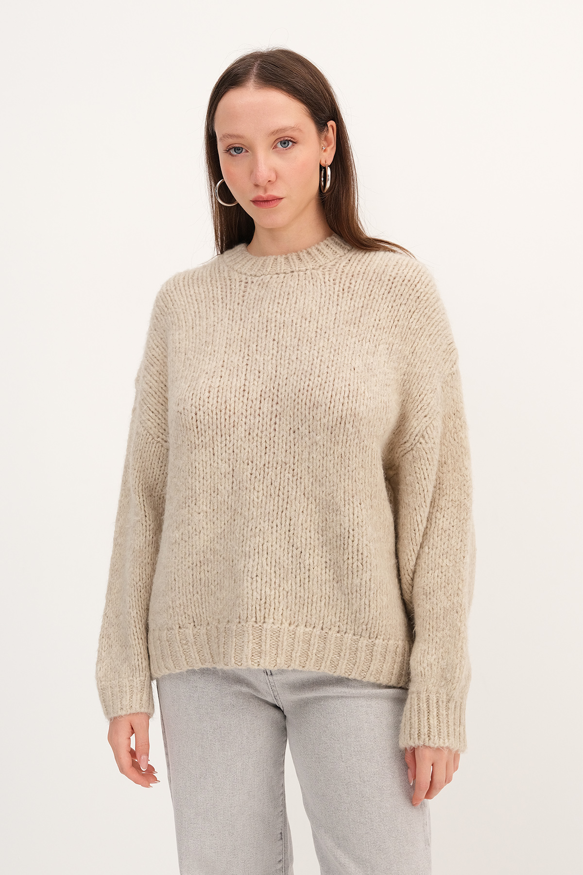 * Bisiklet yaka, uzun kollu,* Düşük omuz, basic,* Rahat kalıp, triko kazak,* Ürün içeriği: %80 Akrilik %13 Polyester %7 Pbt* Manken üzerindeki ürün standart bedendir.* Numune beden ölçüleri: Boy: 58 cm Göğüs: 110 cm Kol boyu: 46 cm (1-3 cm değişiklik gösterebilir)* Ürün çekimlerinde renkler, ışık farklılığından dolayı değişkenlik gösterebilir.