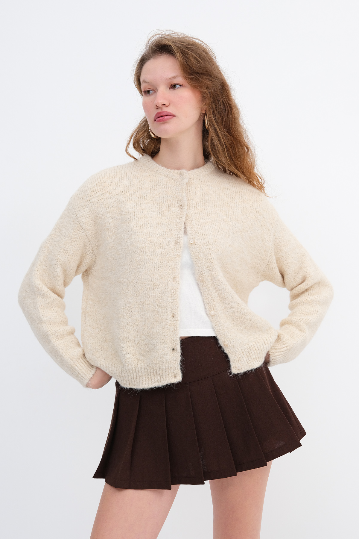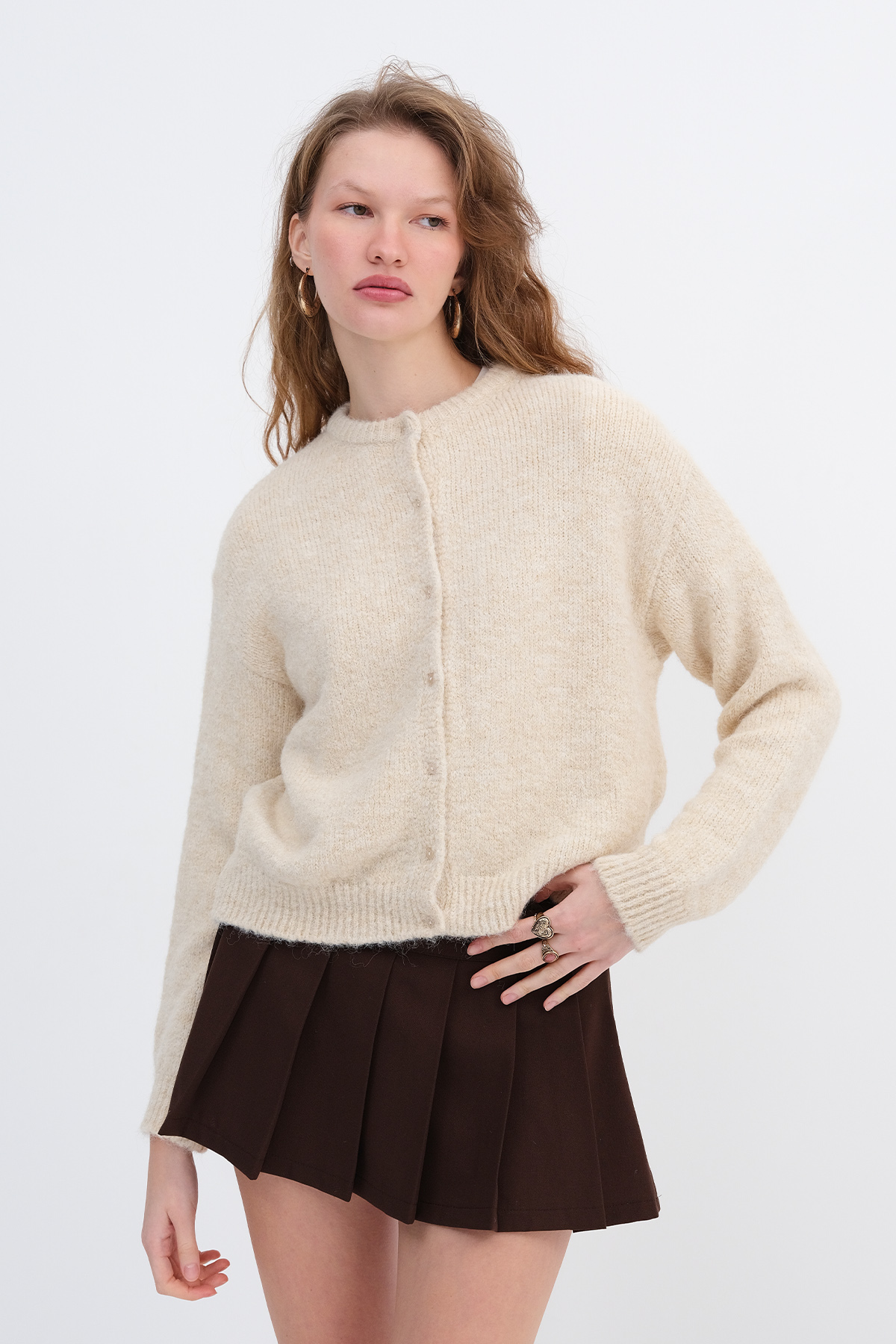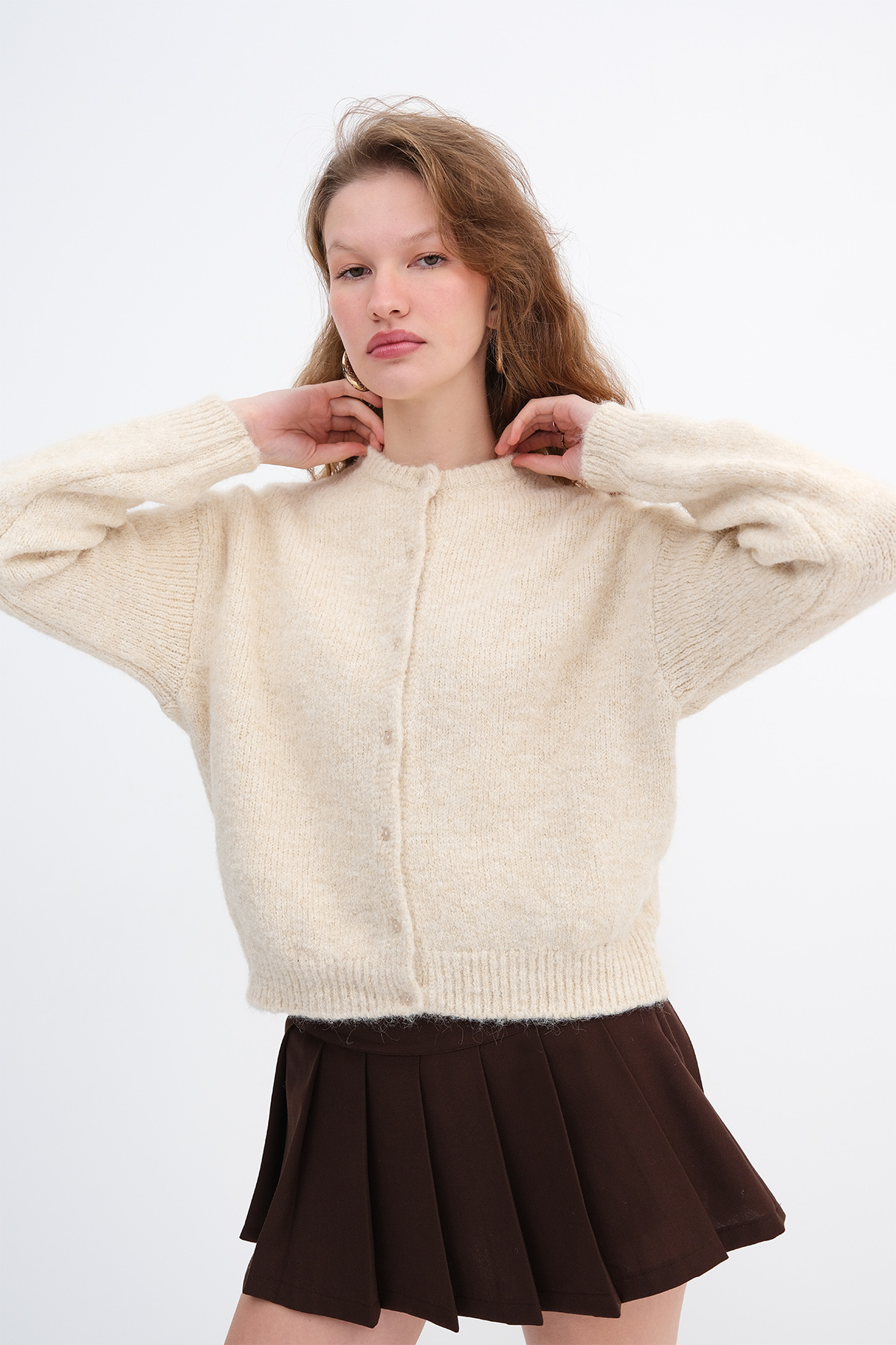 * Yumuşak dokulu, düğmeli, triko hırka,