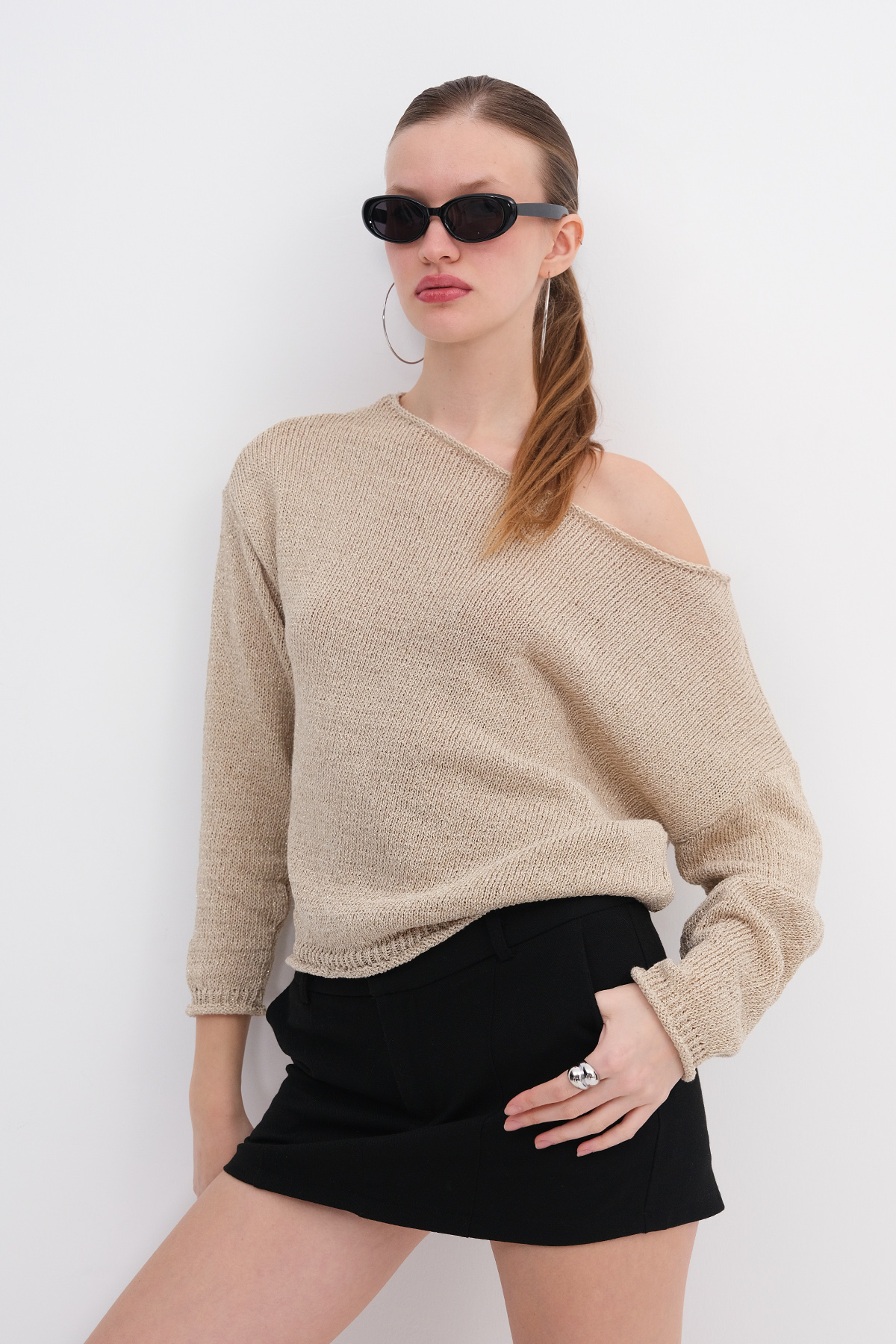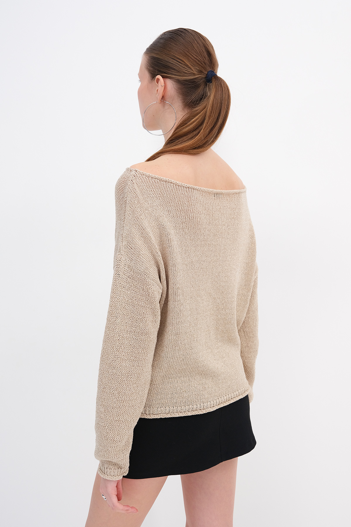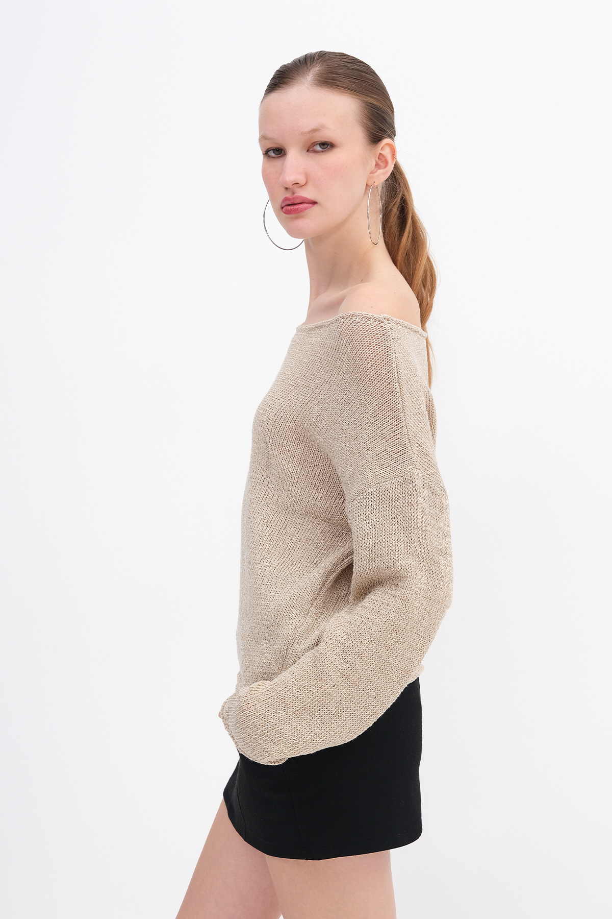 * Kayık yaka, uzun kollu, düşük omuz, düz renk,