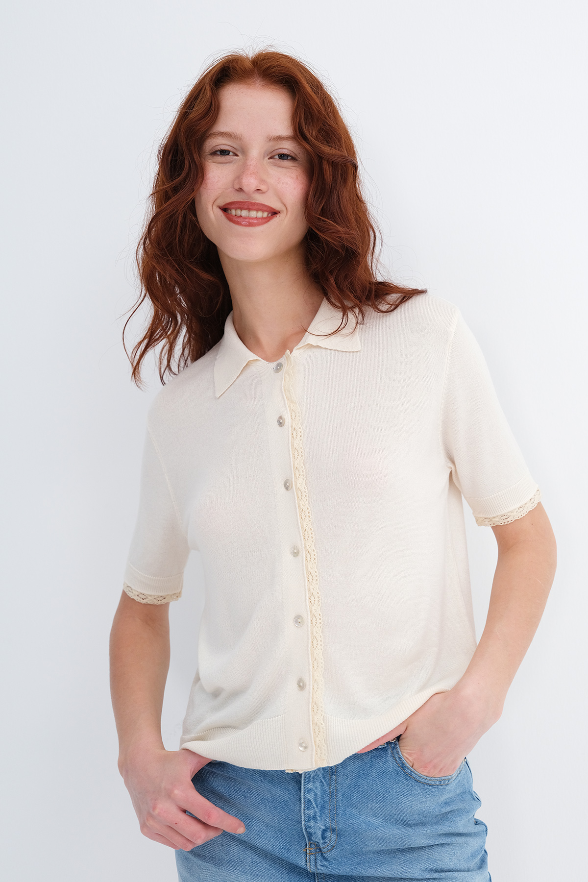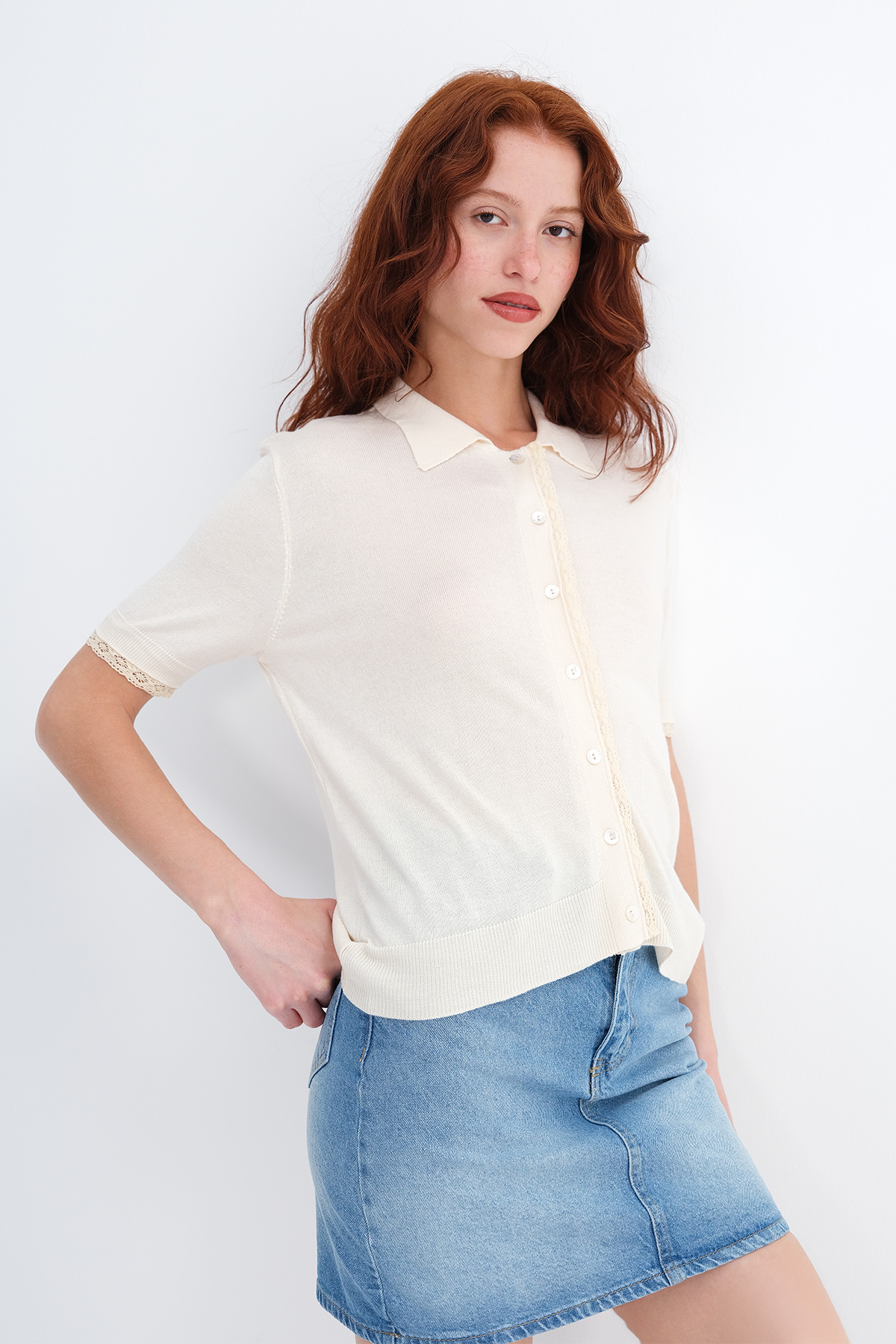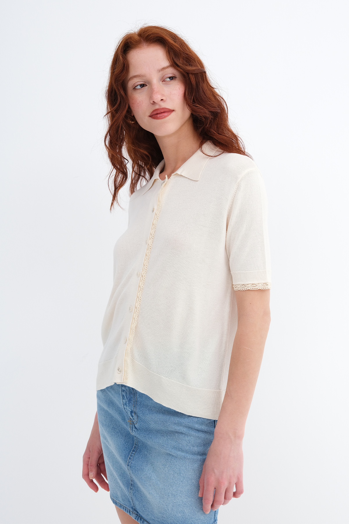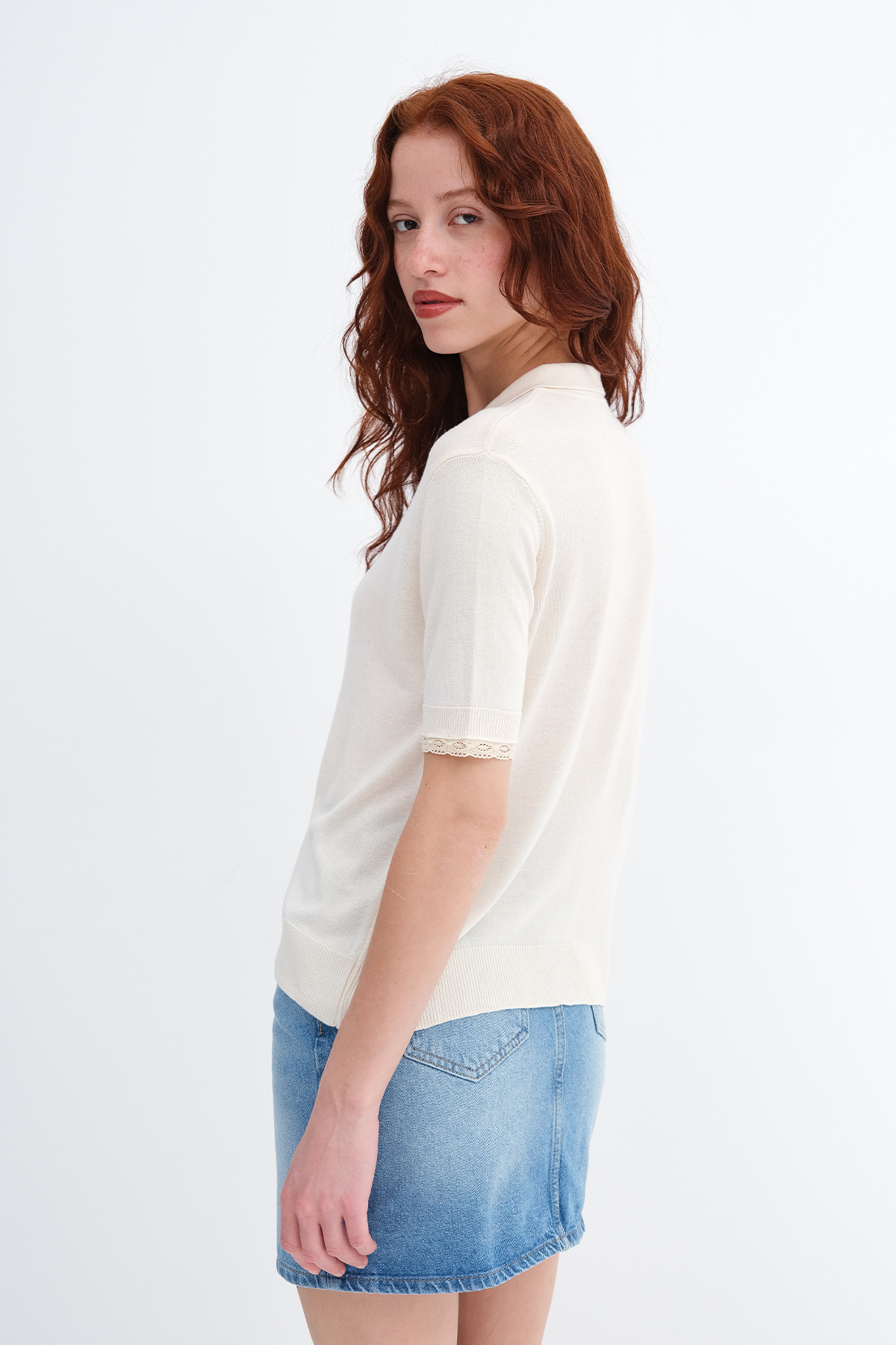 * Polo yaka, kısa kollu, düşük omuz,