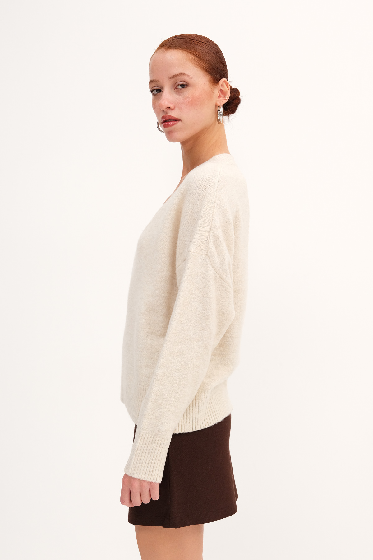 * V yaka, uzun kollu,* Manşetleri ve etek ucu lastik örgülü,* Düz renk, triko kazak,* Ürün içeriği: %49 Akrilik %32 Polyester %16 Naylon %3 Elastan* Manken üzerindeki ürün standart bedendir.* Numune Beden Ölçüleri: Boy: 55 cm Göğüs: 120 cm Kol Boyu: 43 cm (1-3 cm arasında değişiklik gösterebilir)* Ürün çekimlerinde renkler, ışık farklılığından dolayı değişkenlik gösterebilir.