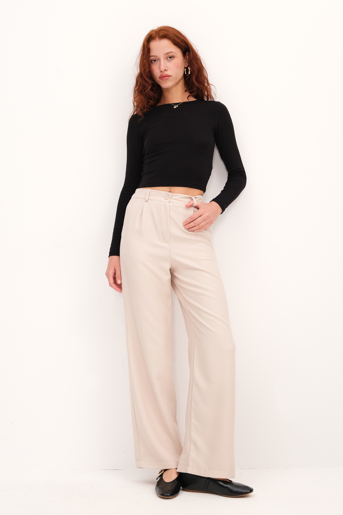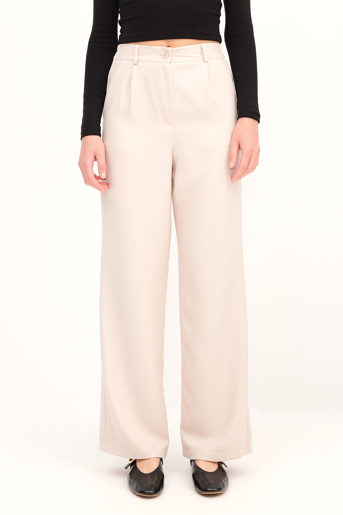 * Yüksek bel, fermuar patlı,* Kemer köprülü, düğmeli,* Düz renk, wide leg pantolon,* Ürün içeriği:%100 Polyester,* Manken üzerindeki ürün 36/S bedendir.* Numune Beden Ölçüleri: Boy: 108 cm Bel: 30 cm* Basen: 100 cm İç bacak: 76 cm (1-3 cm arasında değişiklik gösterebilir)* Ürün çekimlerinde renkler, ışık farklılığından dolayı değişkenlik gösterebilir.
